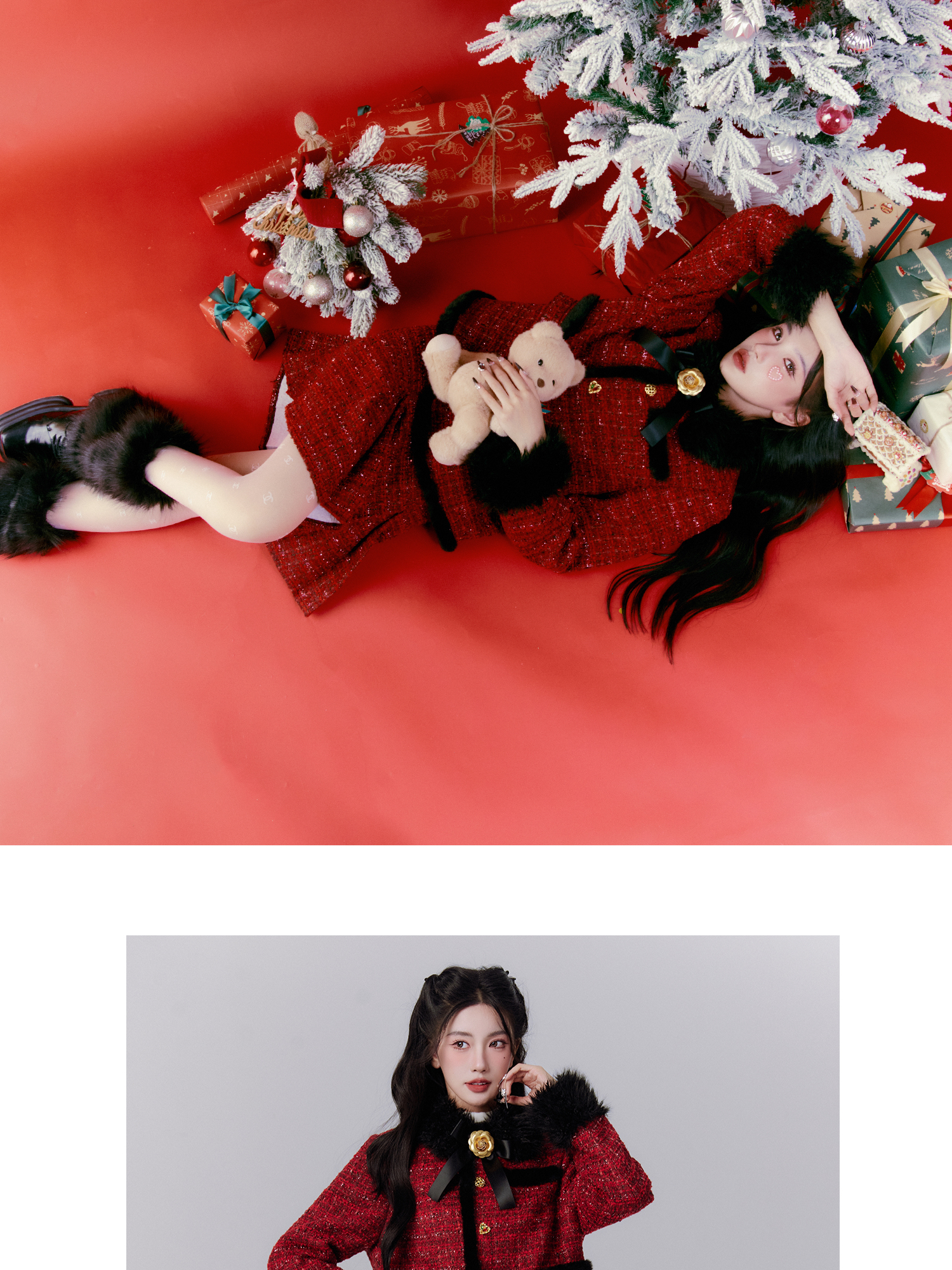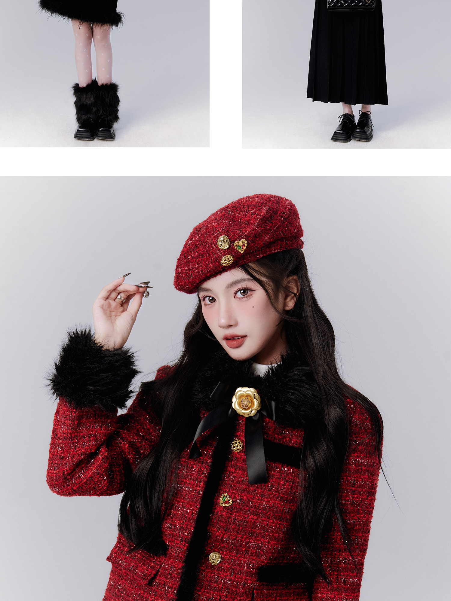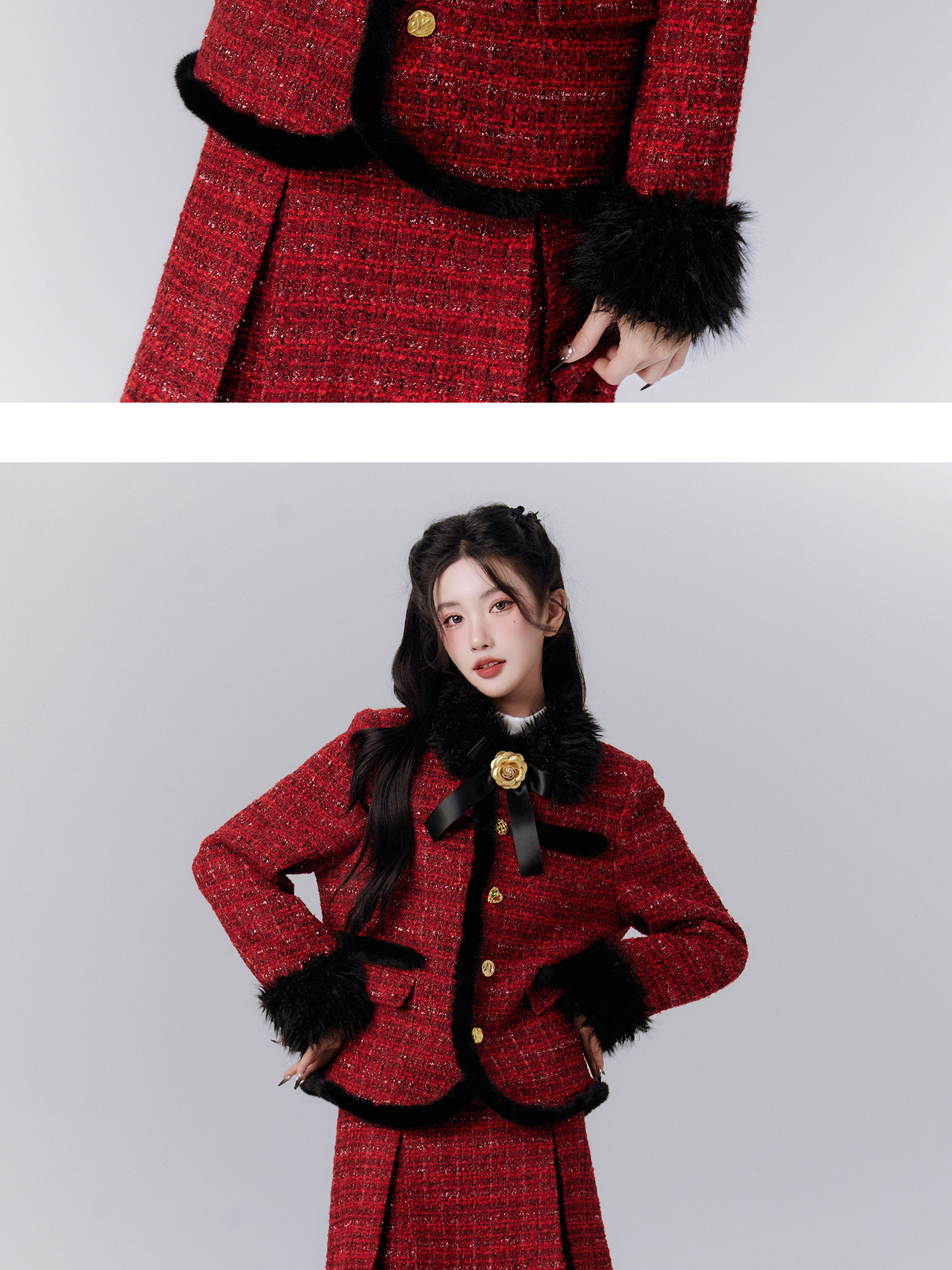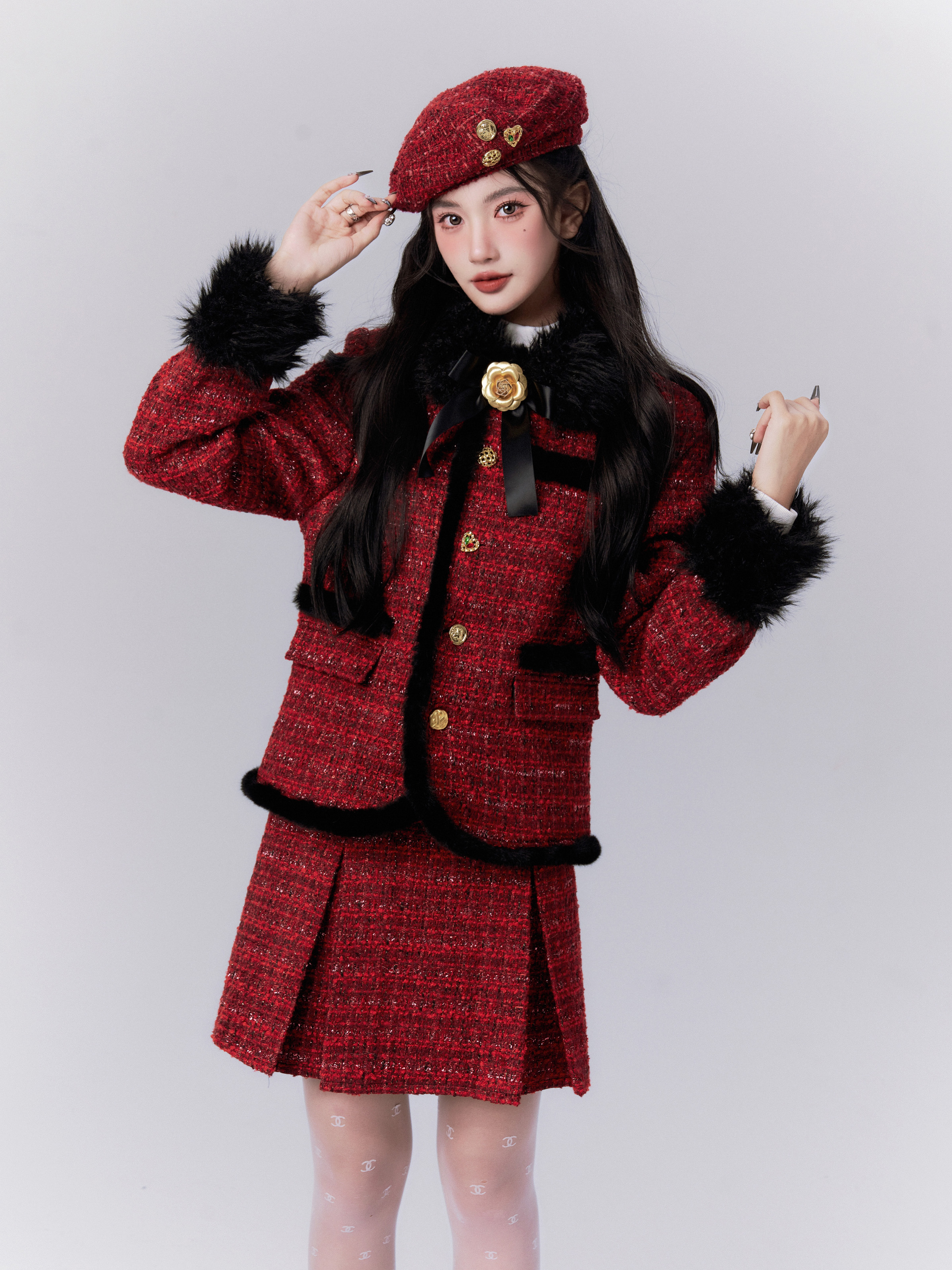 Instant Red Rose Thousand Gold Fragrant Date Skirt Set