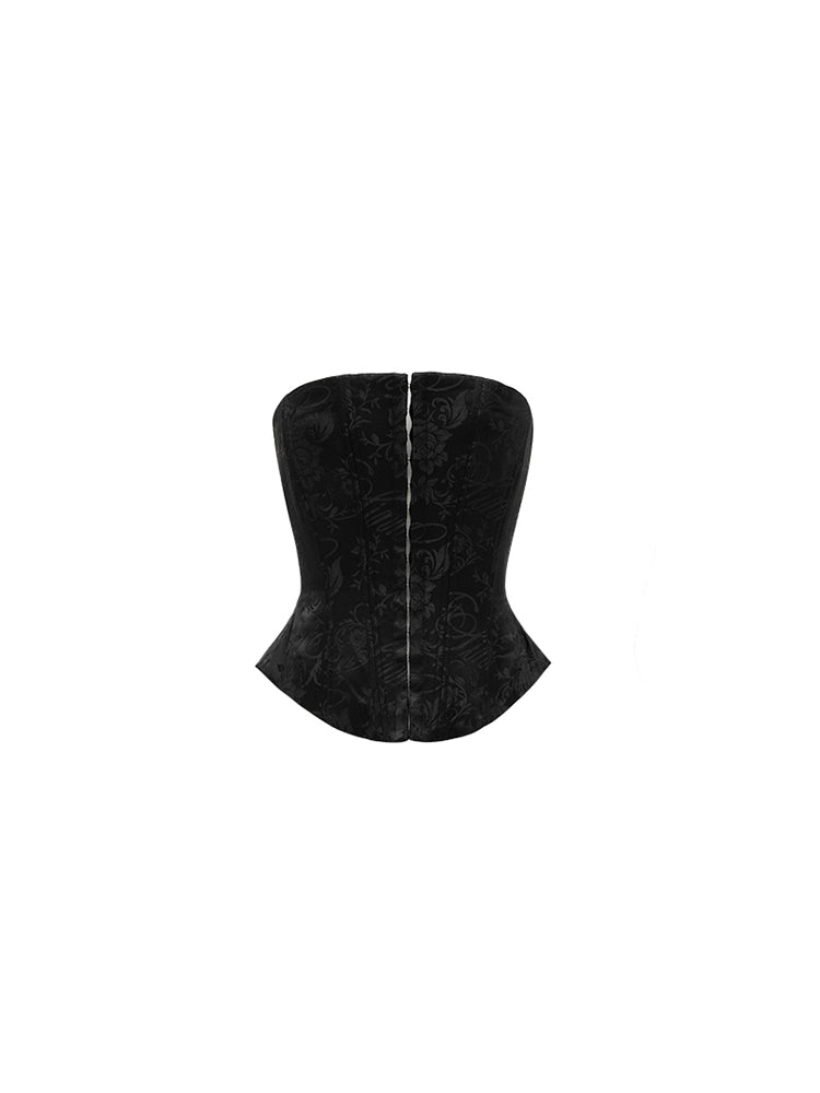 Jacquard Satin Herringbone Corset – Slim Tunic Top with Bandeau Layer