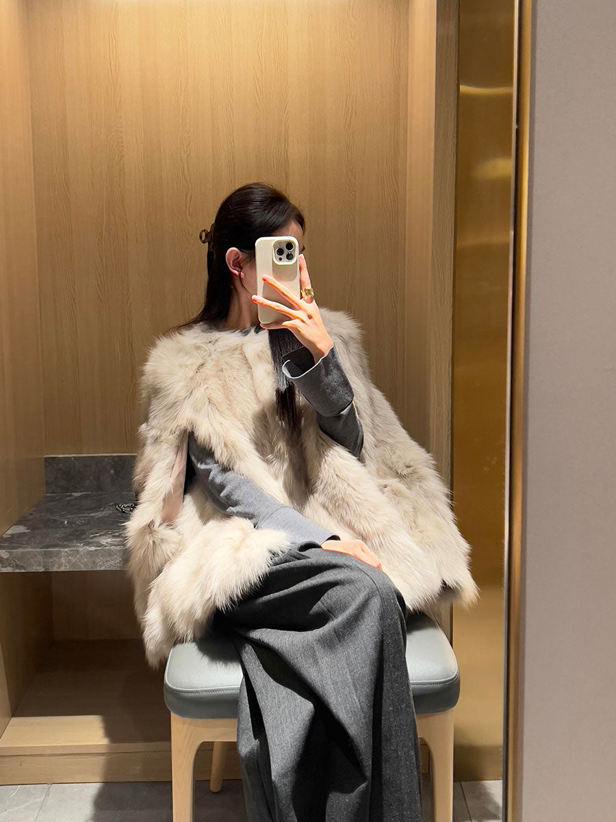 Little Fragrance Fur Coat – Chic Eco-Friendly Fox Fur Cloak