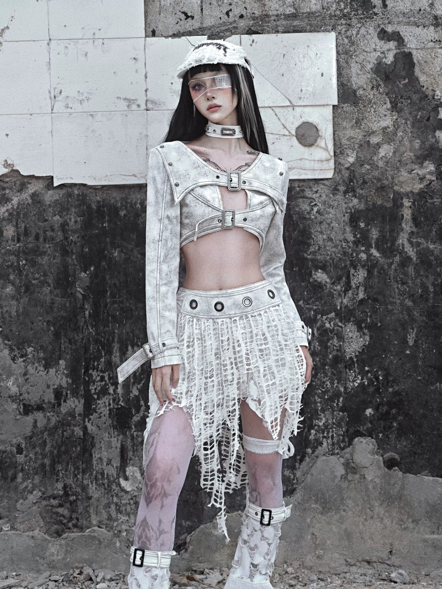 Madhouse Distressed Suede Shoulder Pad Punk Coat