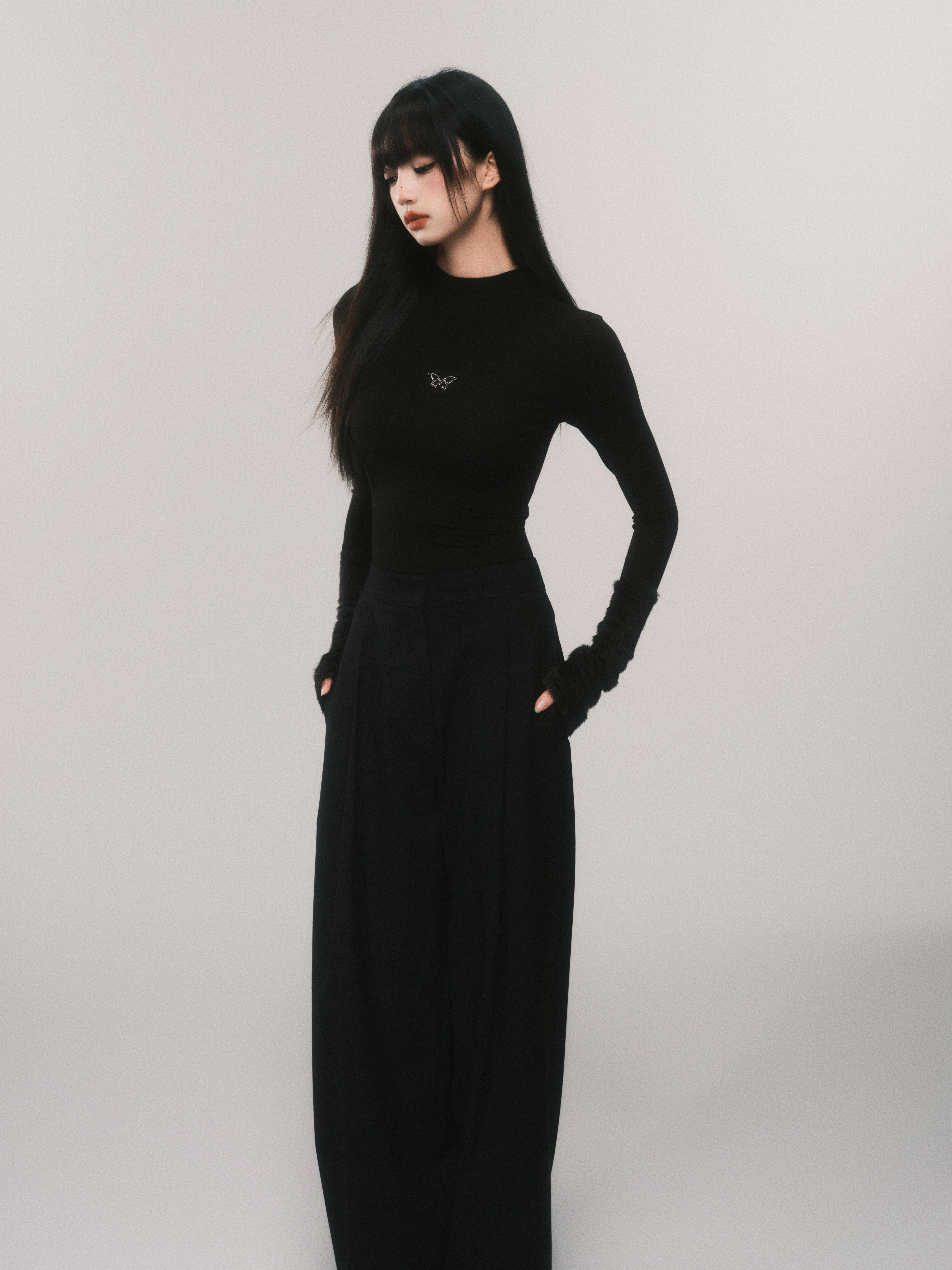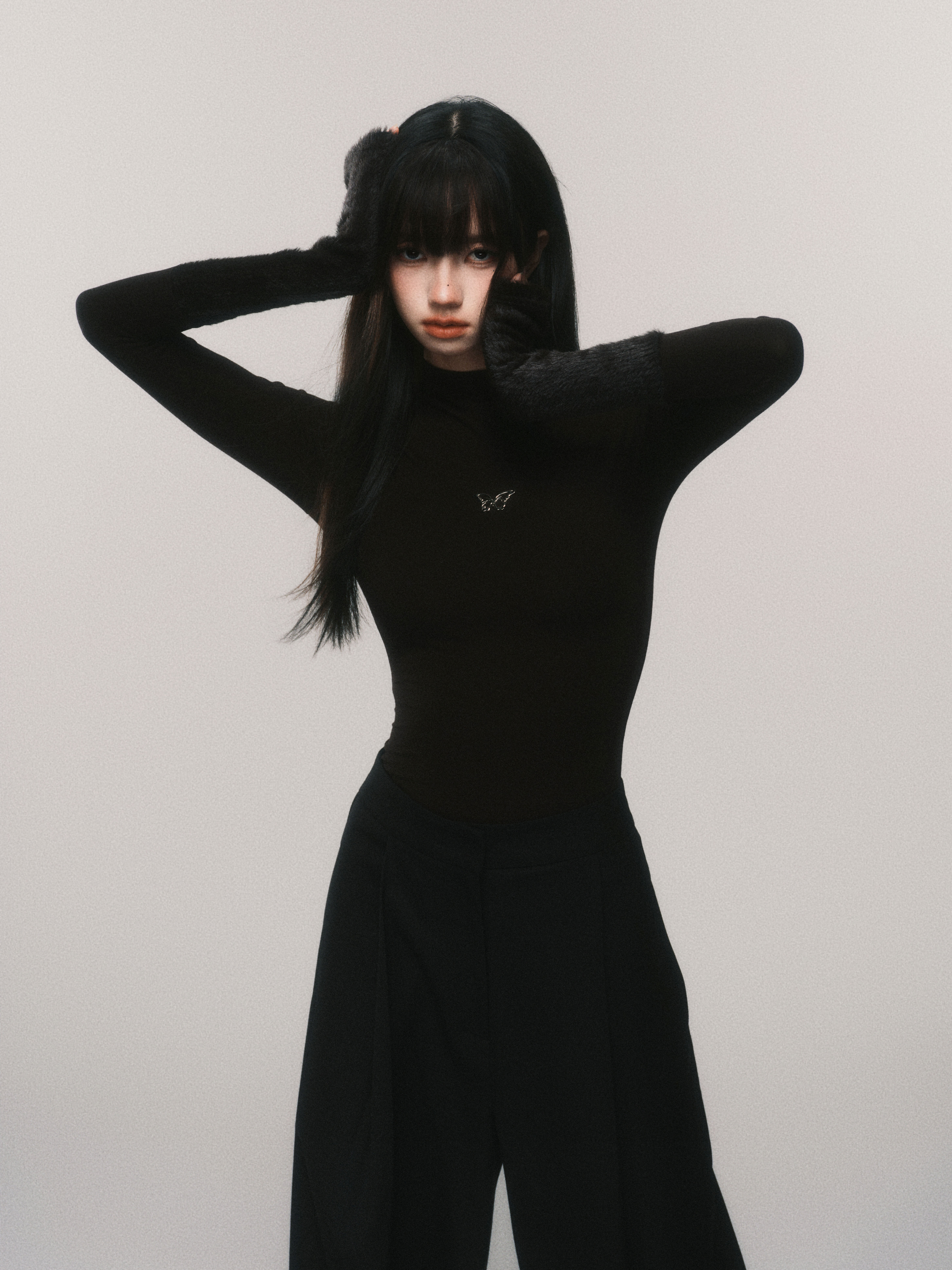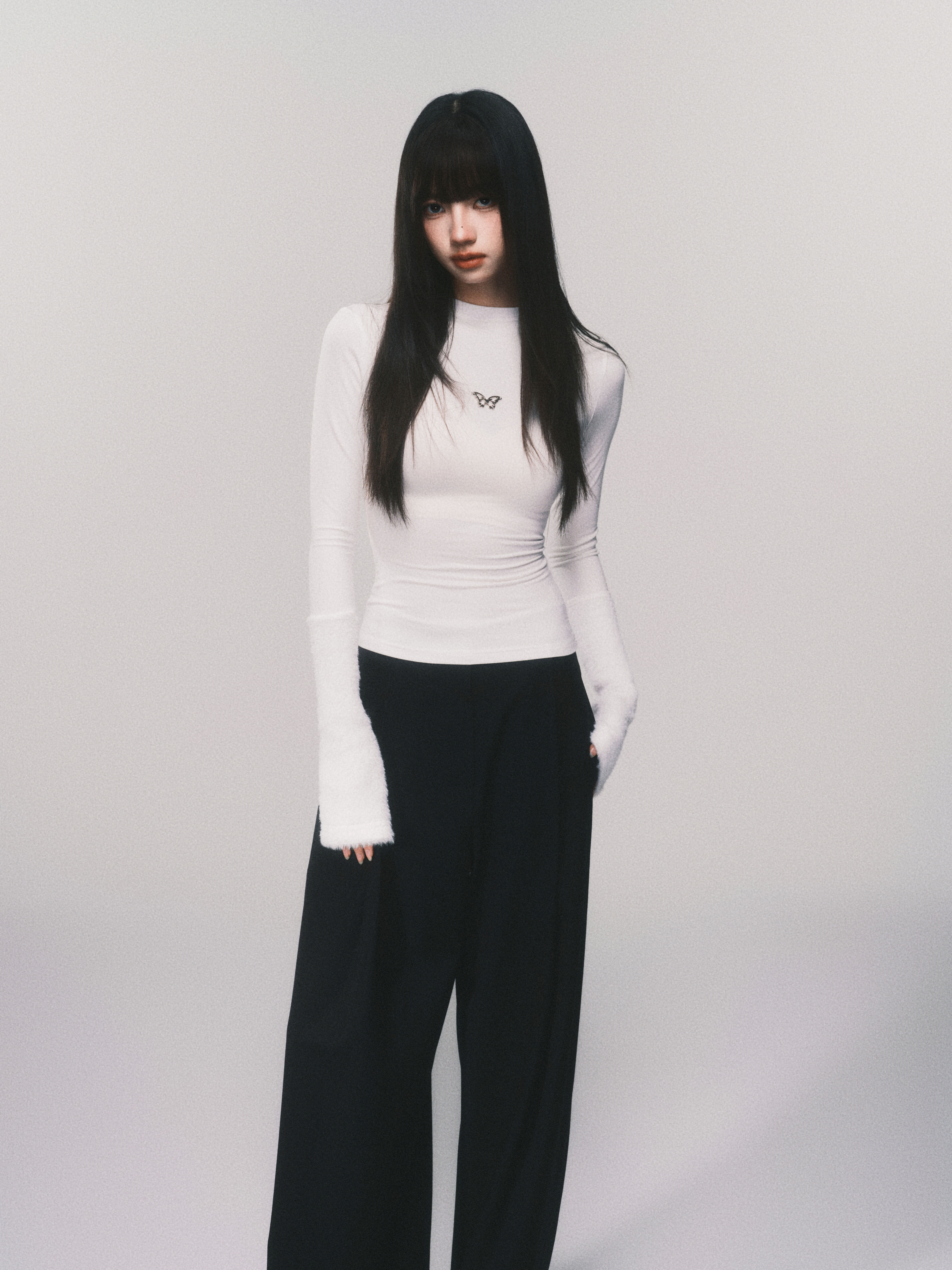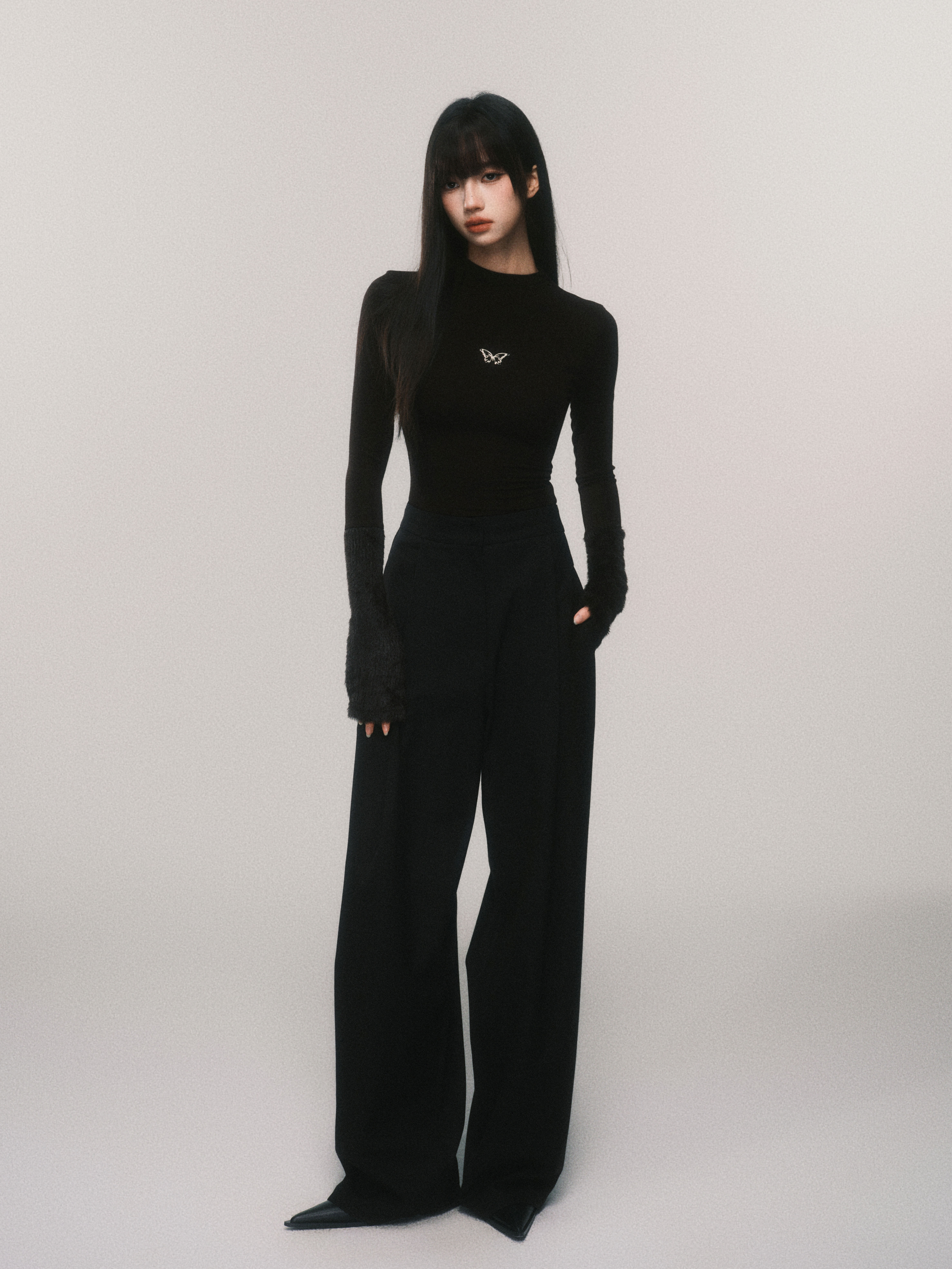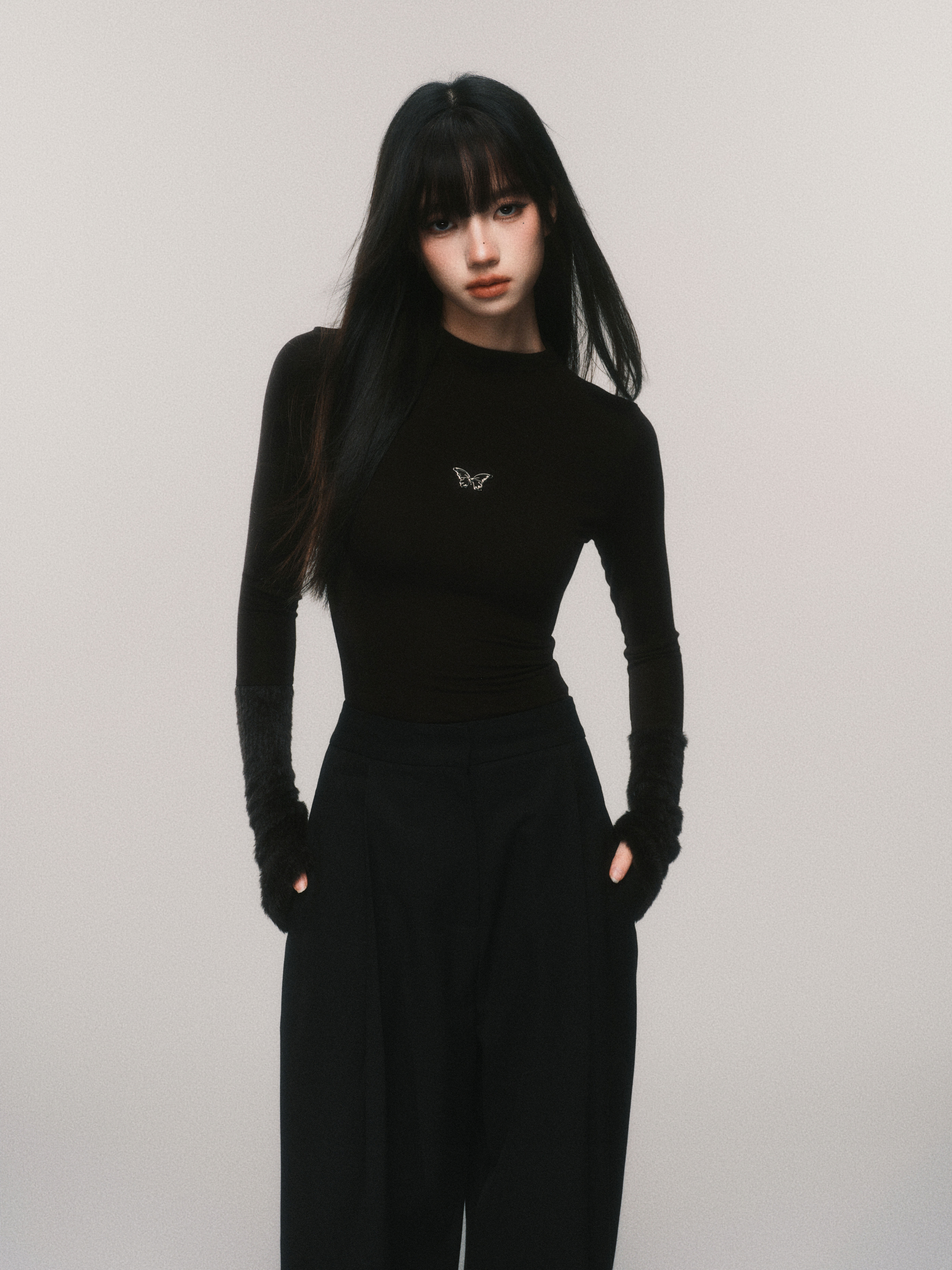 Metallic Butterfly High-Neck Plush Cuff Winter Base Layer