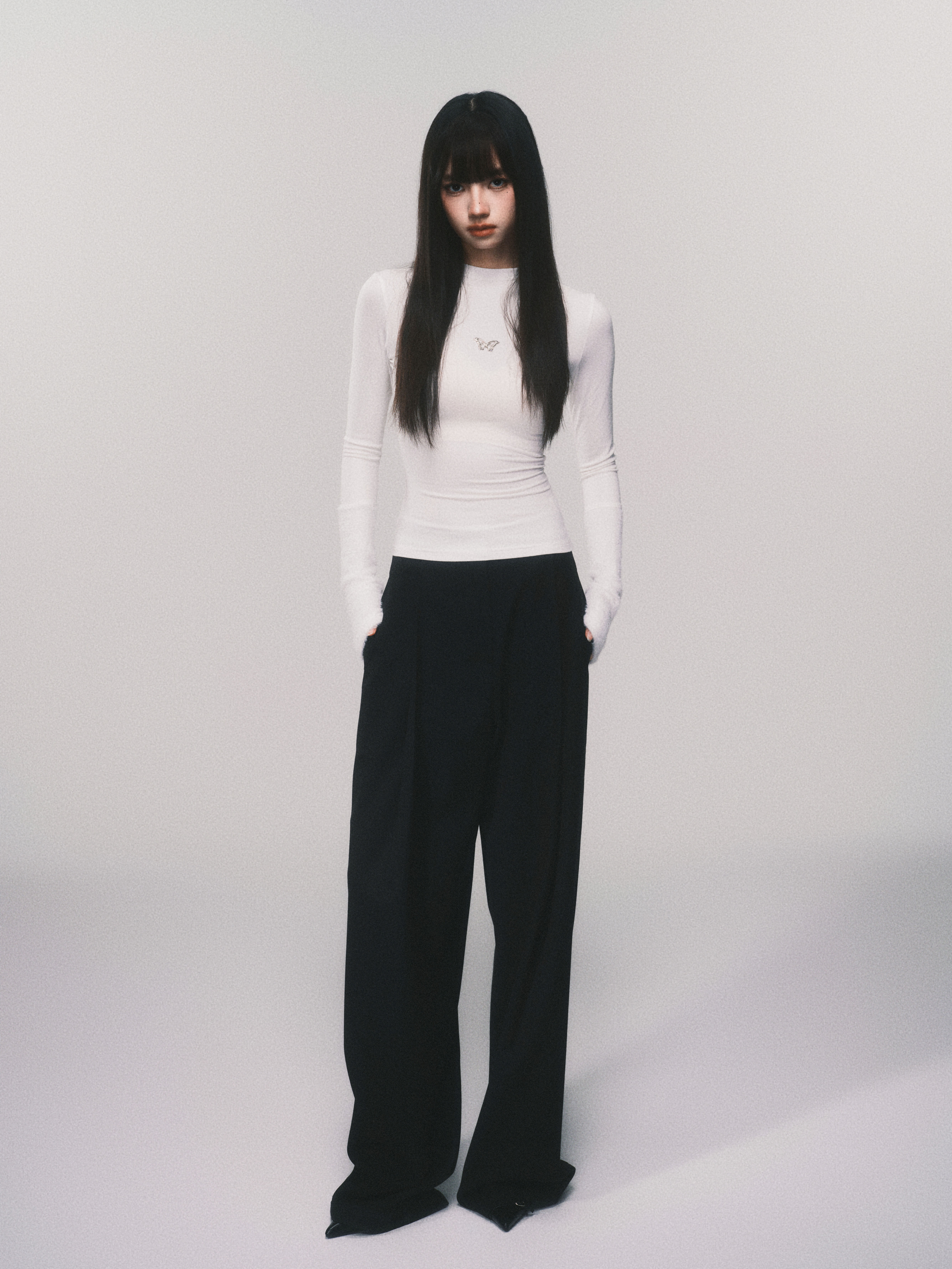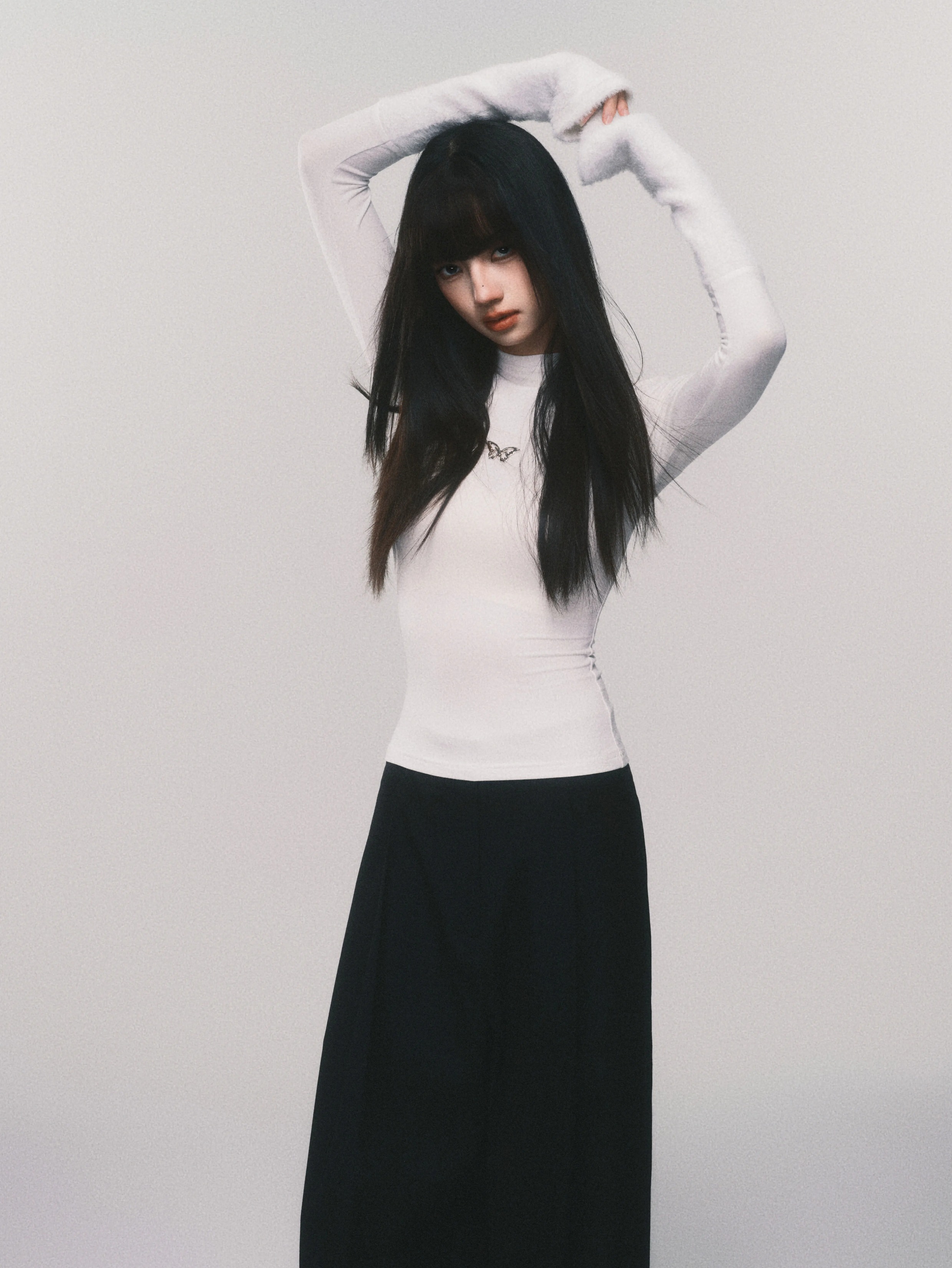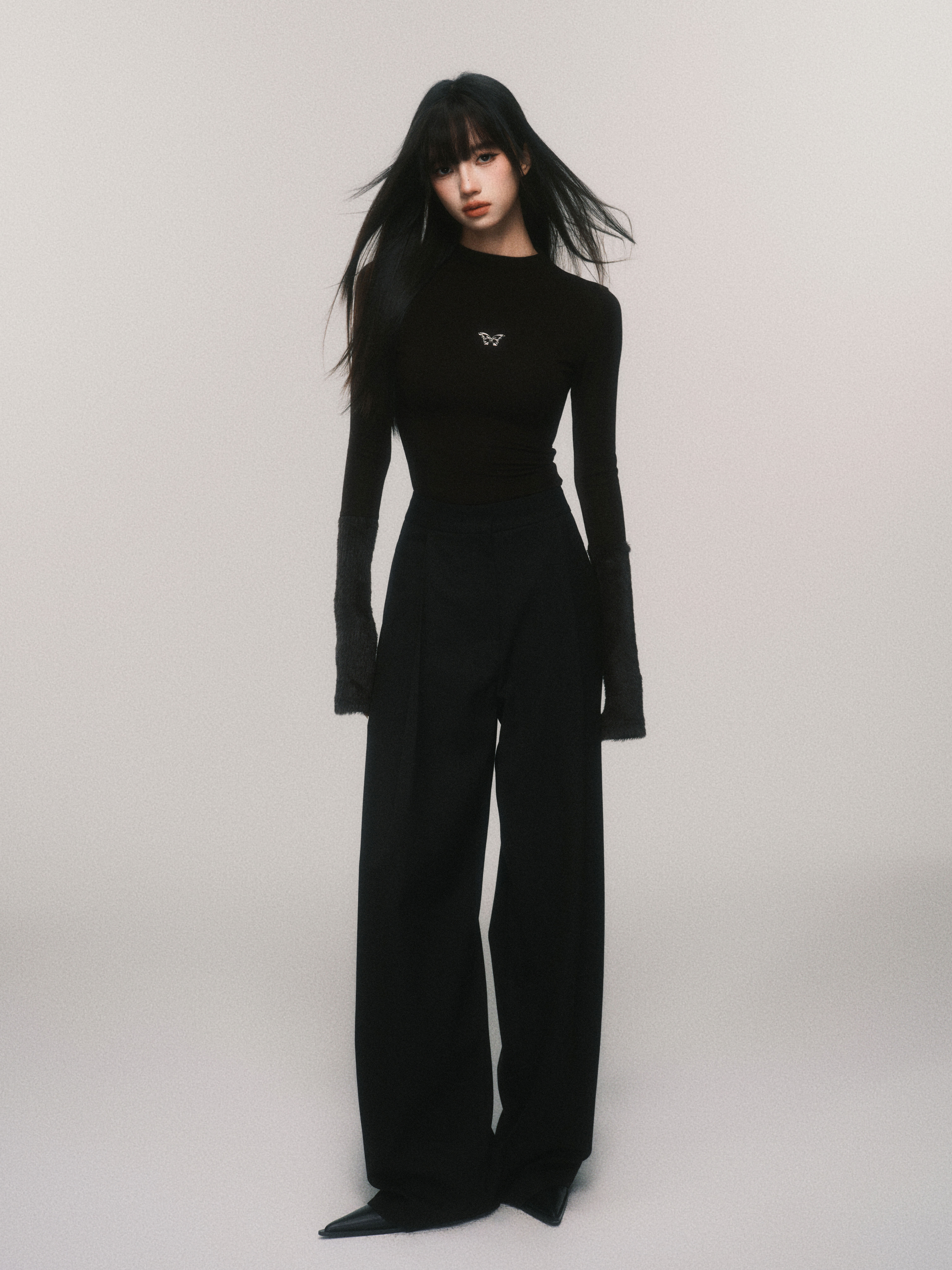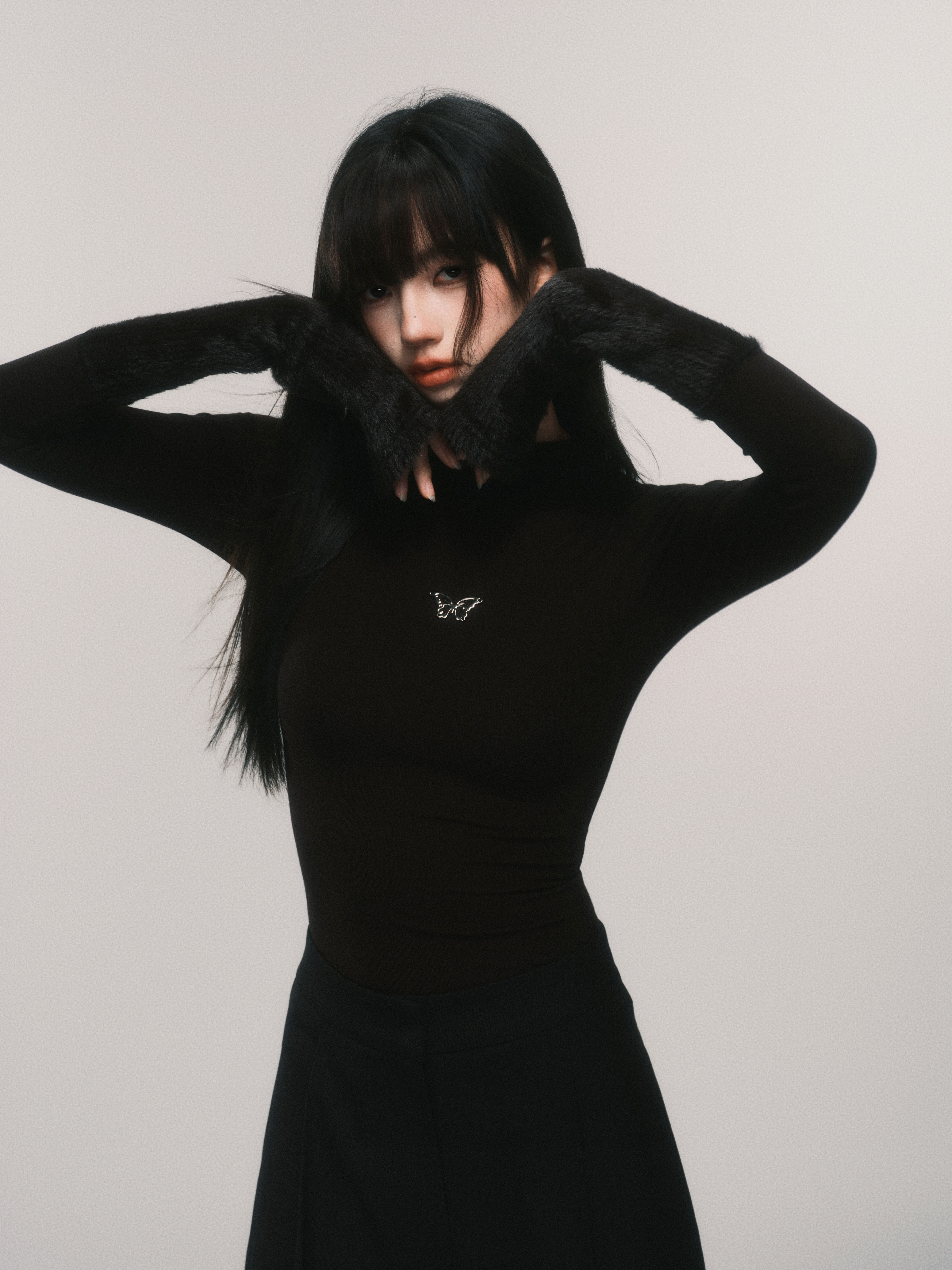 Metallic Butterfly High-Neck Plush Cuff Winter Base Layer