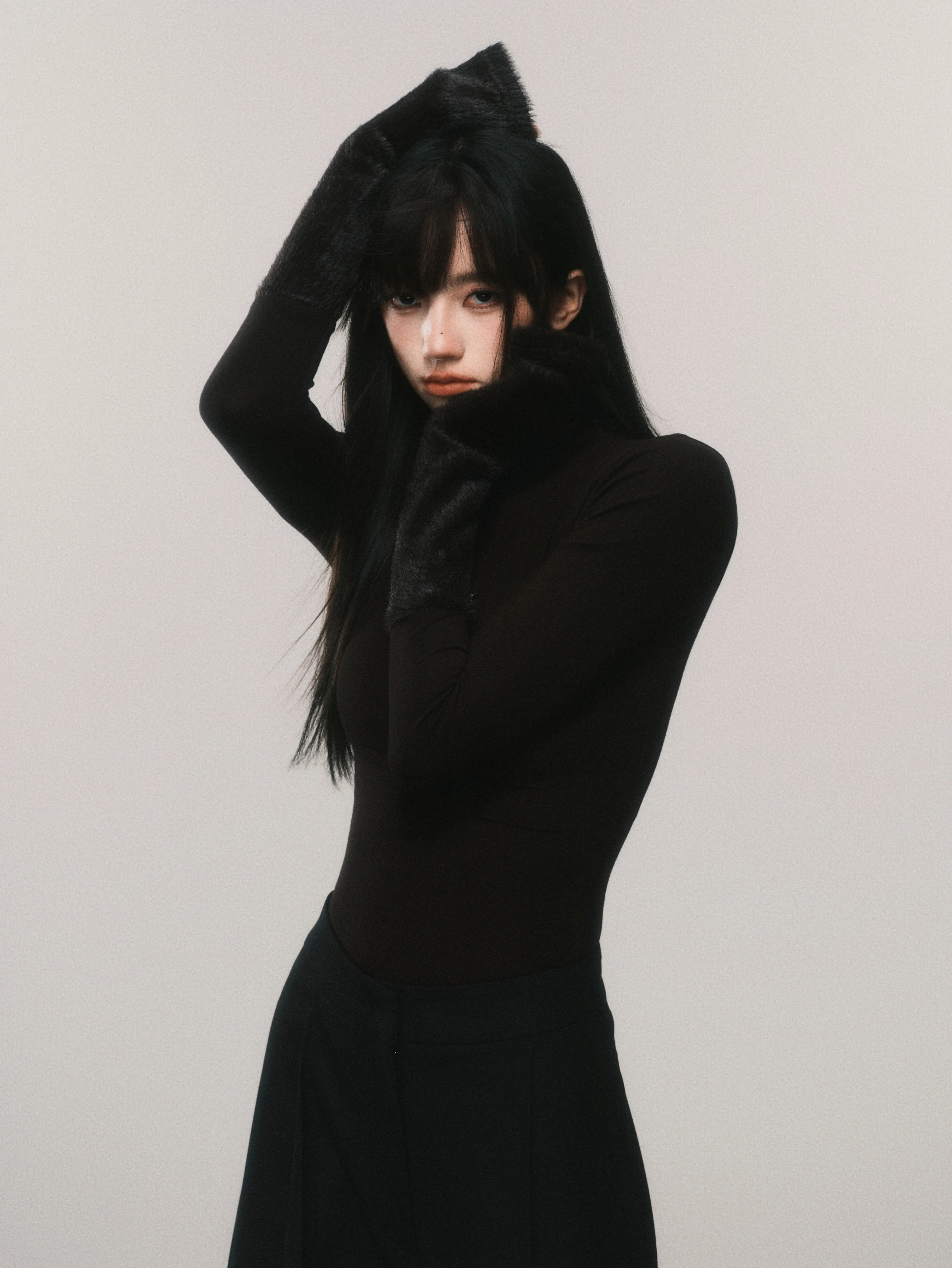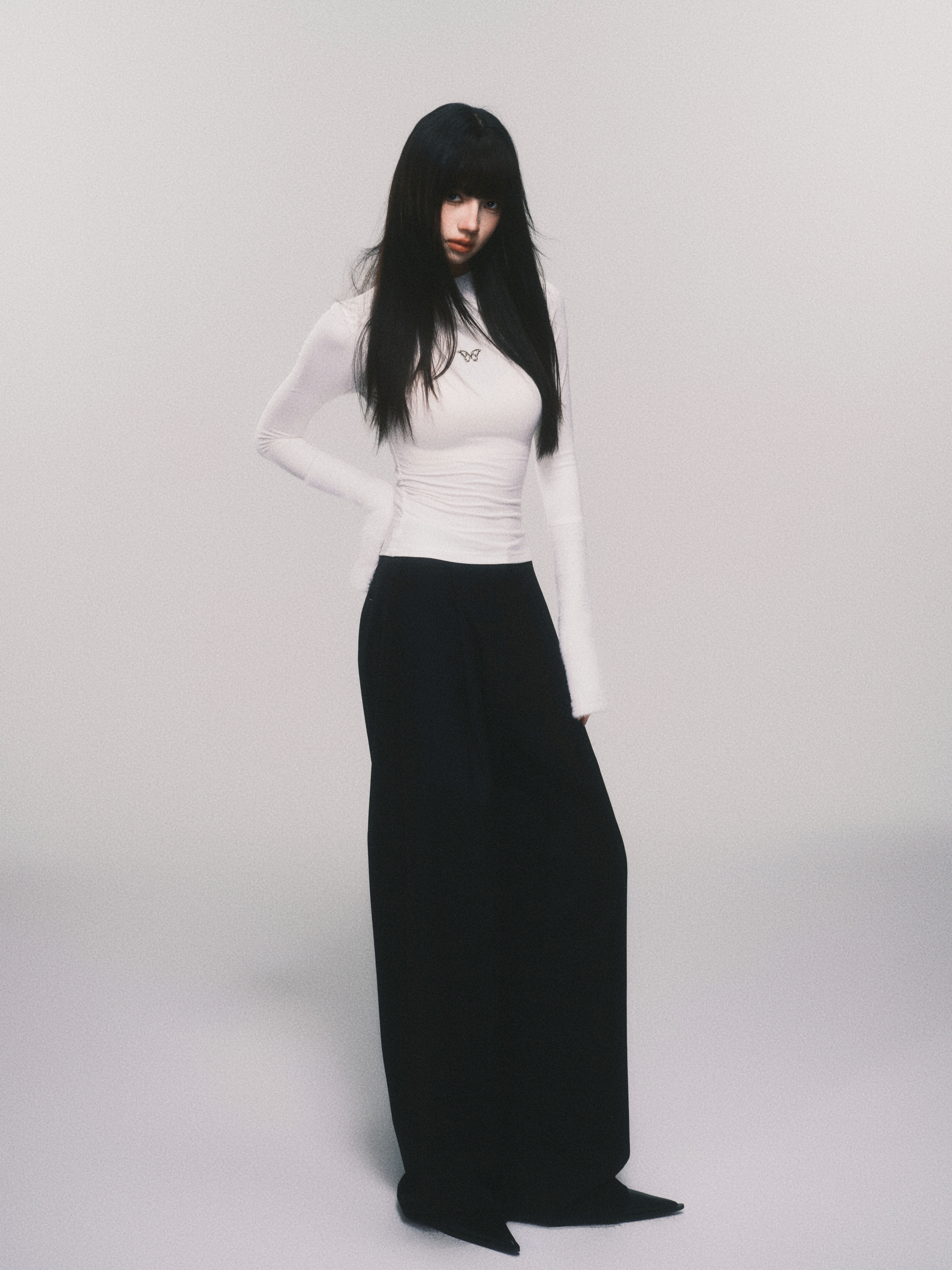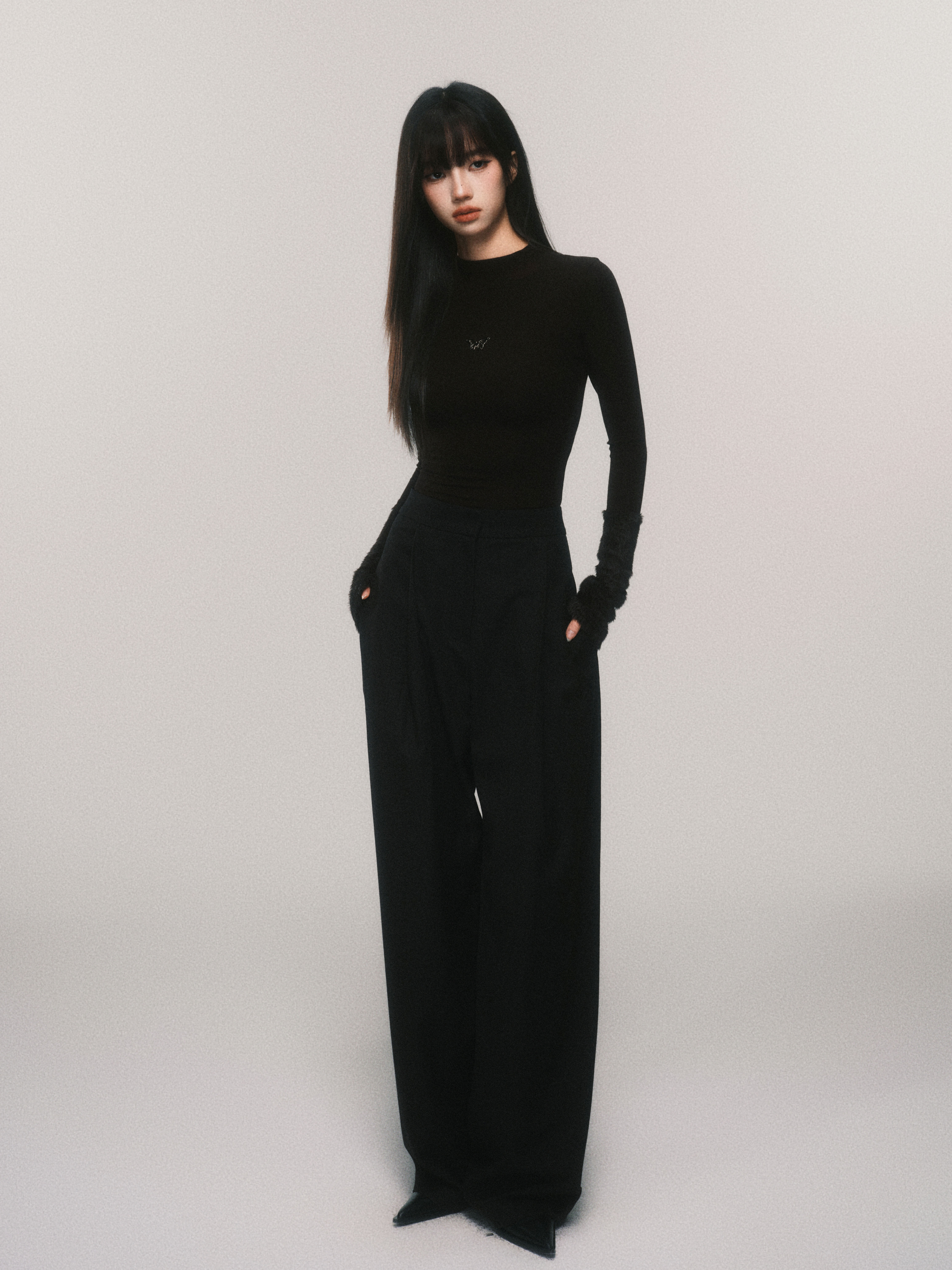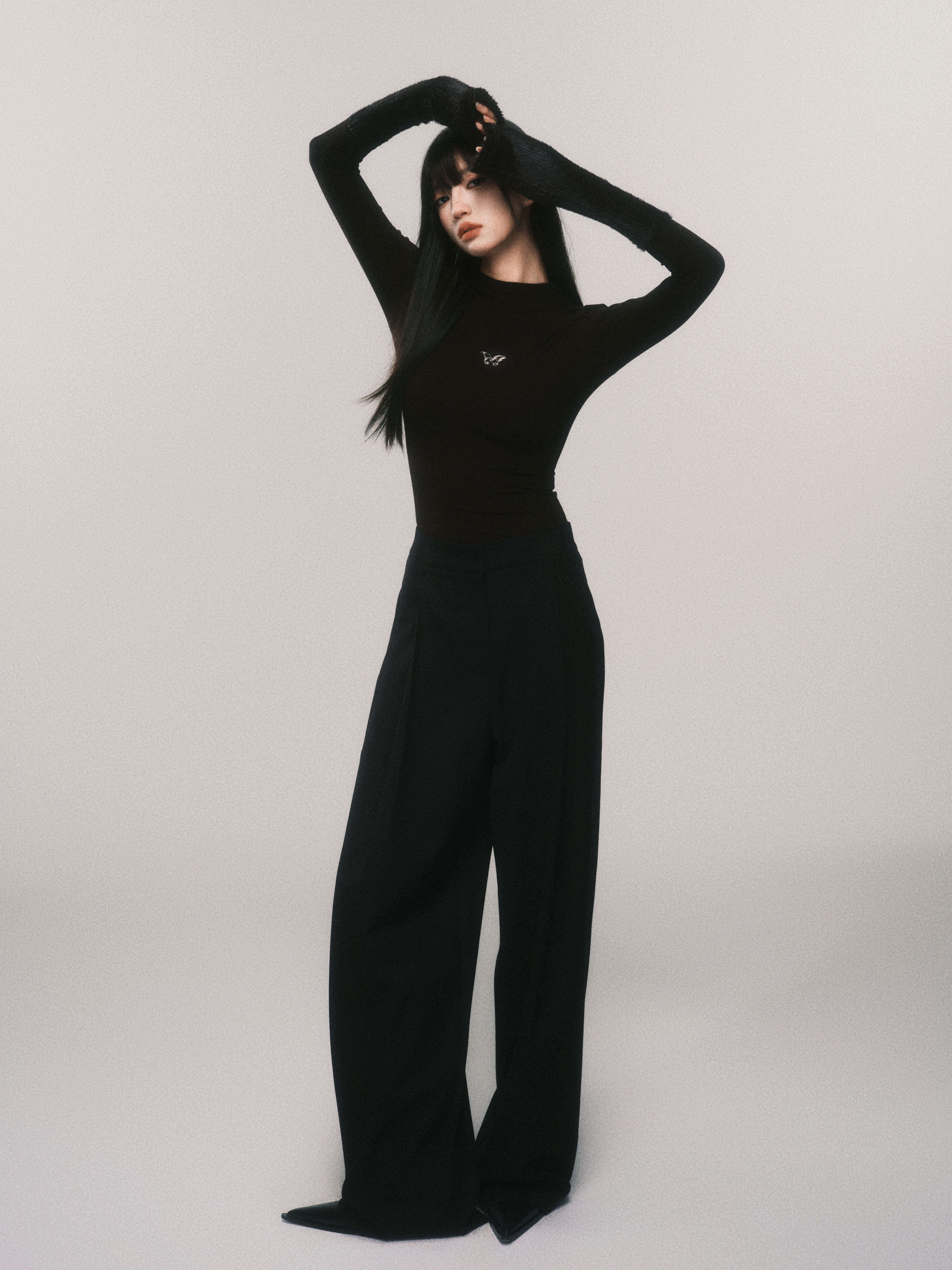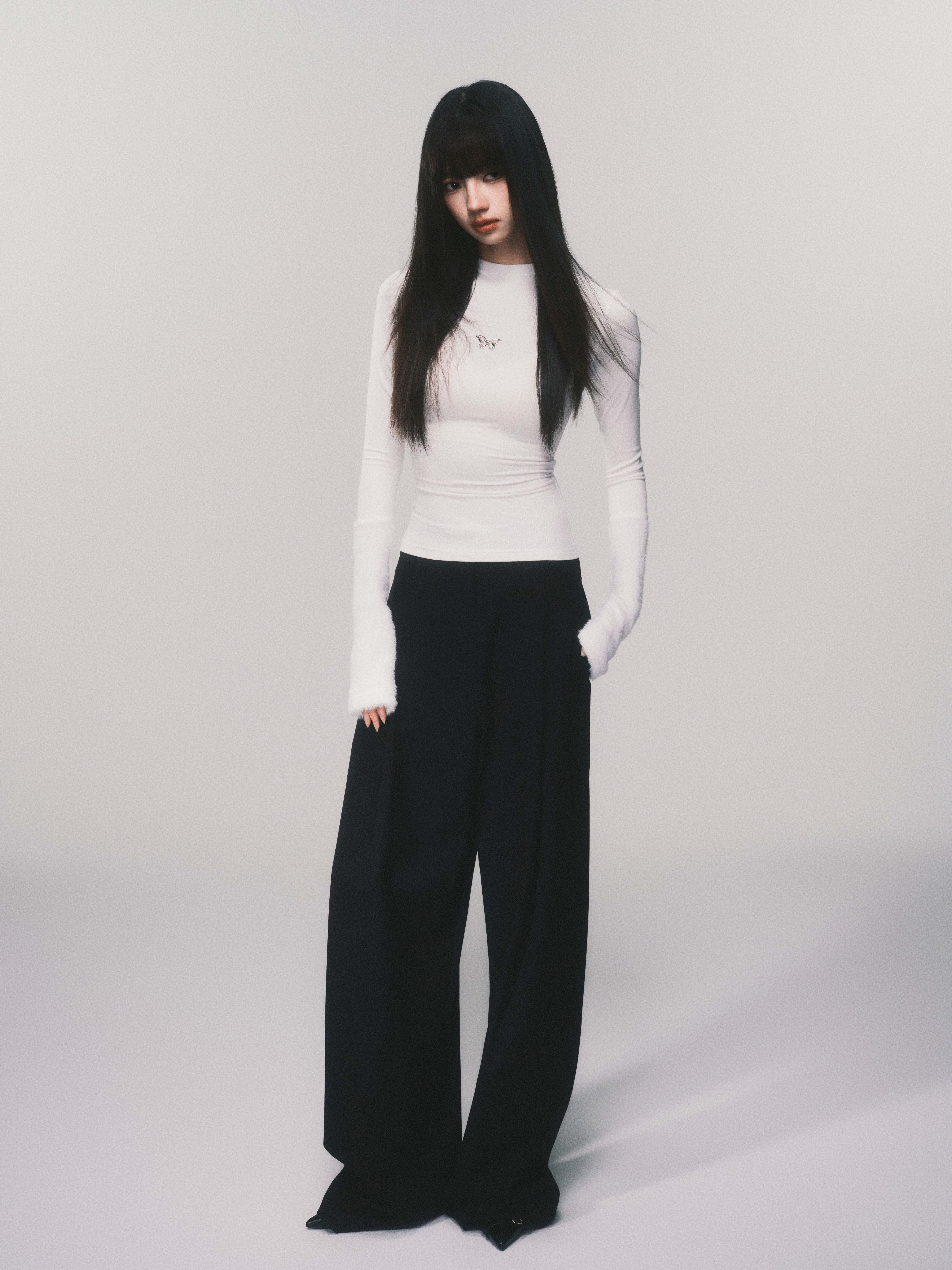 Metallic Butterfly High-Neck Plush Cuff Winter Base Layer