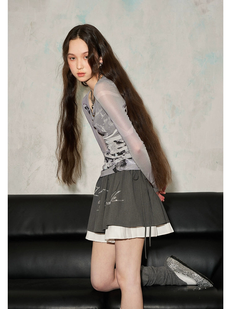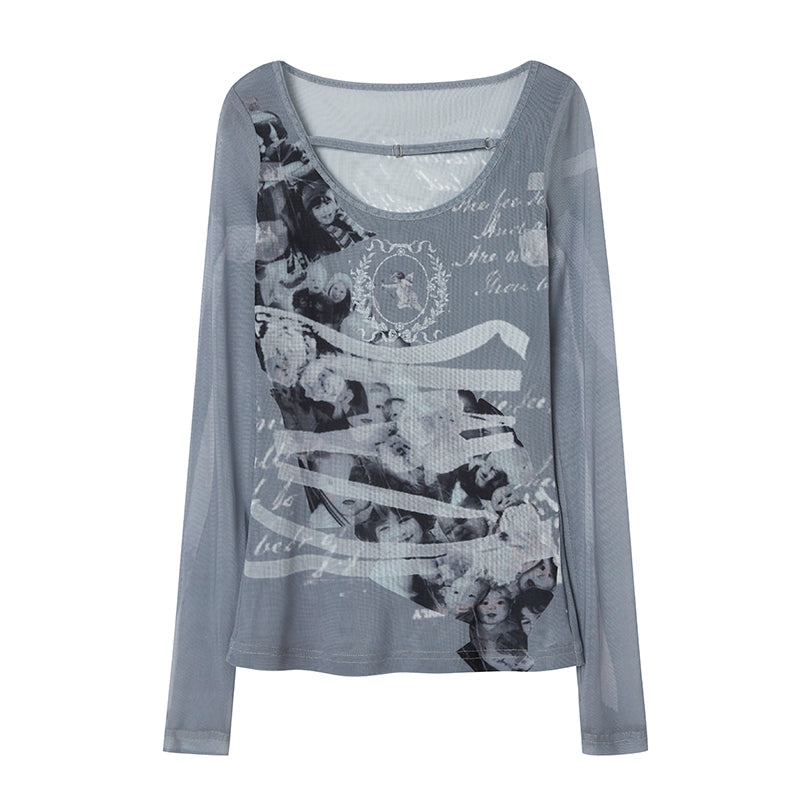 Cupid Print Mesh Top