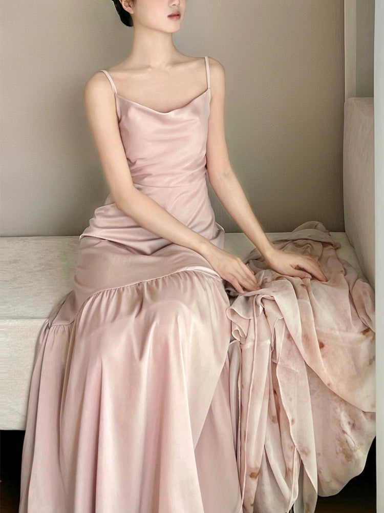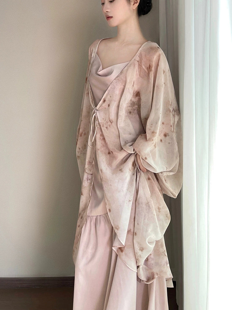 New Chinese Satin Slip Dress – Retro-Inspired Bridal Morning Robe