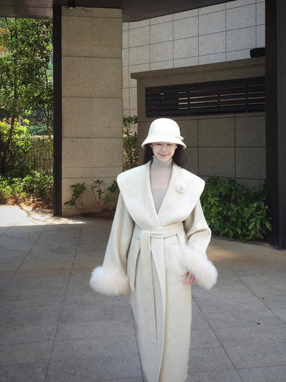 Off-White Double-Faced Cashmere Coat – Long Lapel Celebrity Woolen Coat