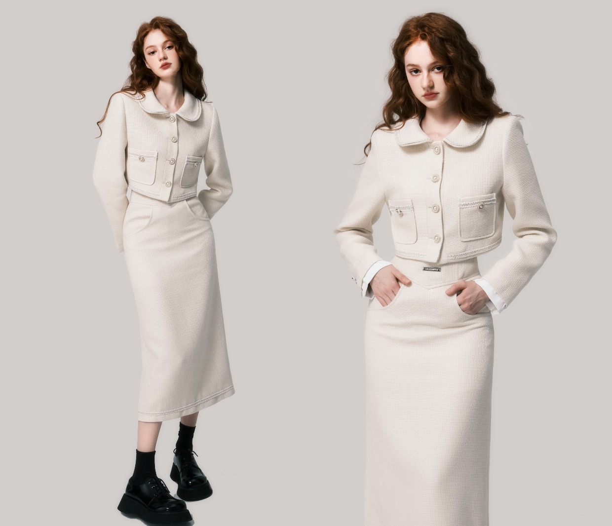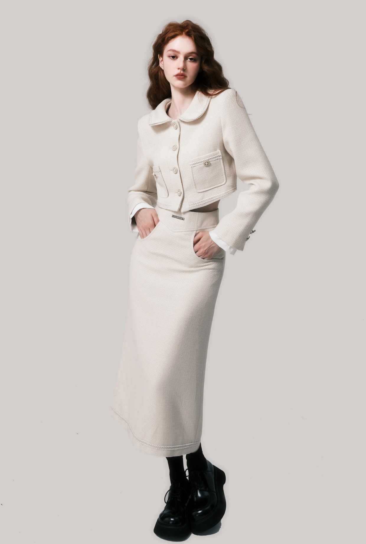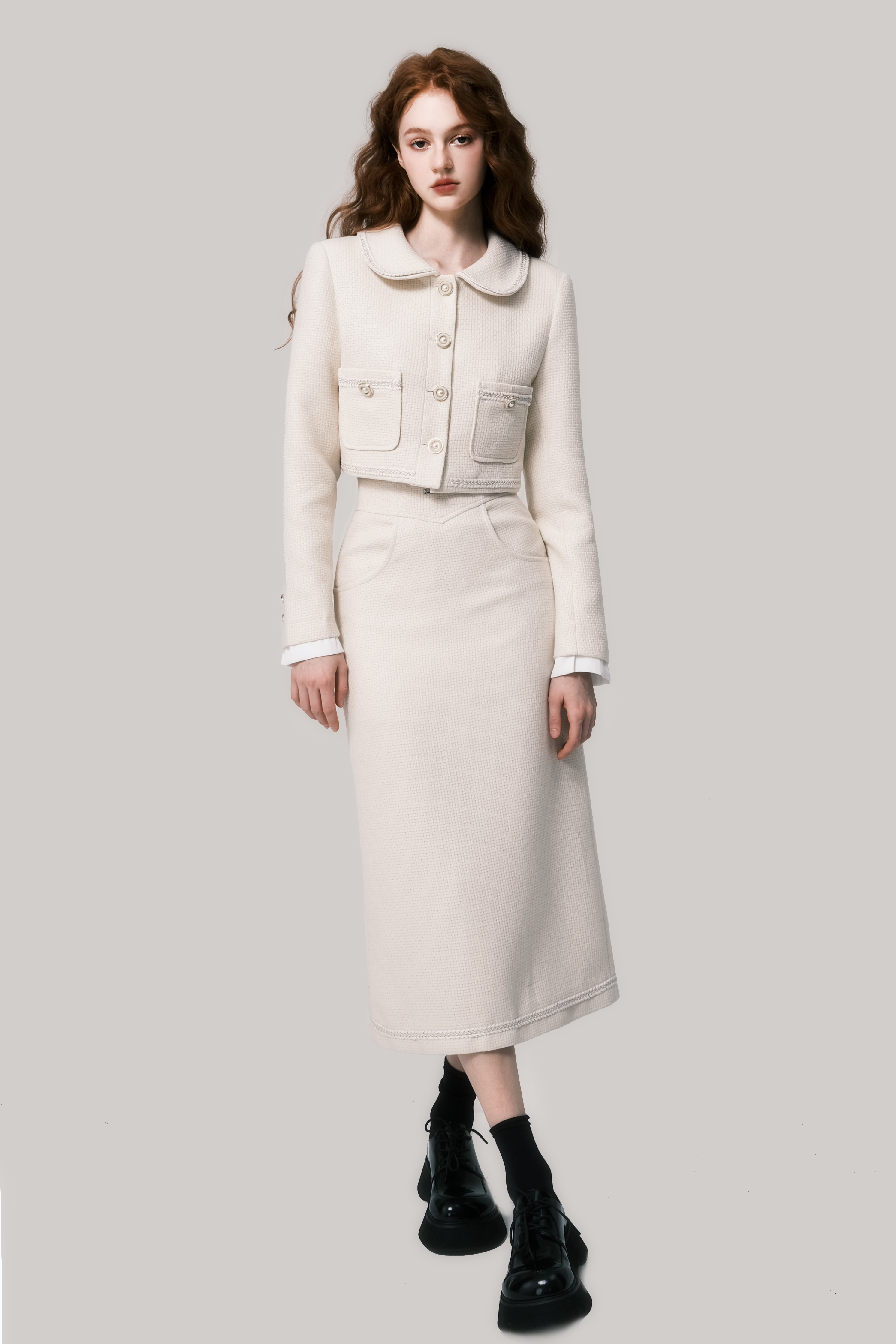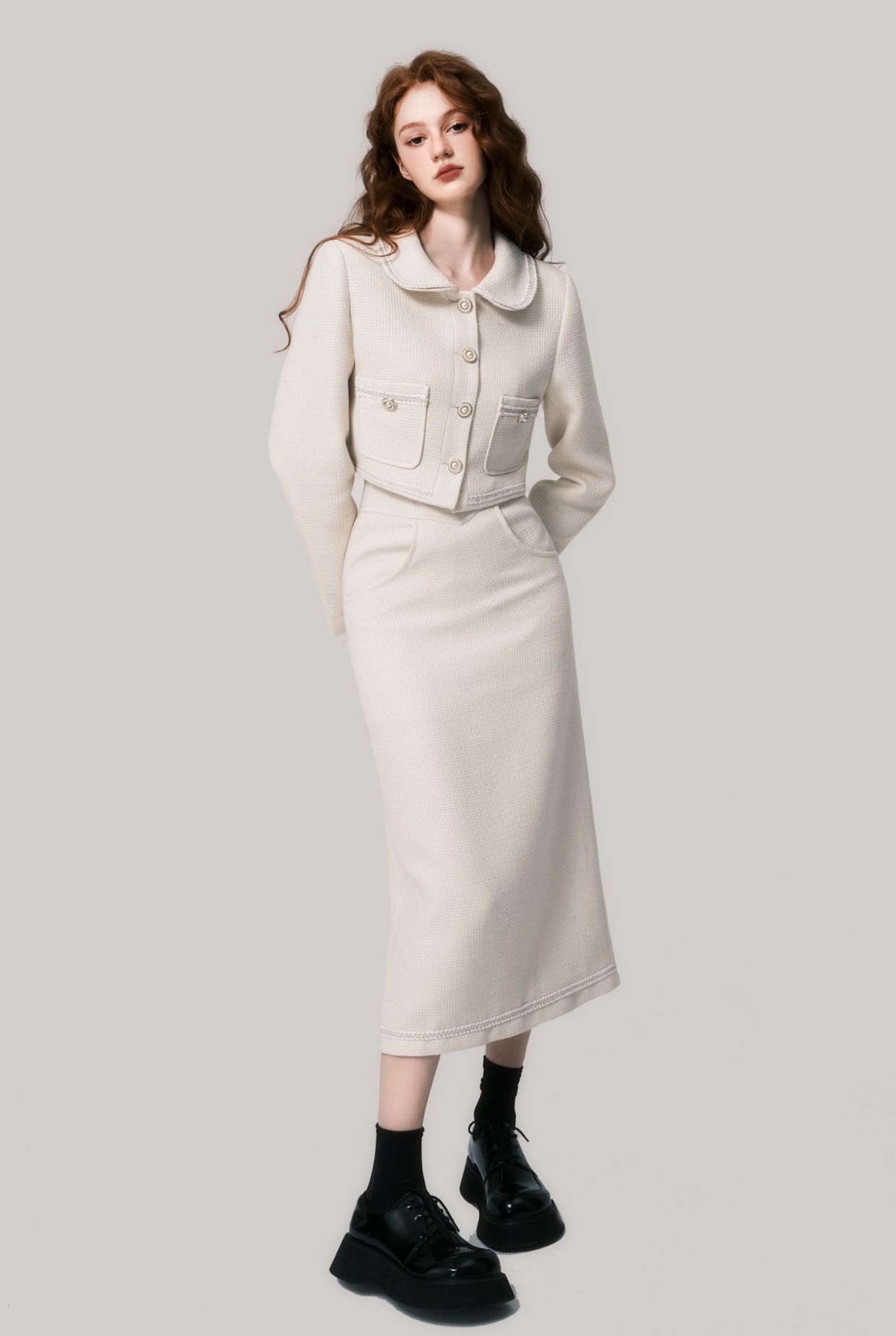 Beige Doll Neck Woolen Set - French Fragrance