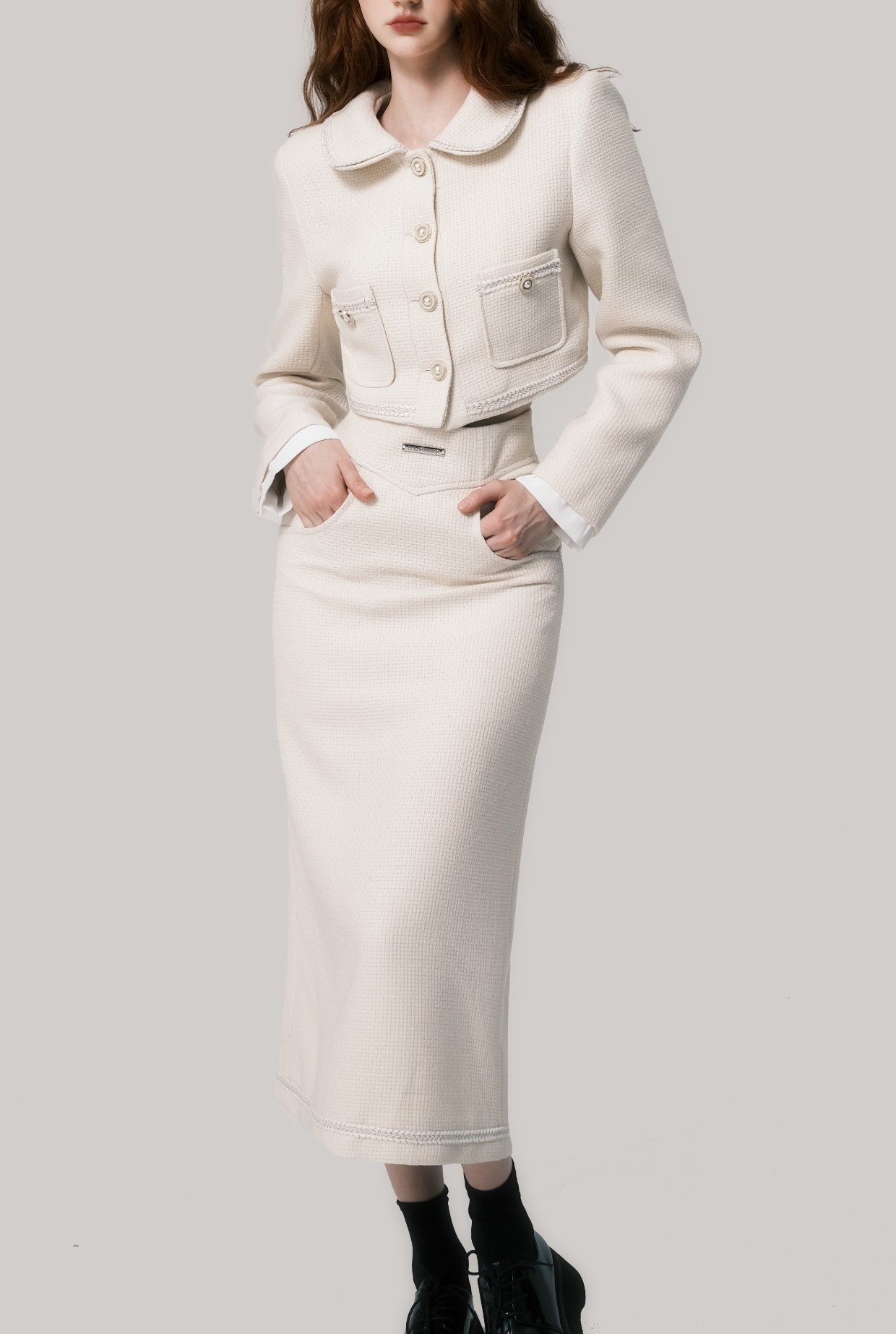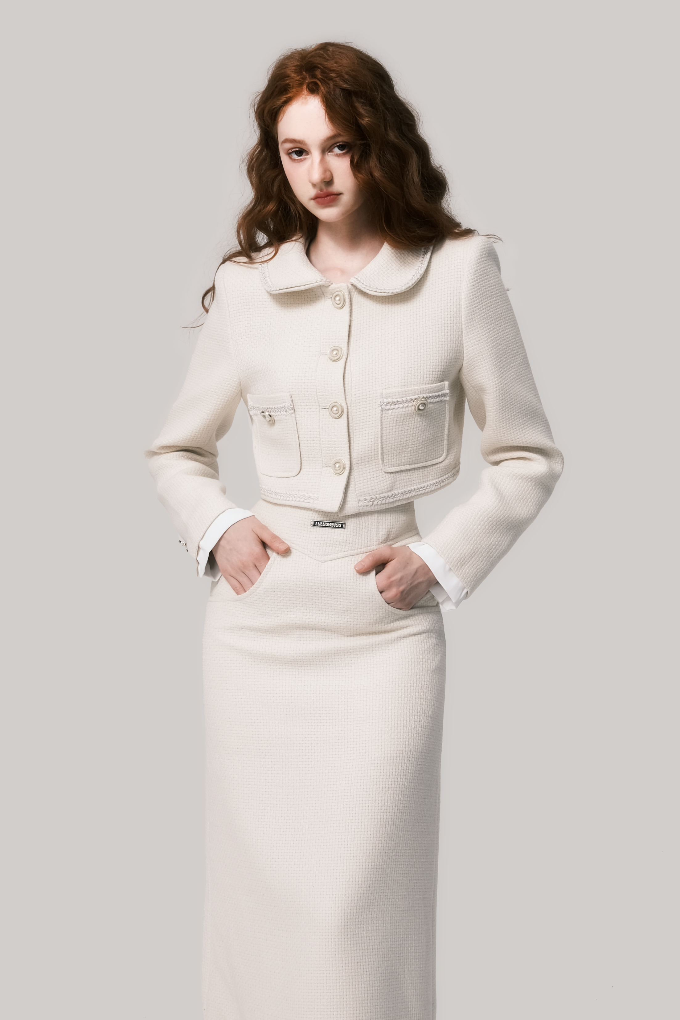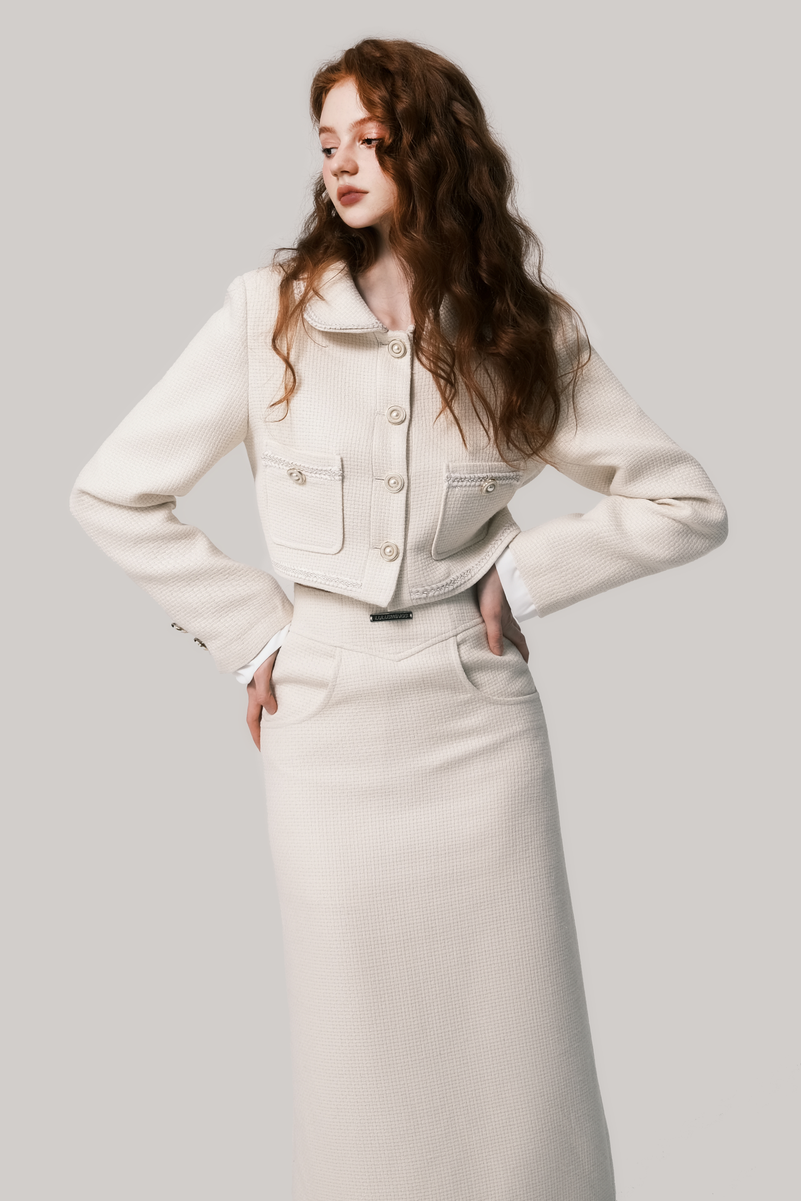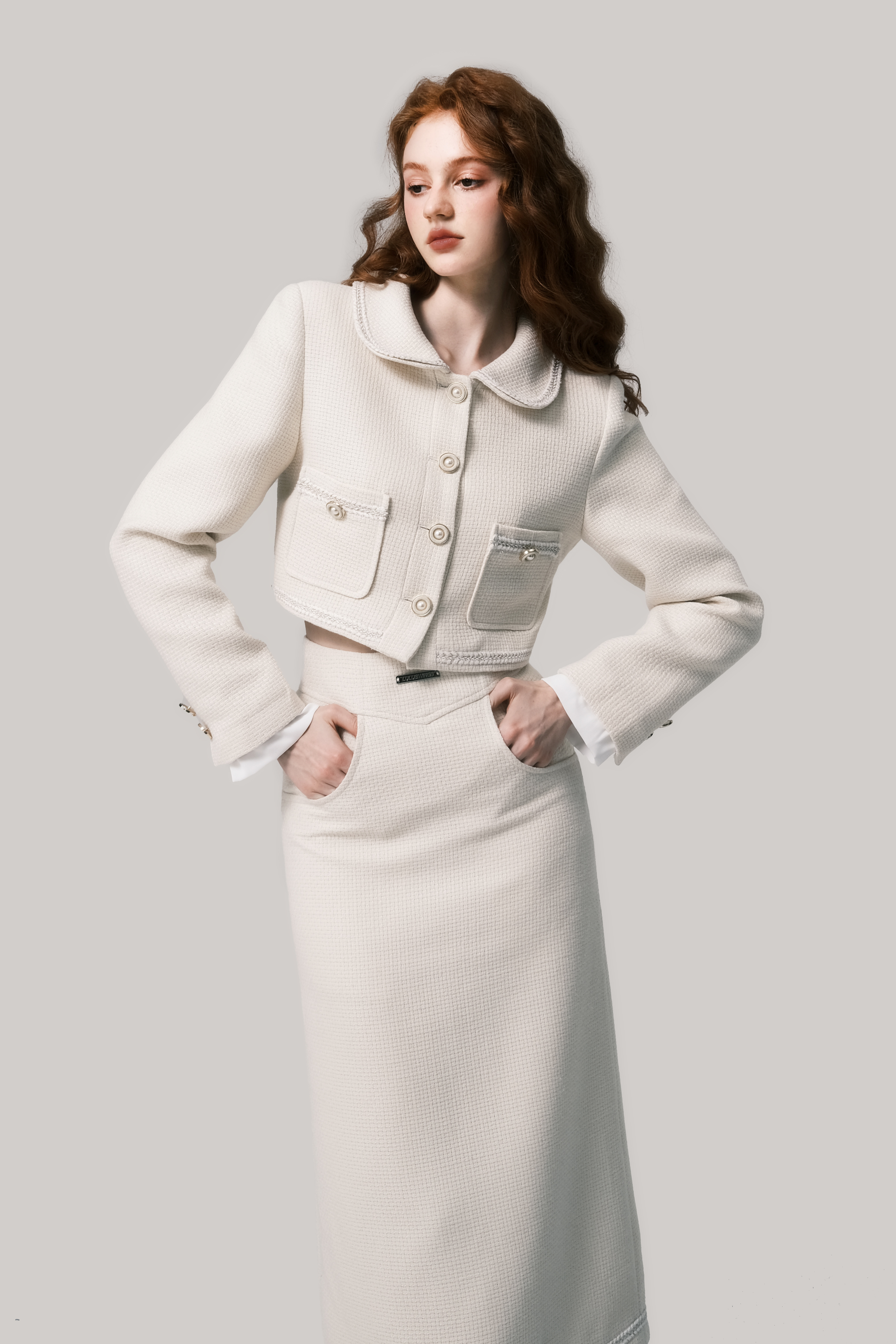 Beige Doll Neck Woolen Set - French Fragrance