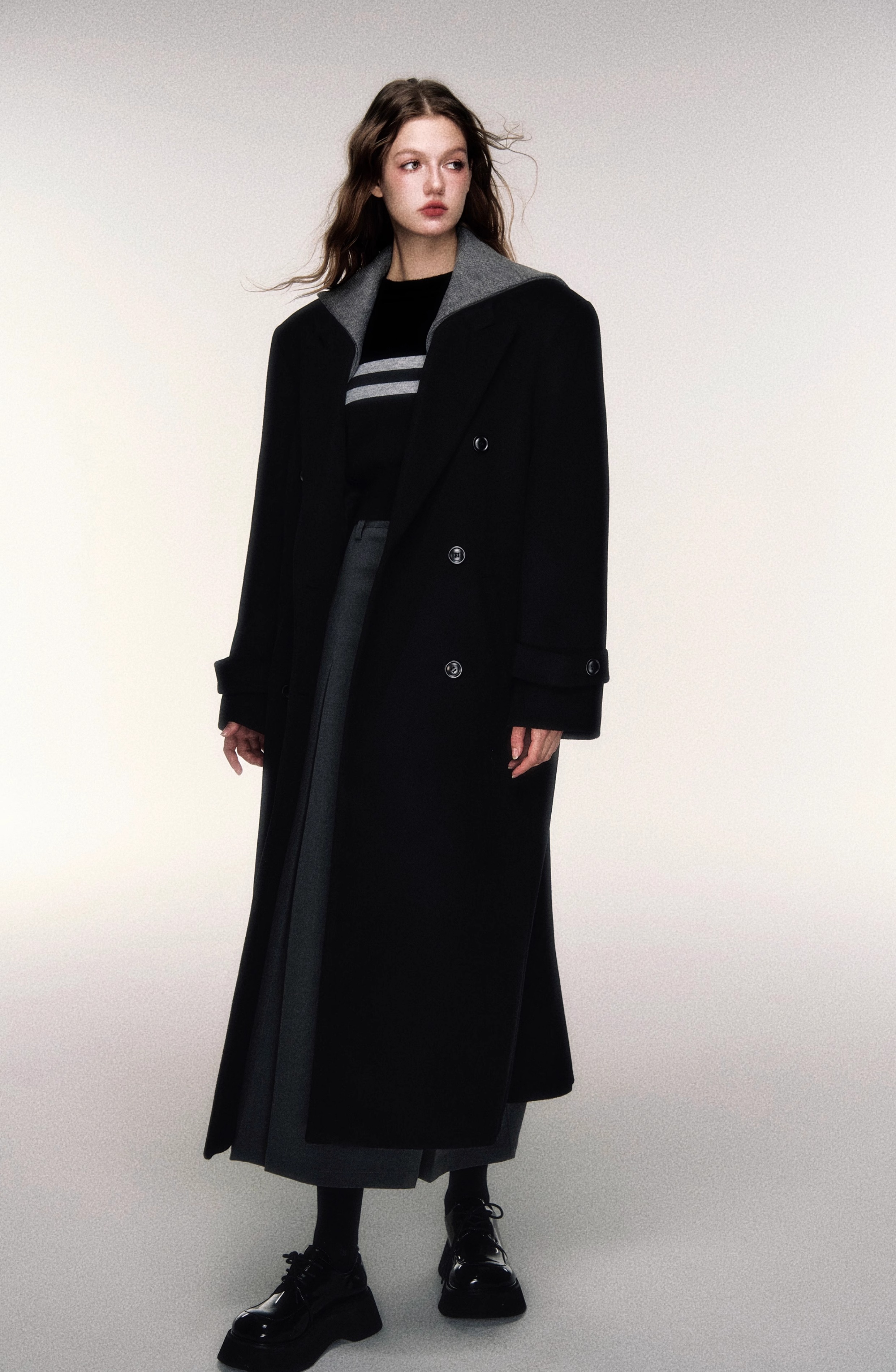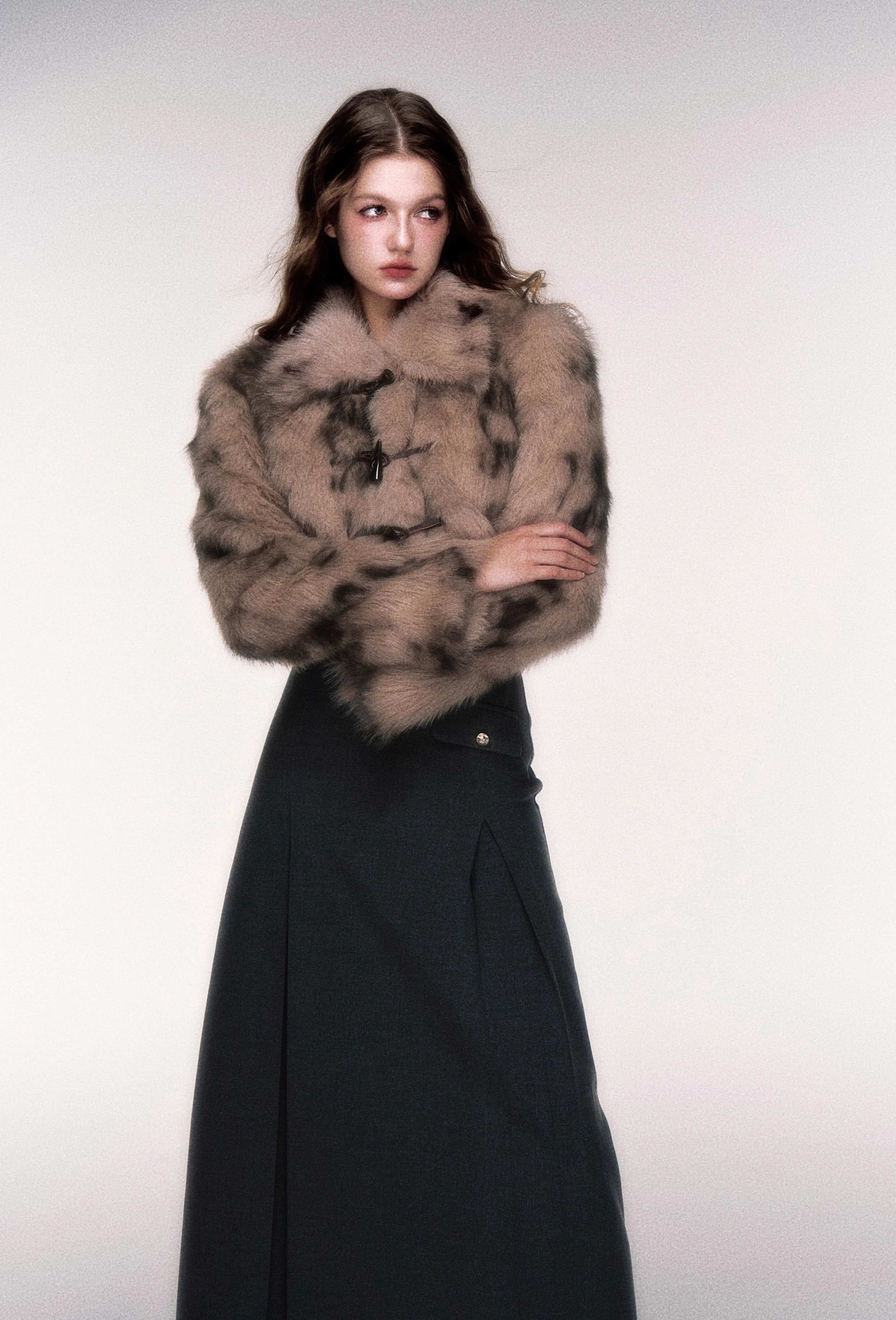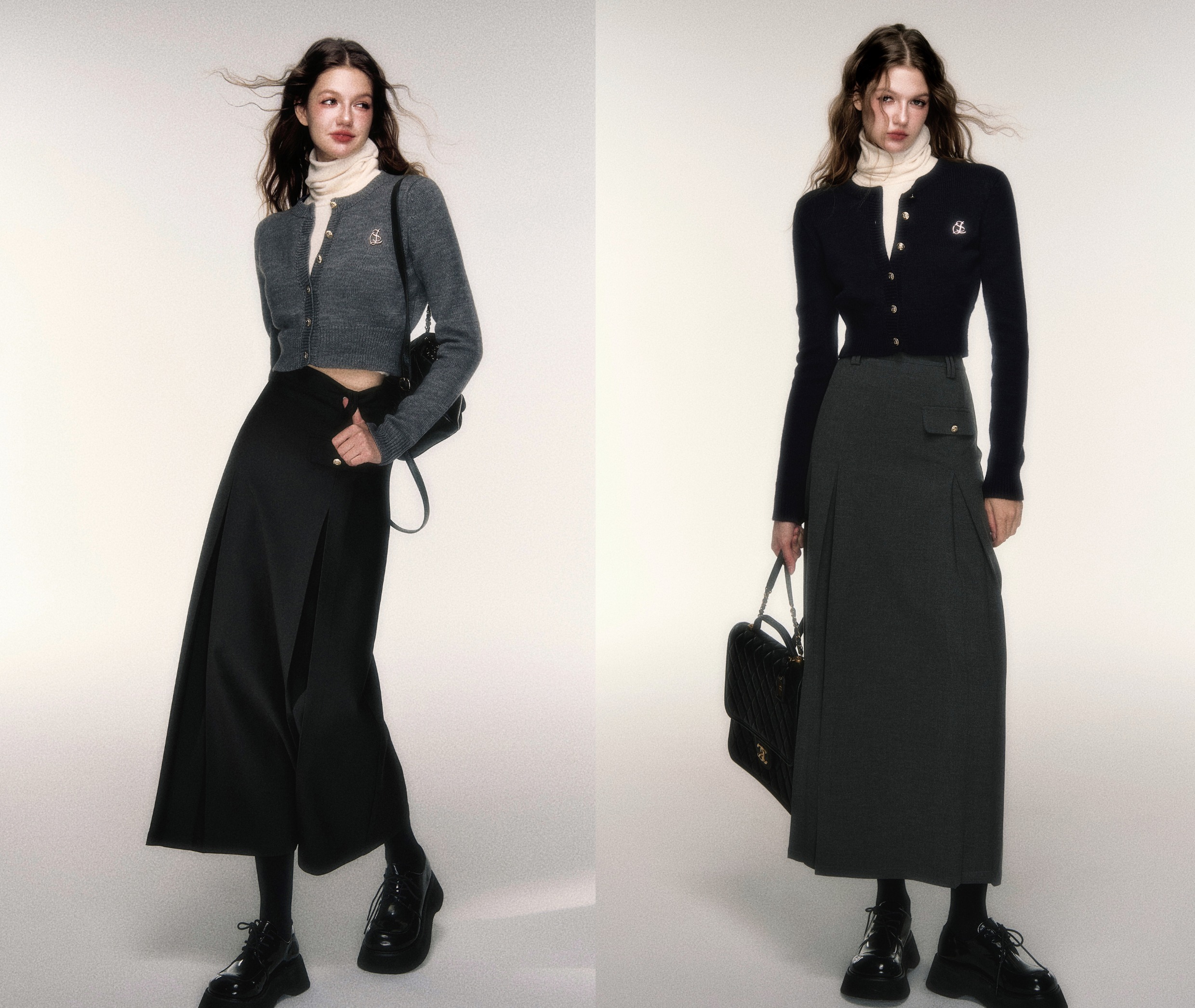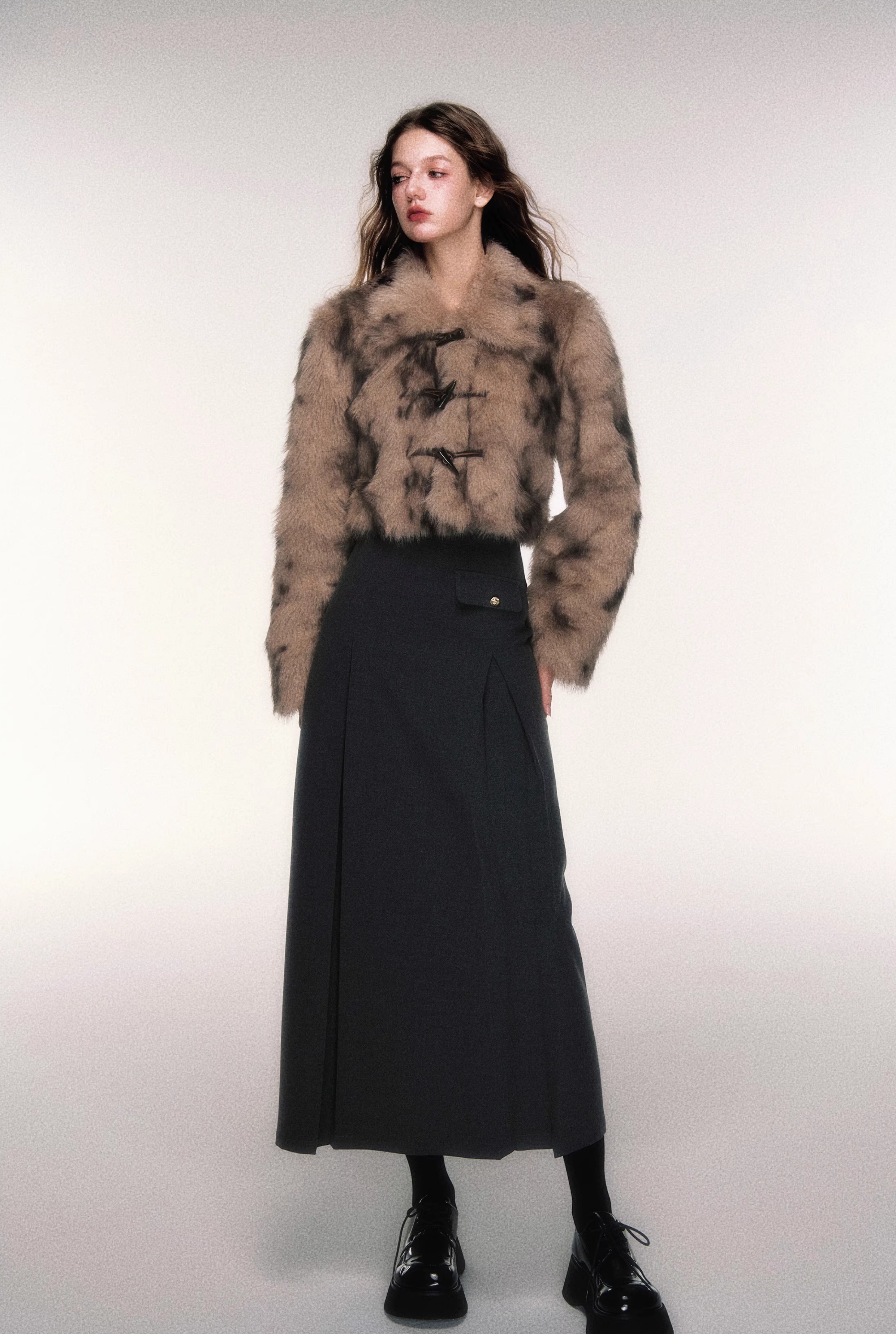 Dark Grey Long Folded Skirt - Small Gold Buttons