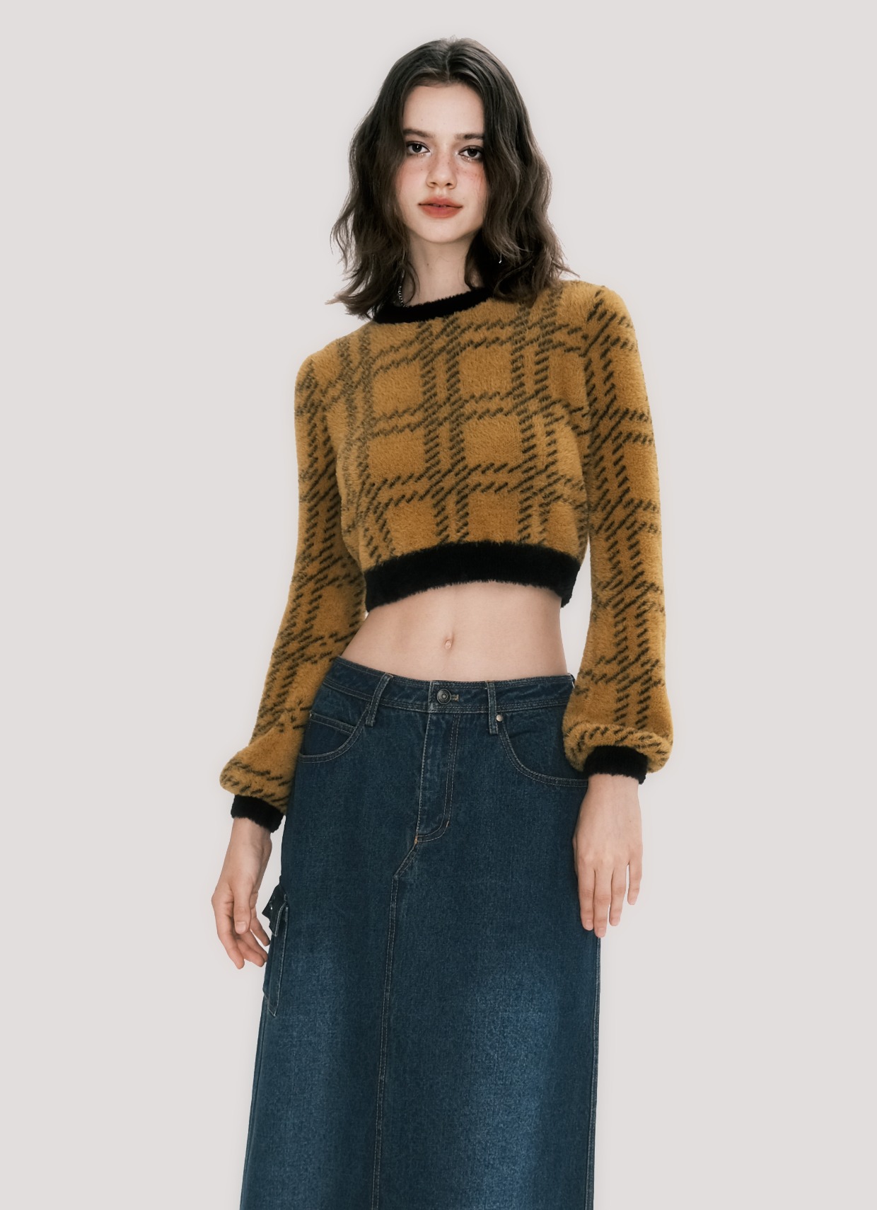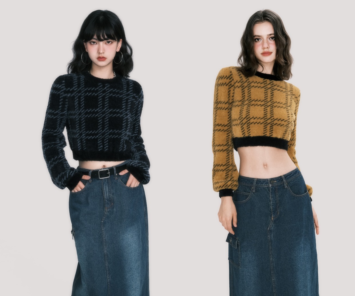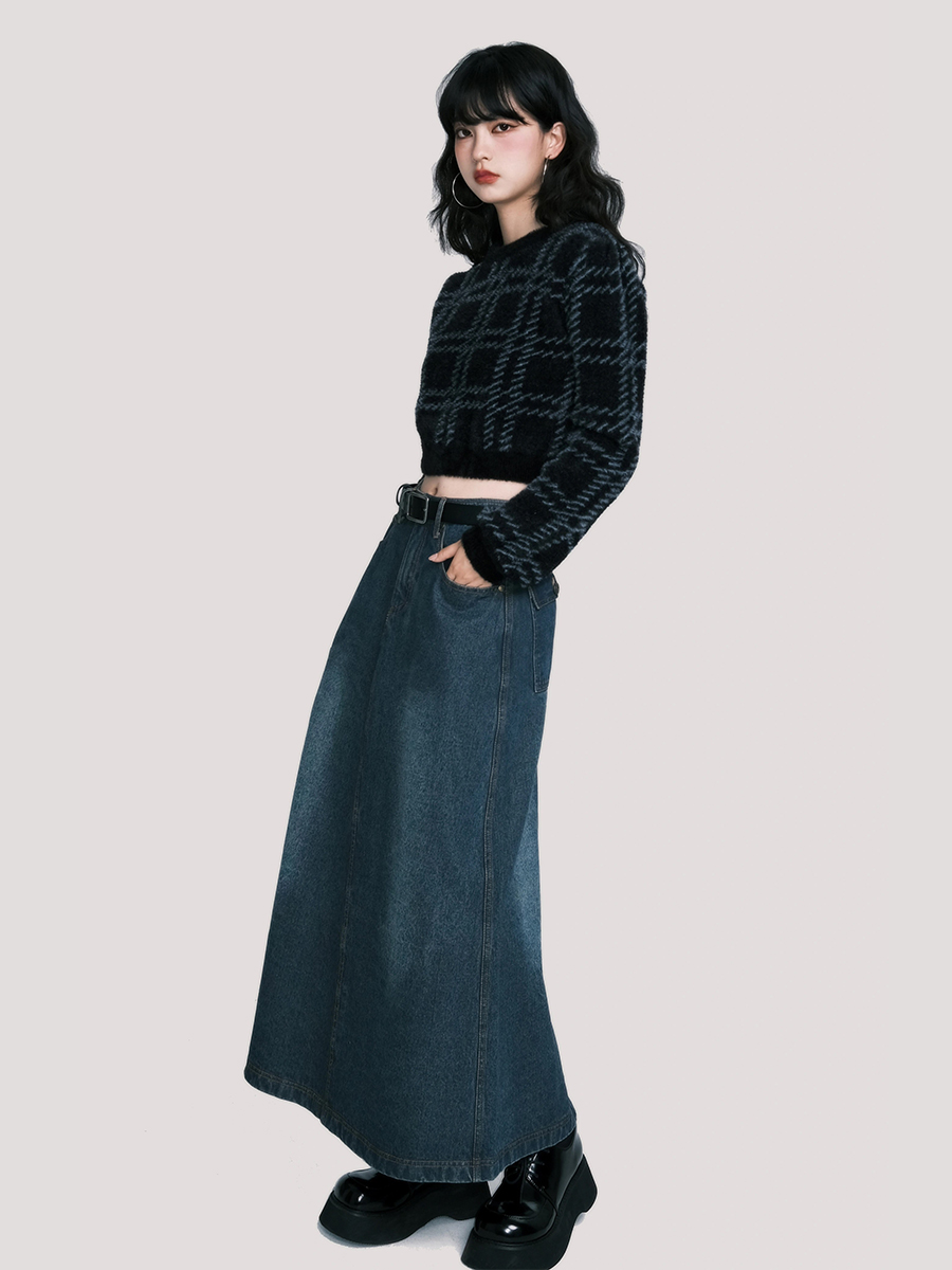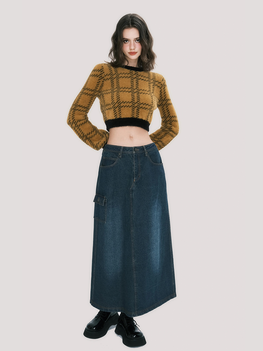 Plaid Faux Mink Sweater - American Retro