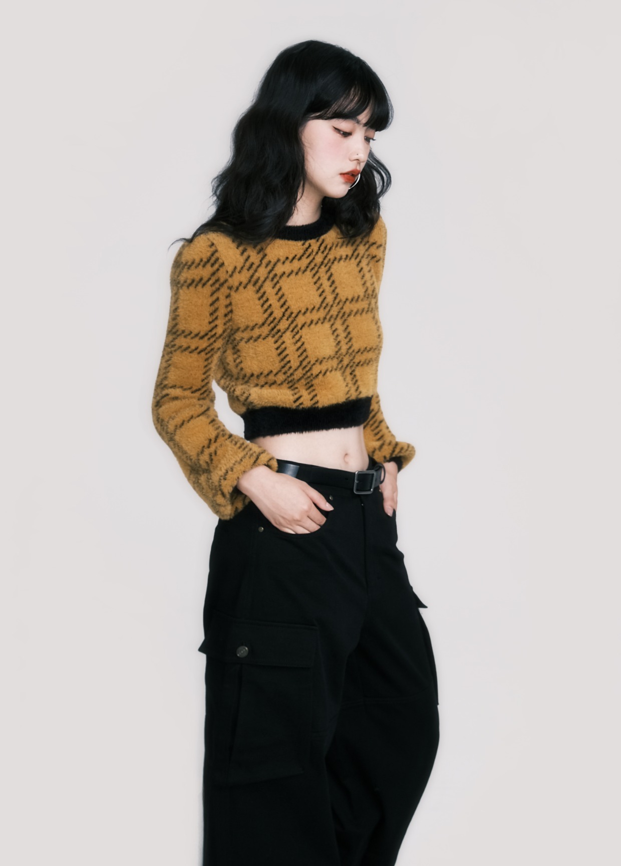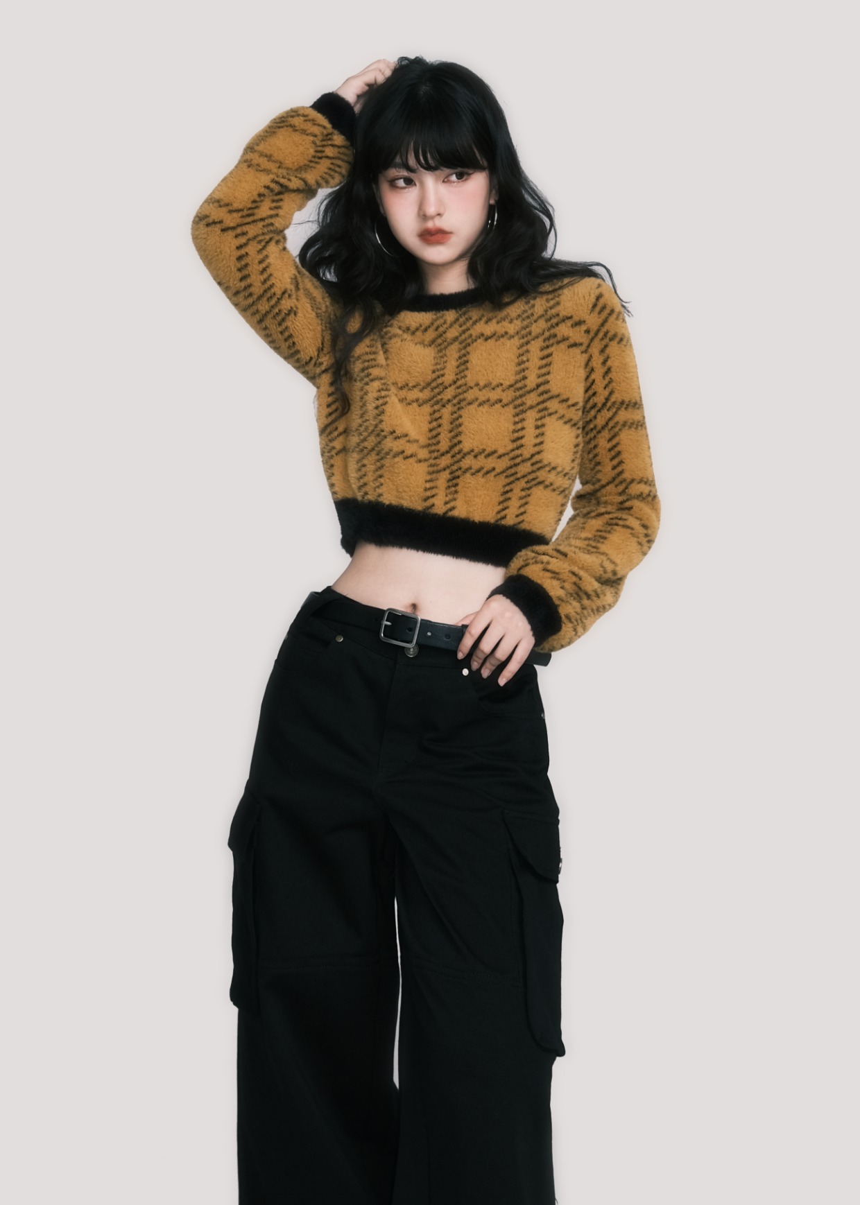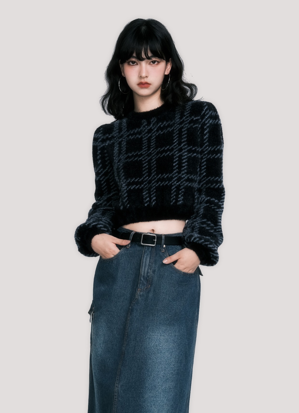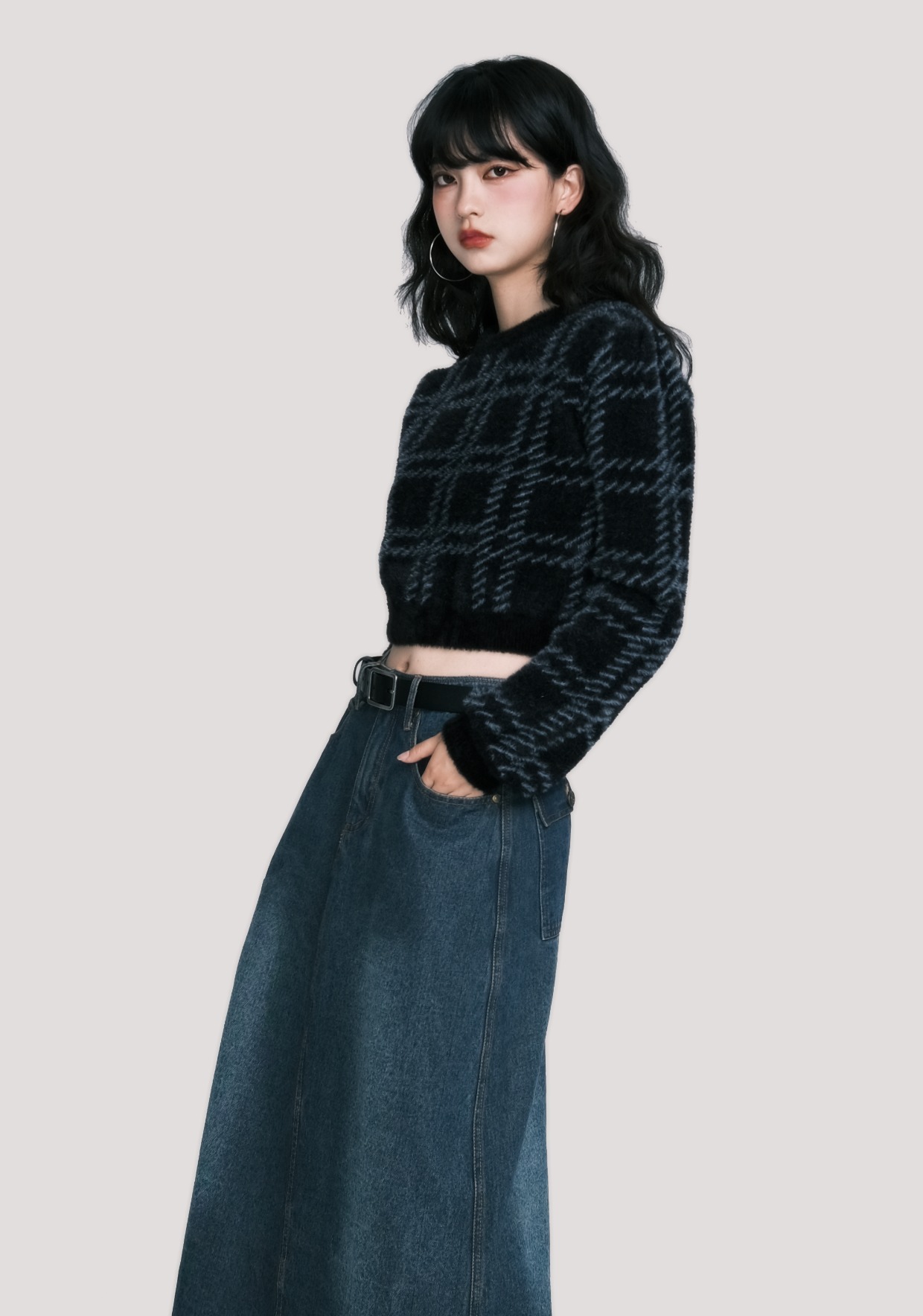 Plaid Faux Mink Sweater - American Retro