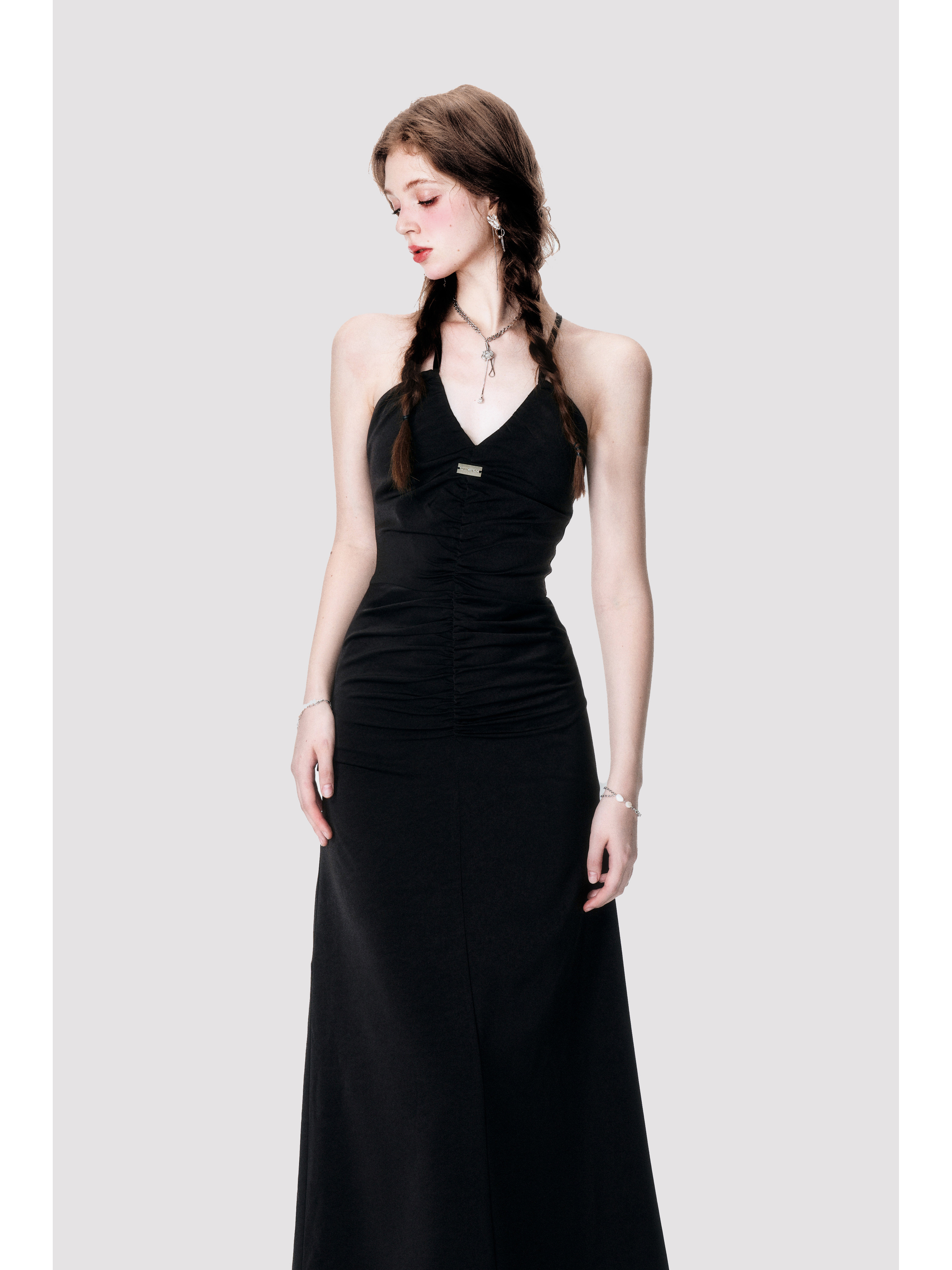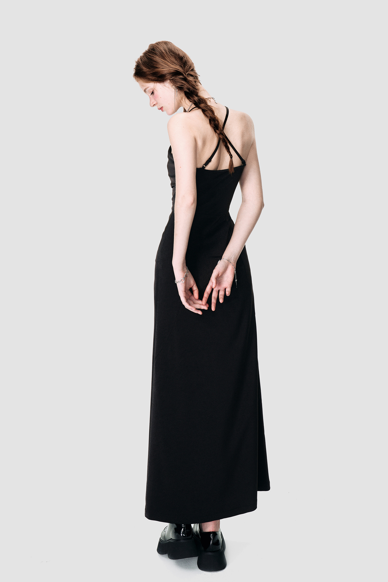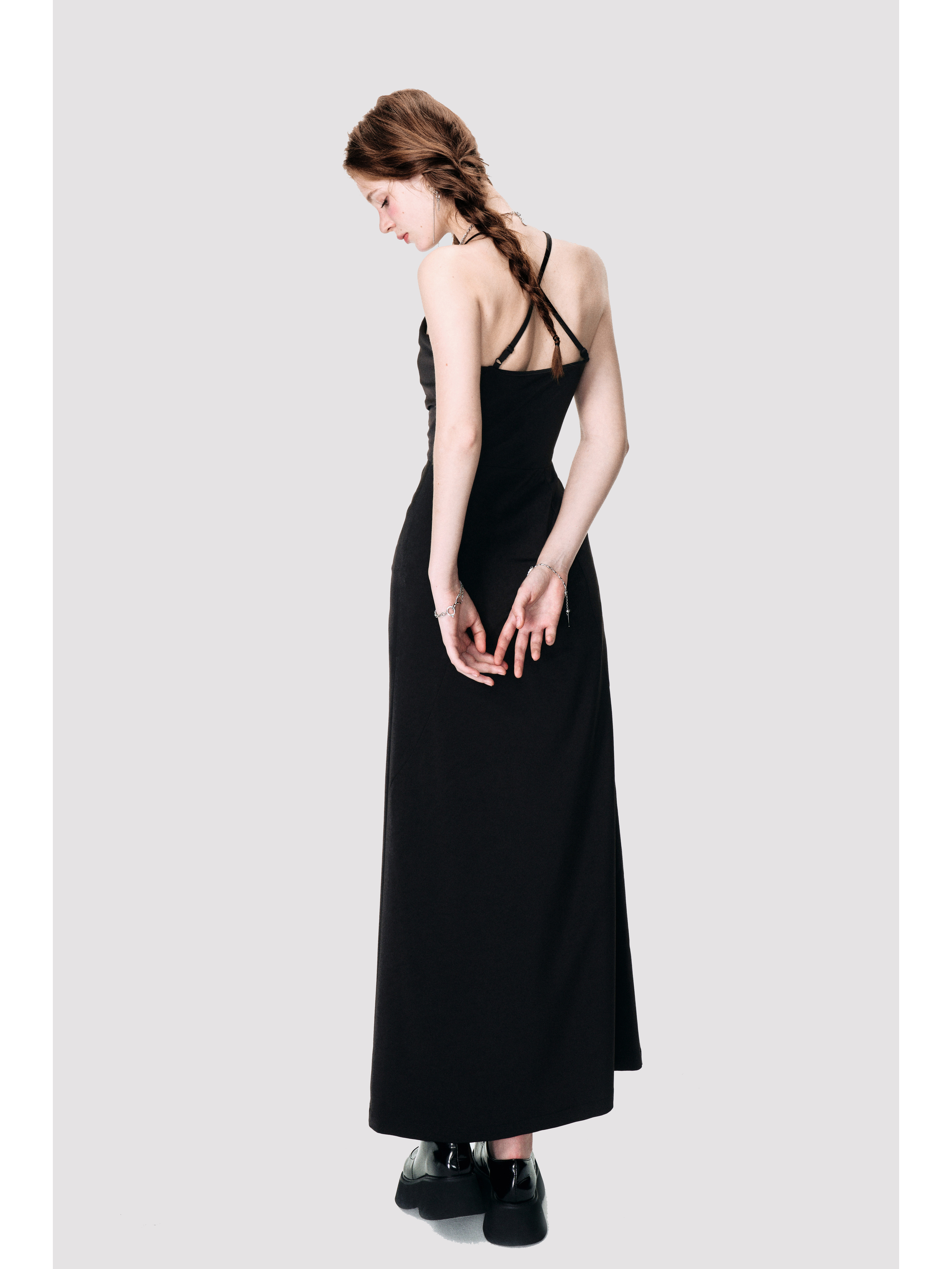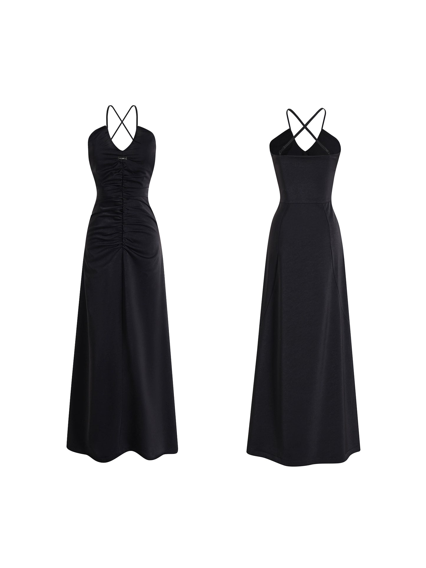 Black Satin Cross Neck Dress - Annie Ball