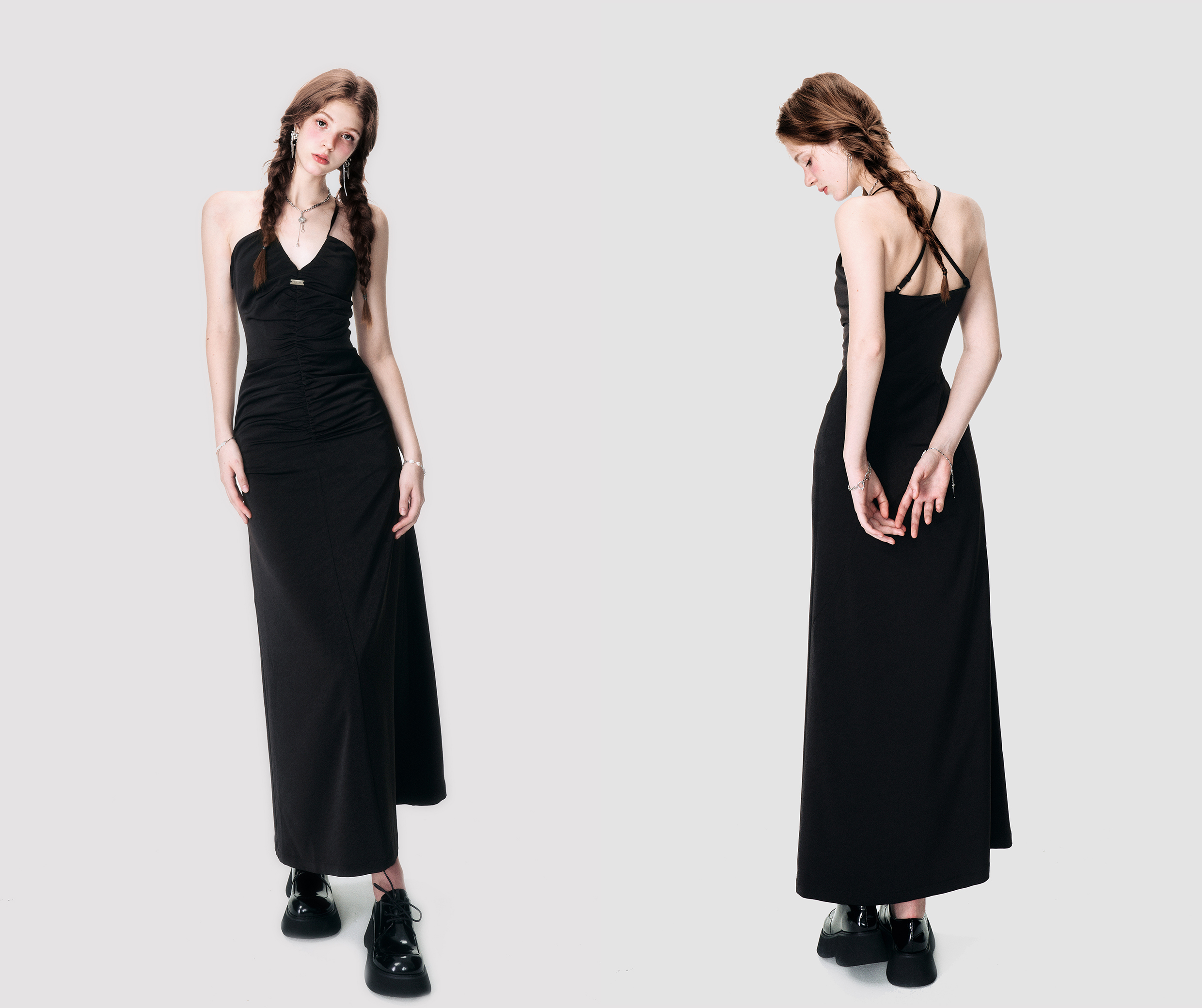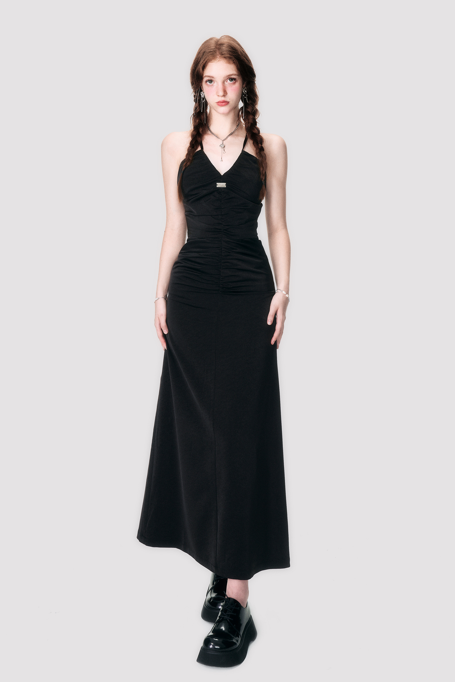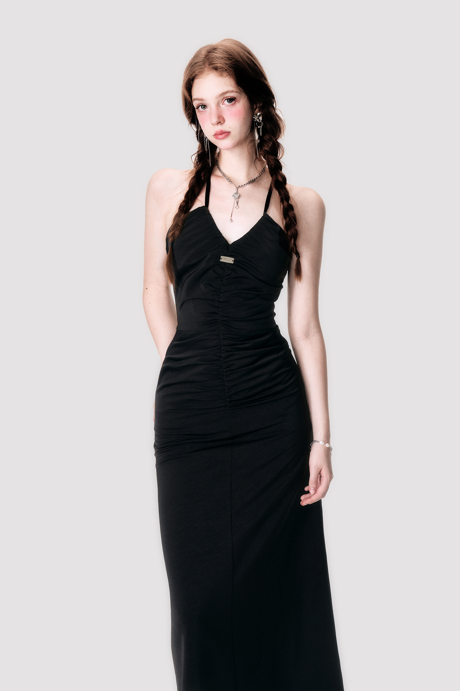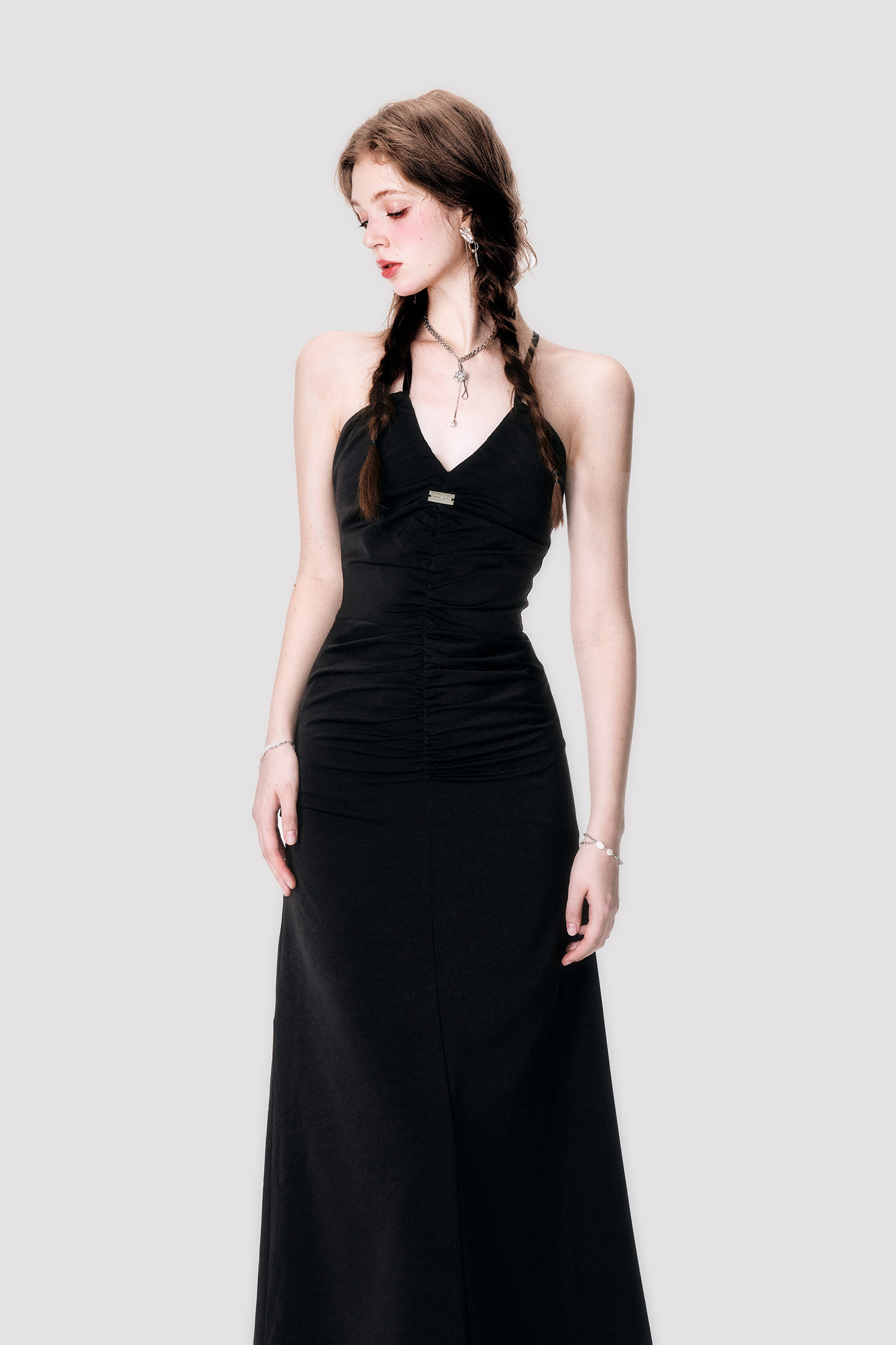 Black Satin Cross Neck Dress - Annie Ball