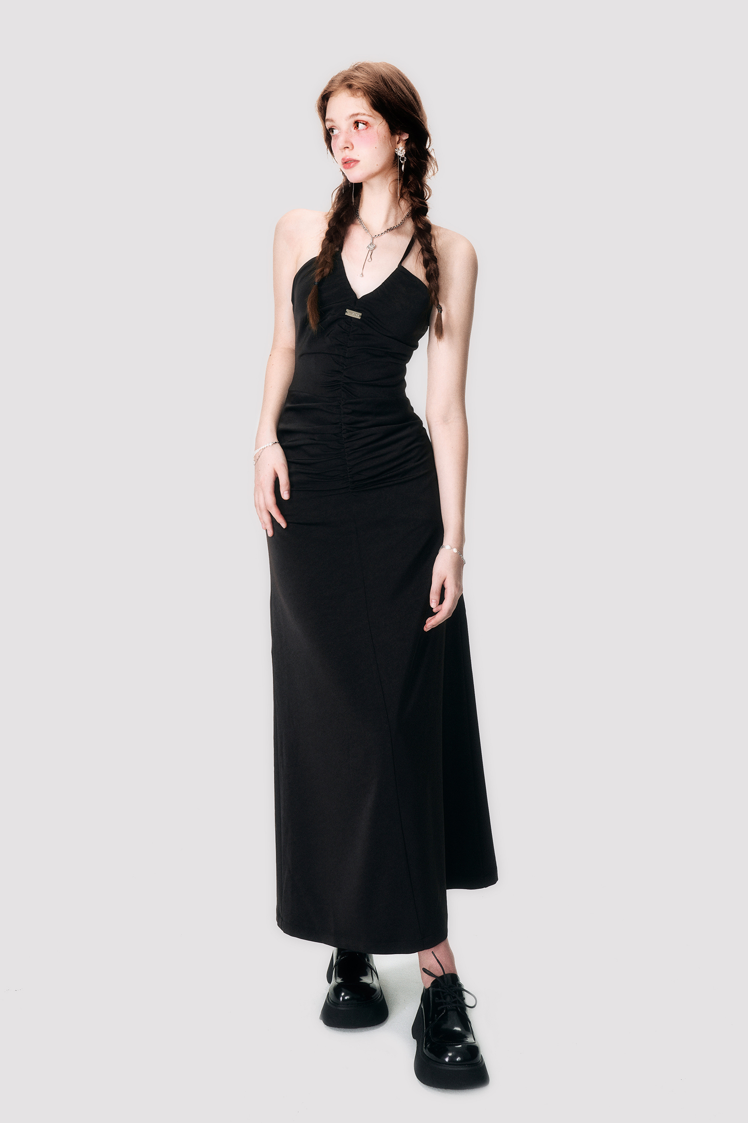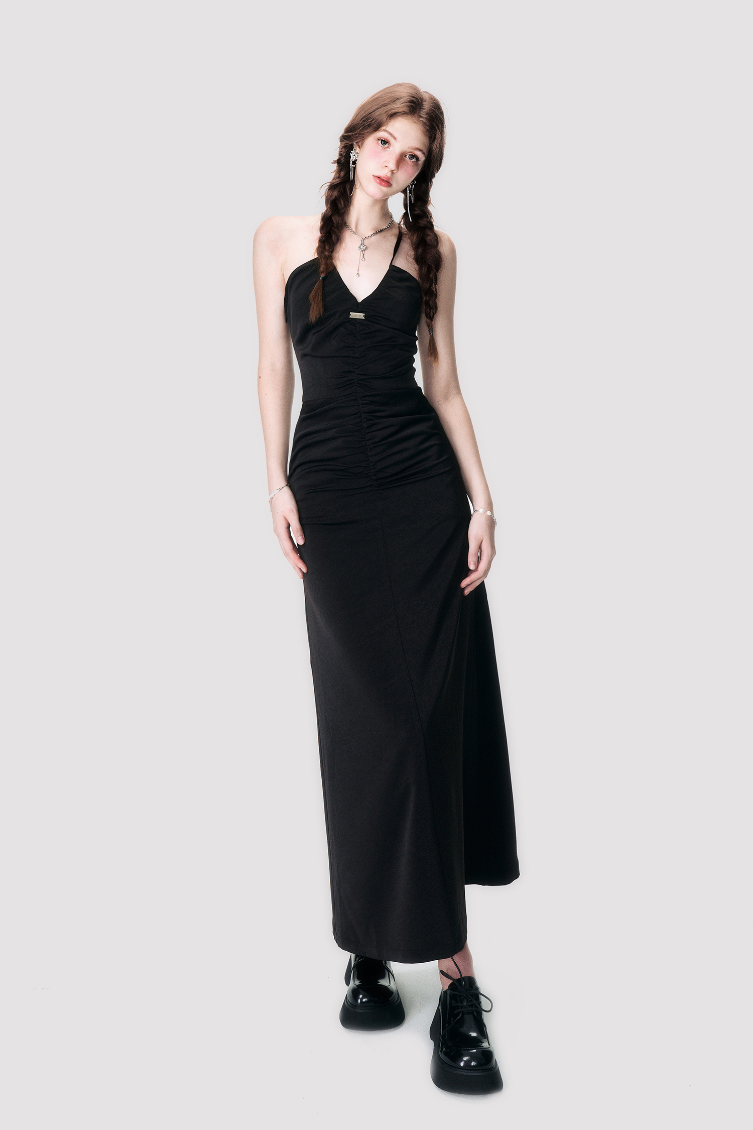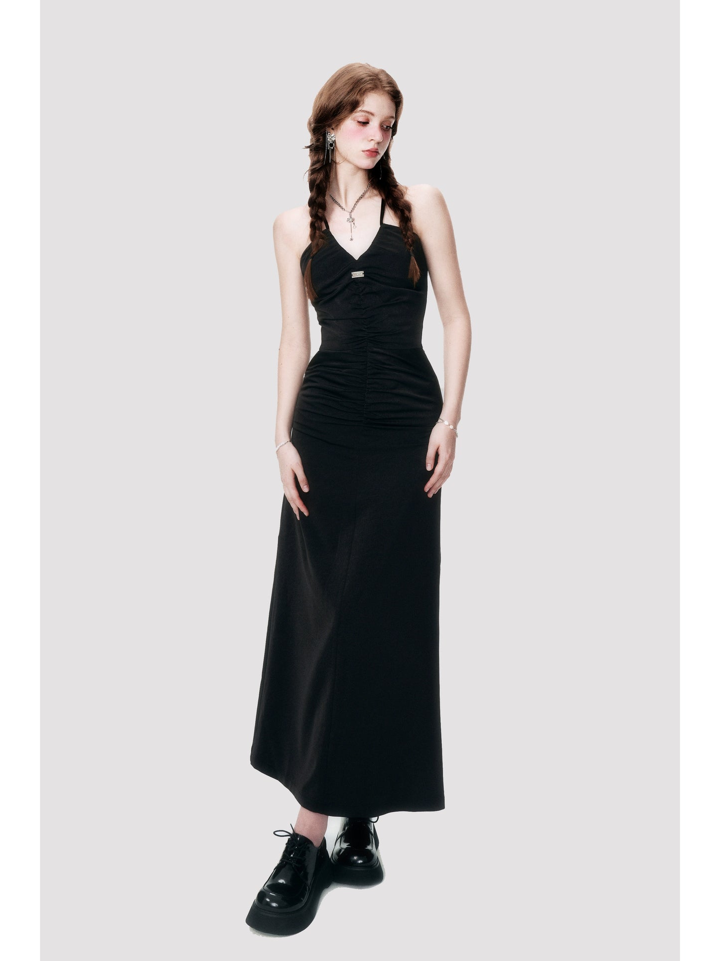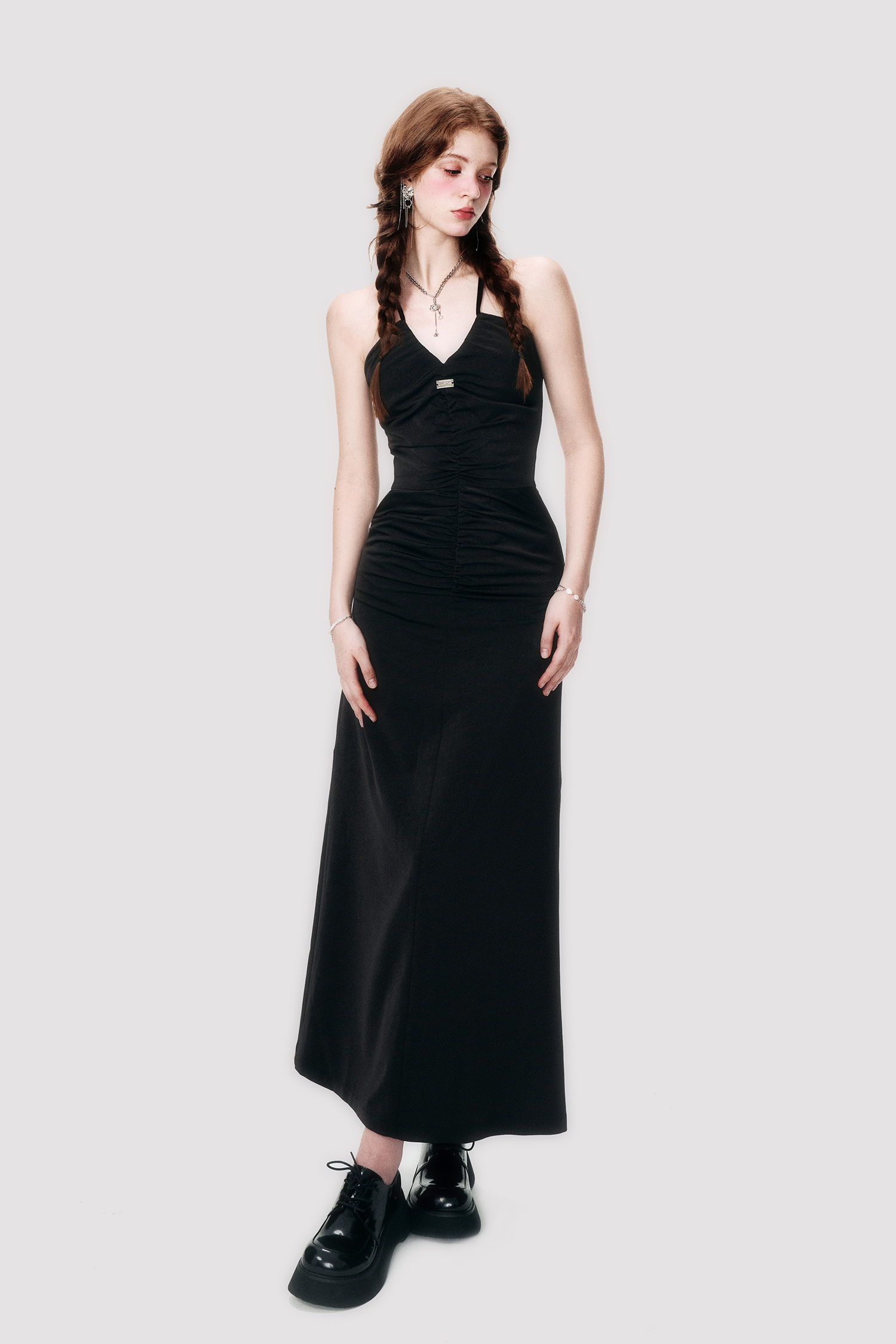 Black Satin Cross Neck Dress - Annie Ball