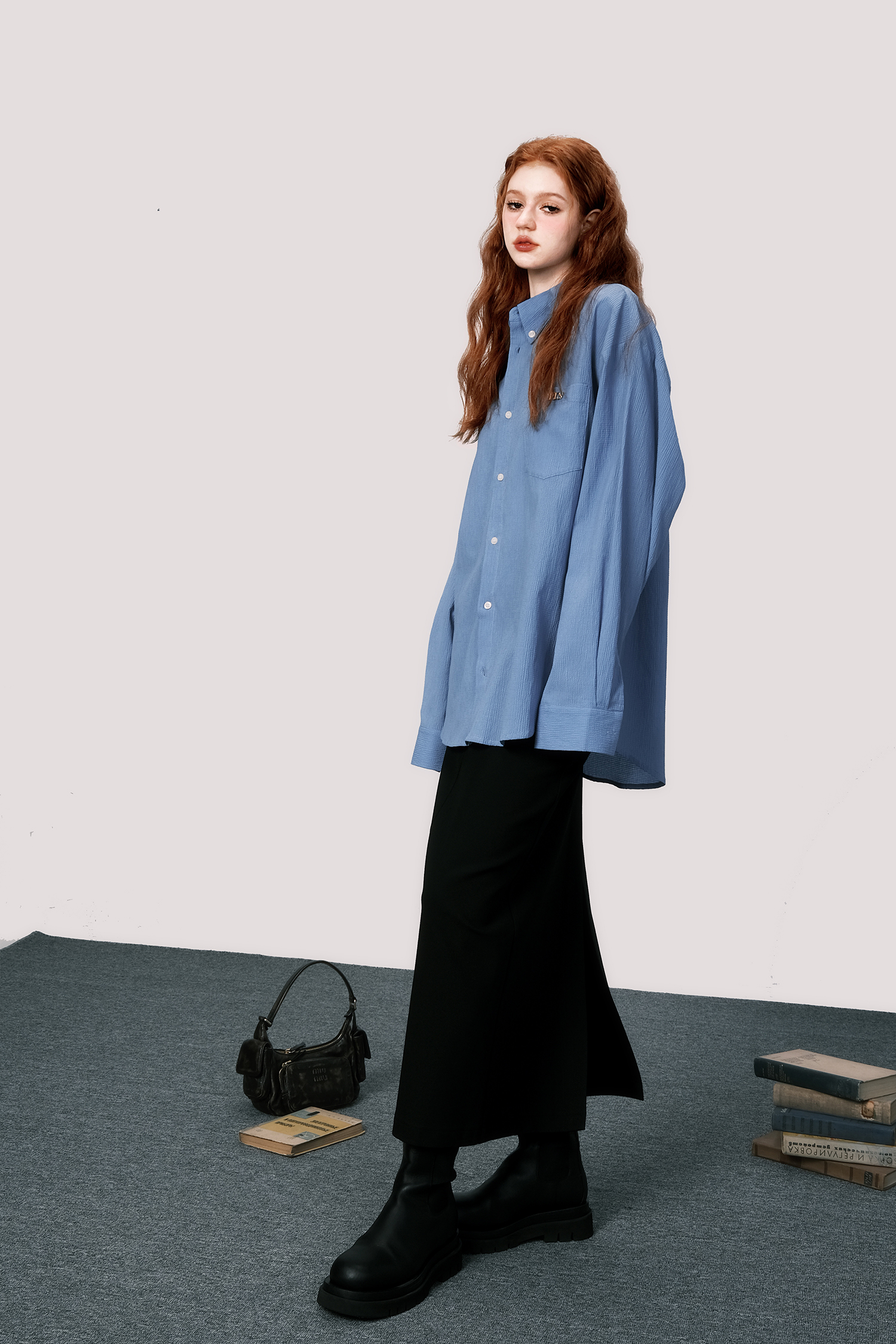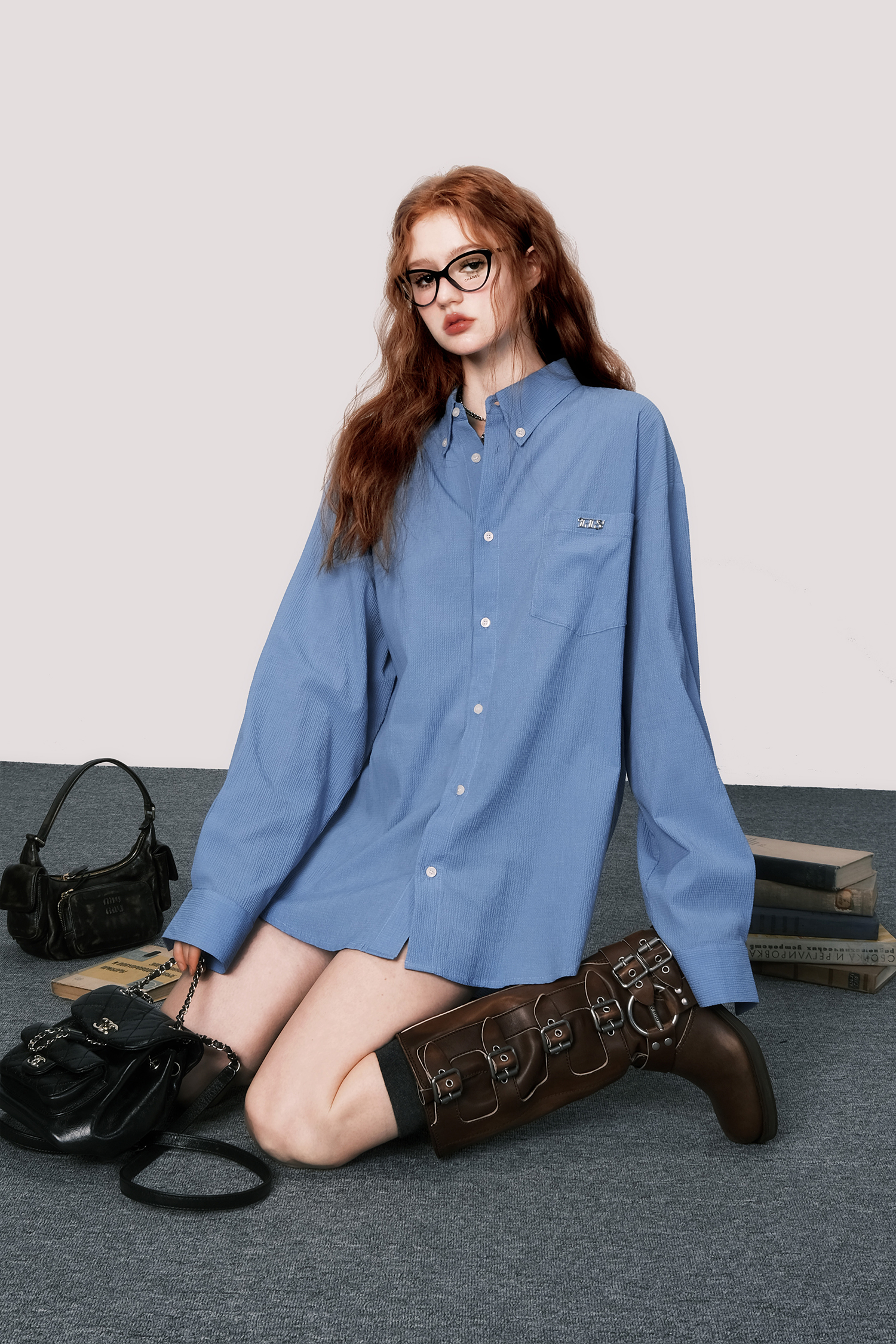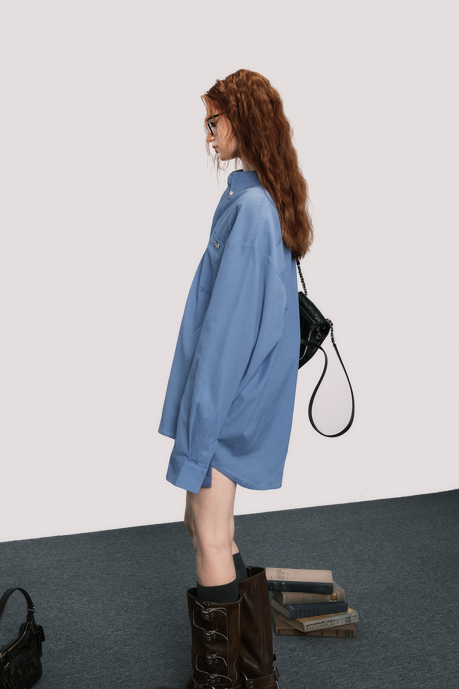 Bubble Cotton Boyfriend Style Shirt - Blue