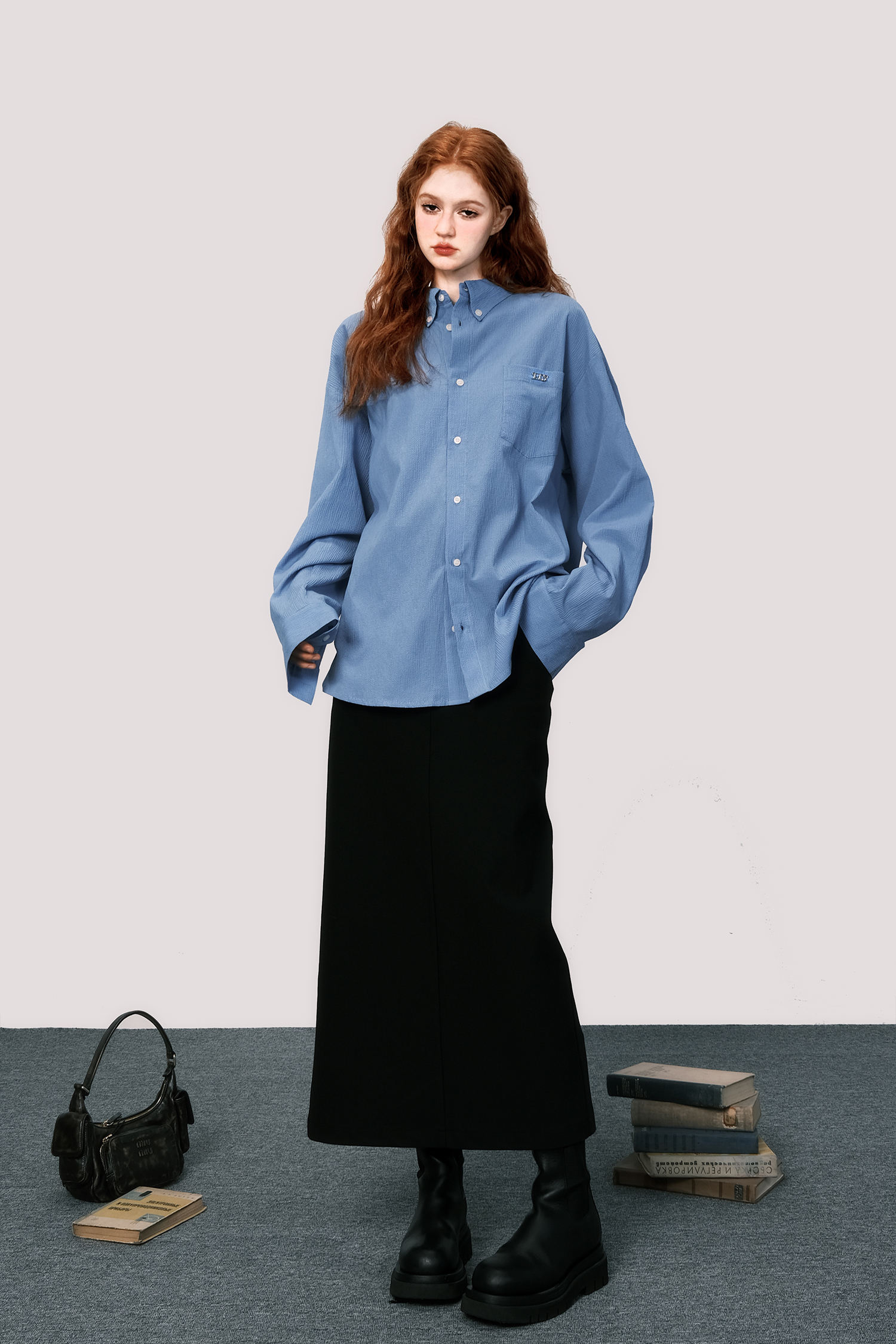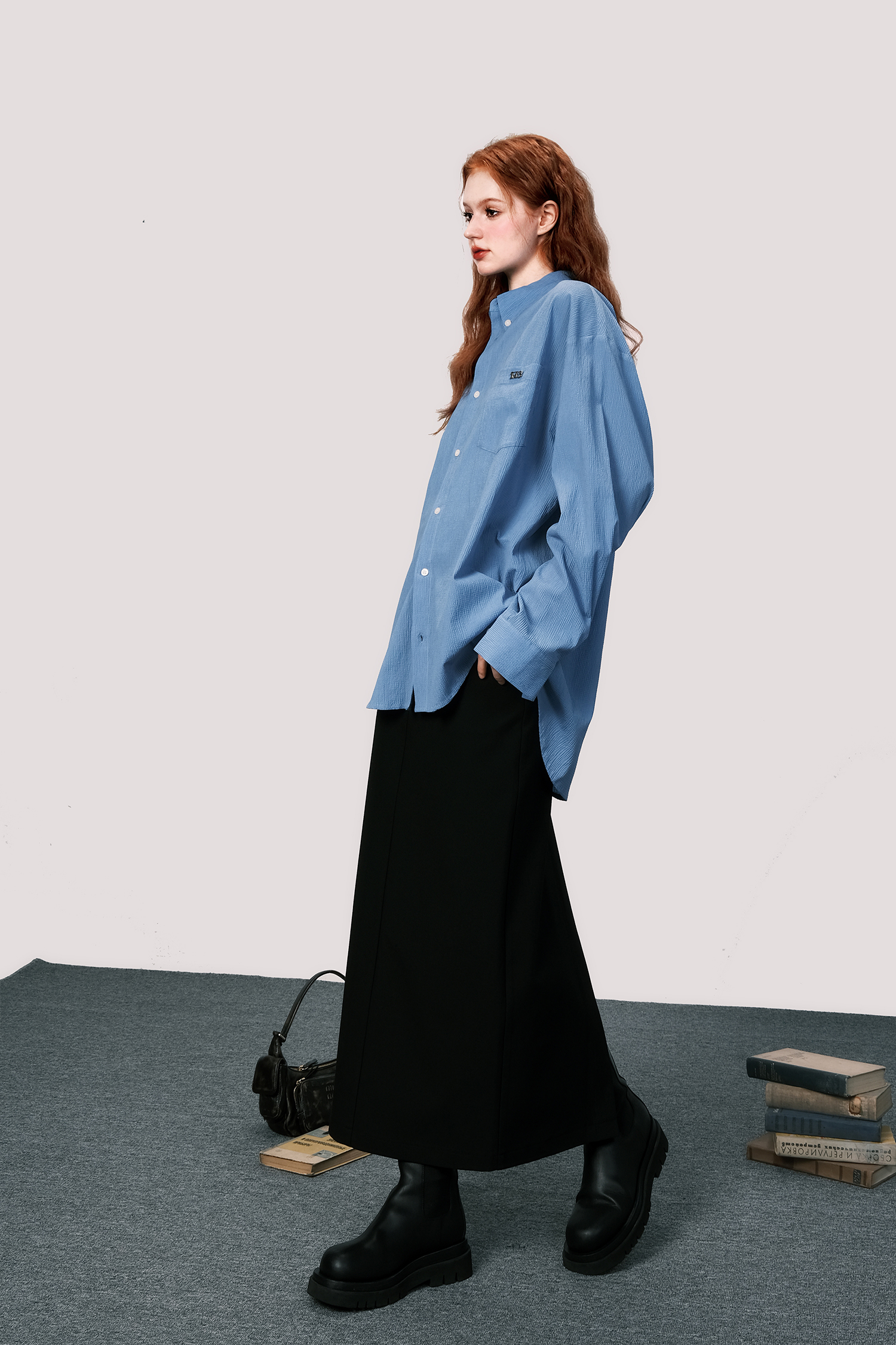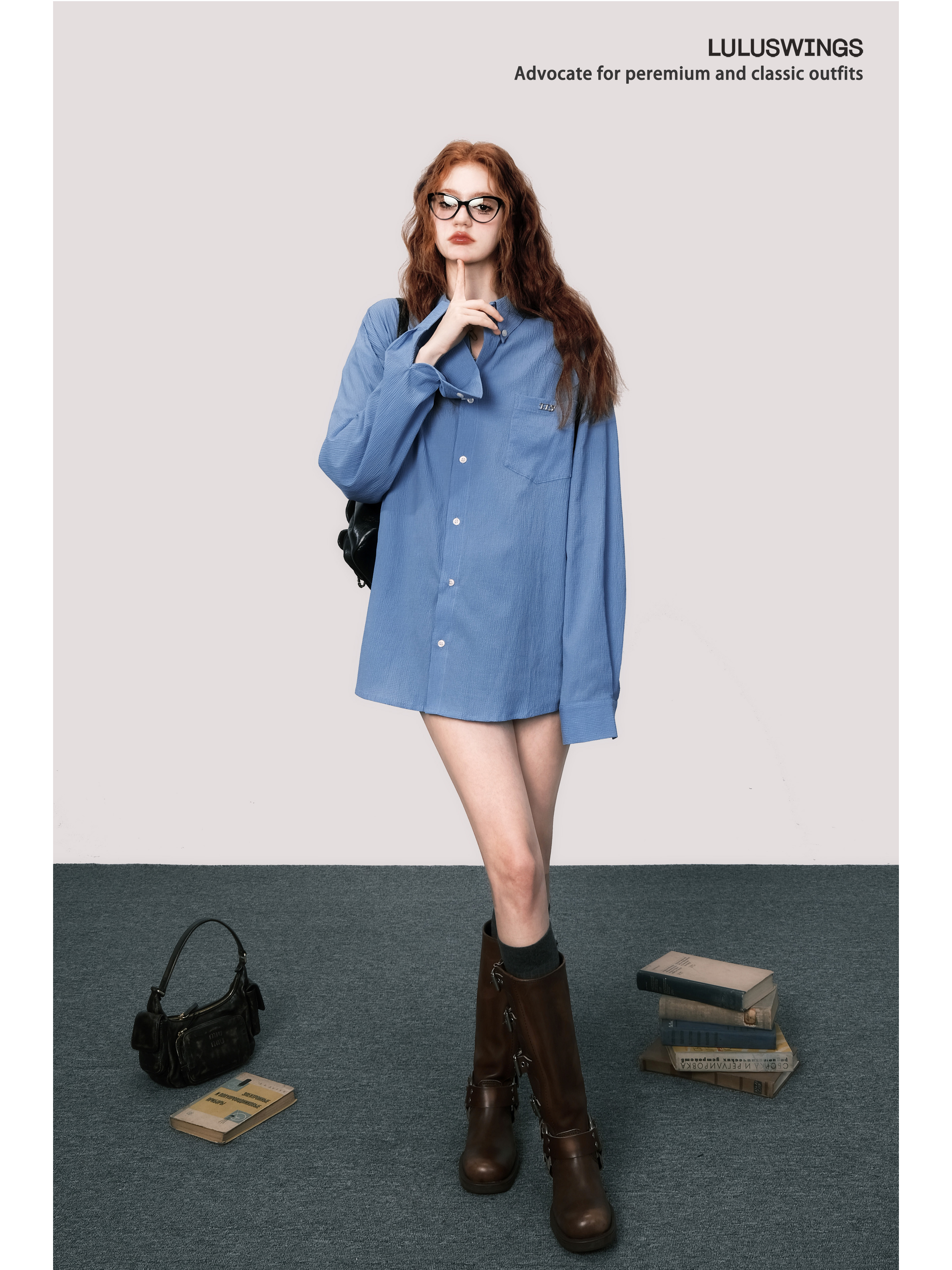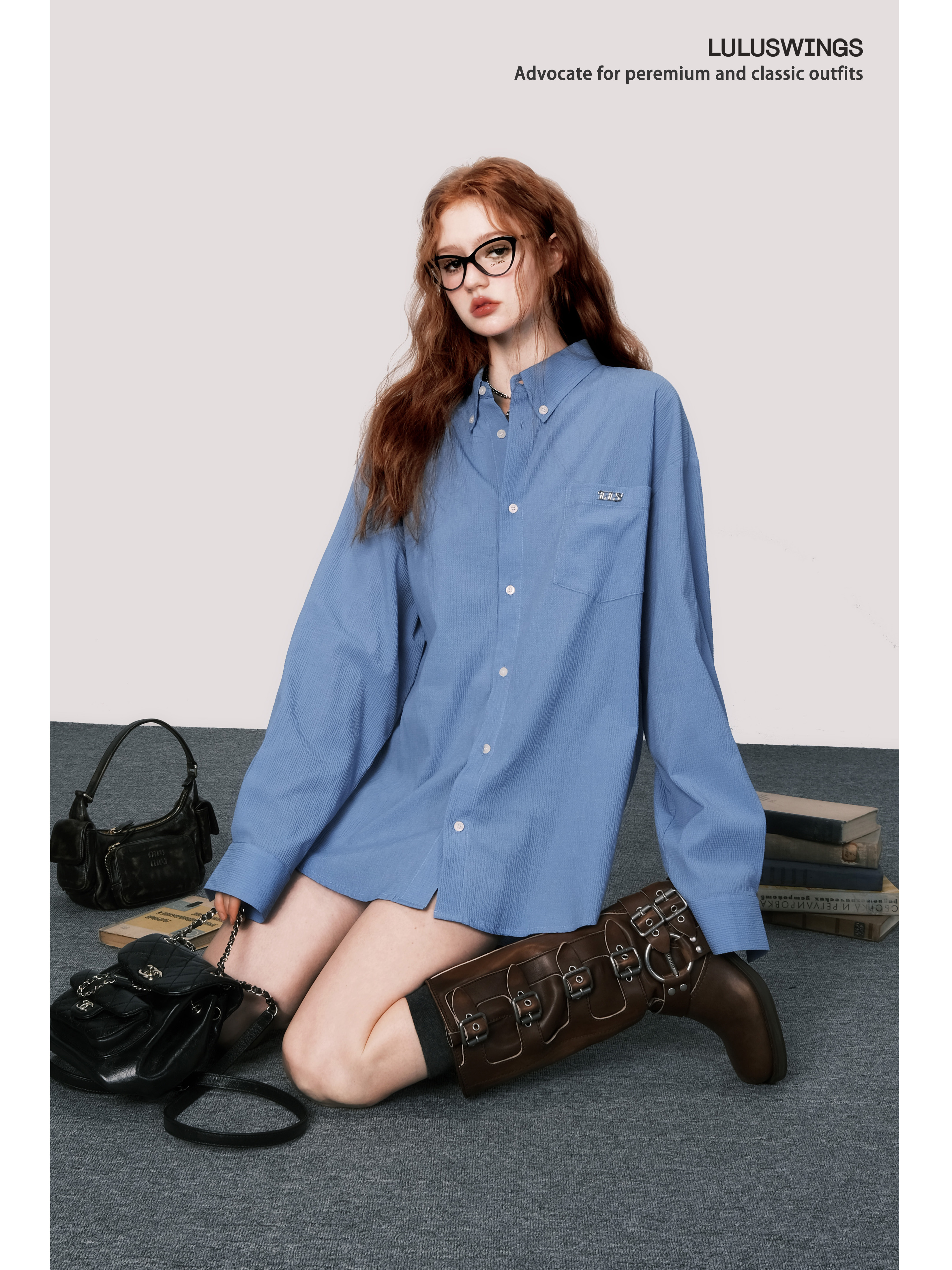 Bubble Cotton Boyfriend Style Shirt - Blue