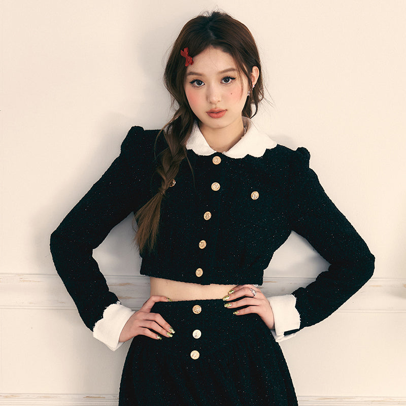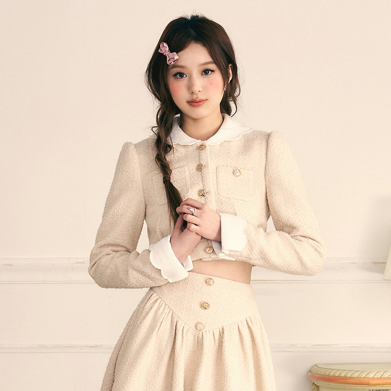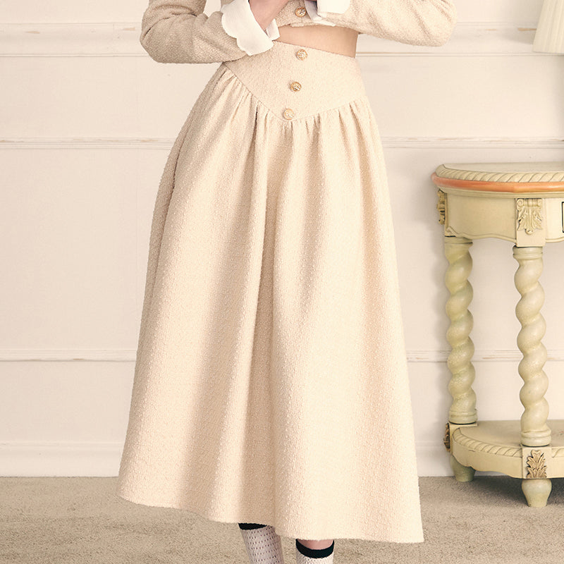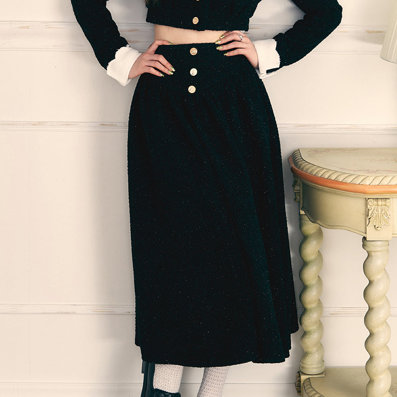 Gold Button Coat & Long Skirt Set