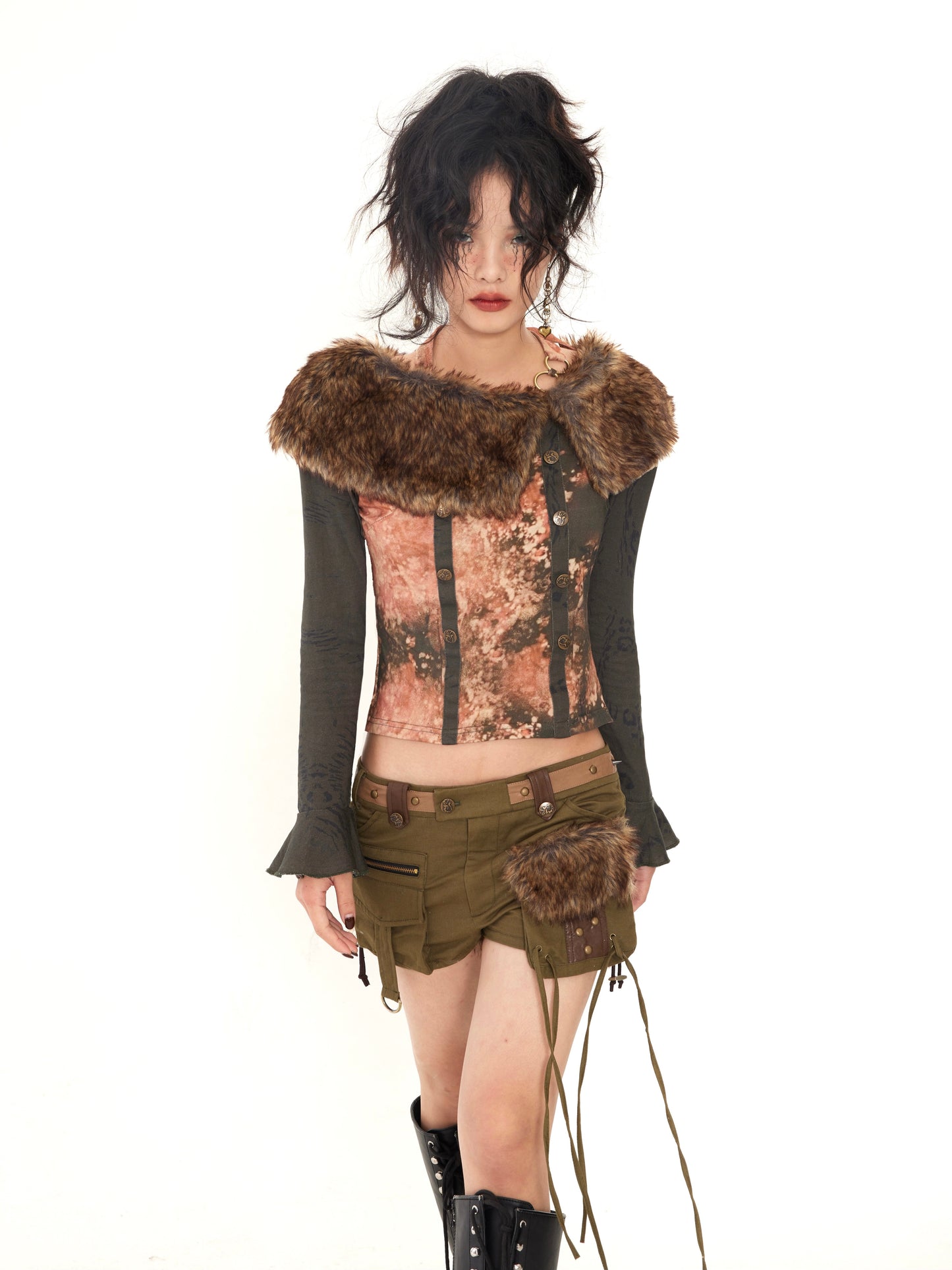 Printed Fleece Neck Hanging Neck Slim Fit Top