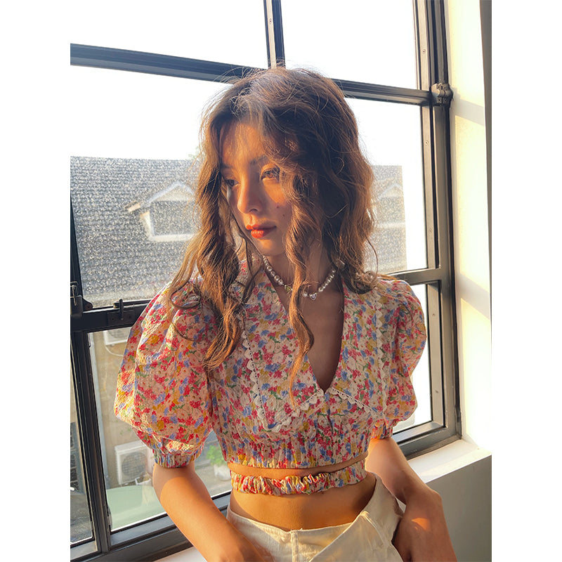 French Lace Bubble Sleeve Shirt