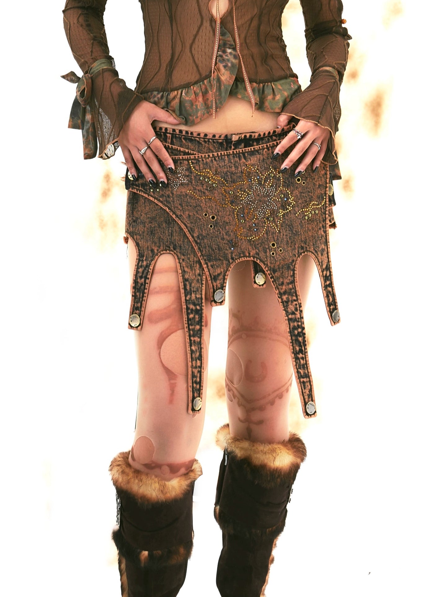 Raw Edge Denim Skirt Shorts