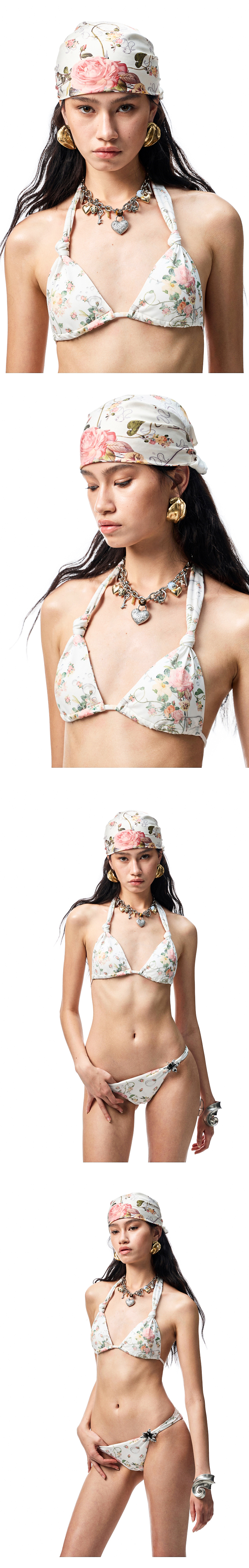 Floral Satin Square Neck Headscarf – Vintage Soft Silk Scarf