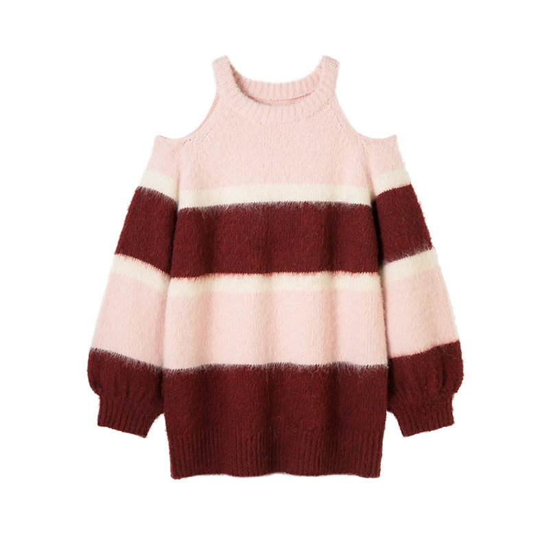 Pink version sweater: white/pink yarn: acrylic 63.9% nylon 25.6%sheep wool 9.4% spandex 1.1%