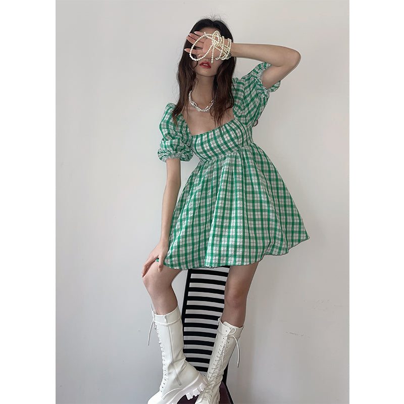 Bubble Sleeve Square Neck Dress