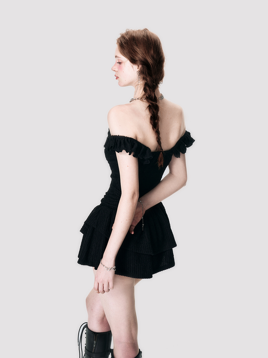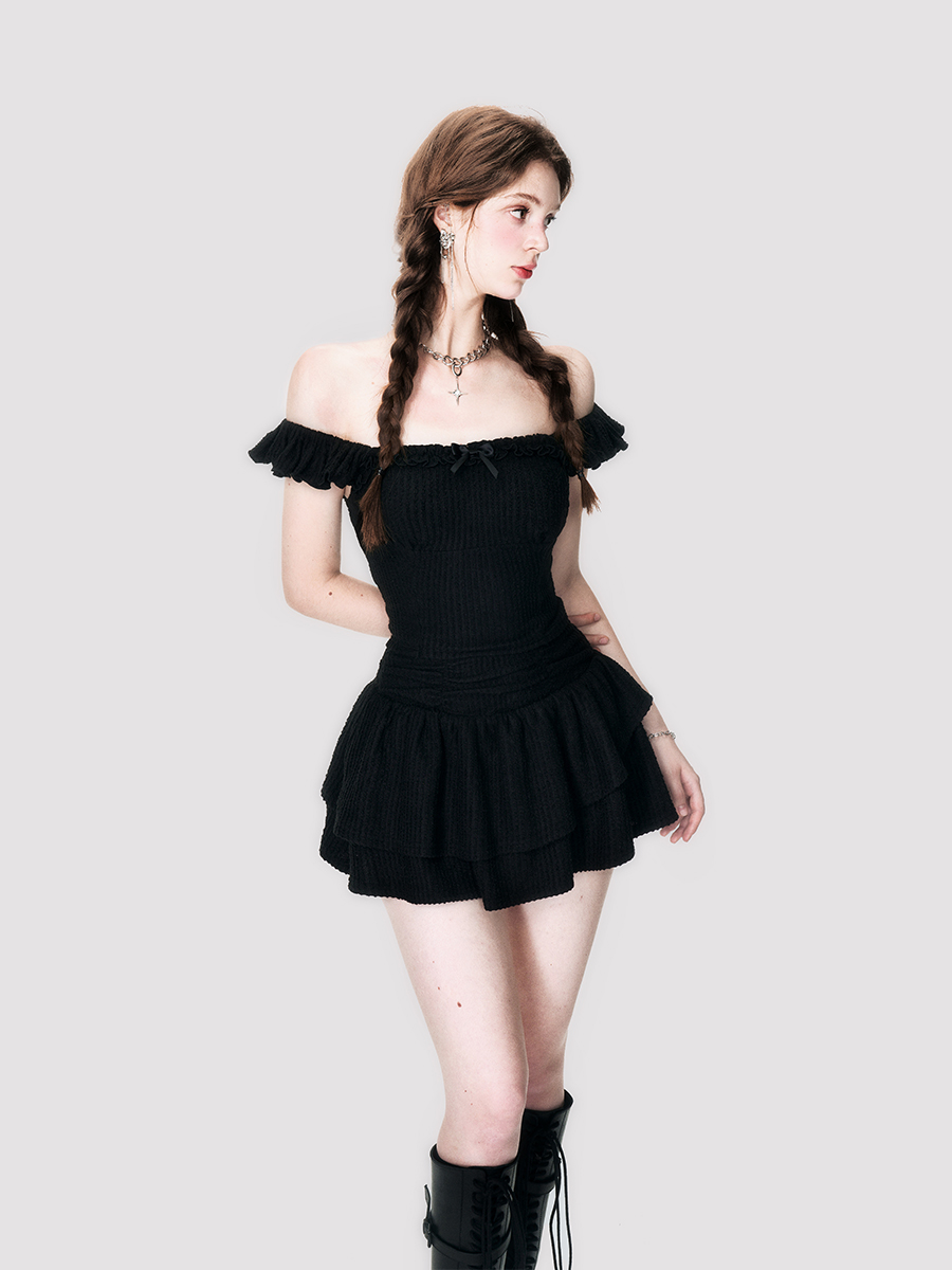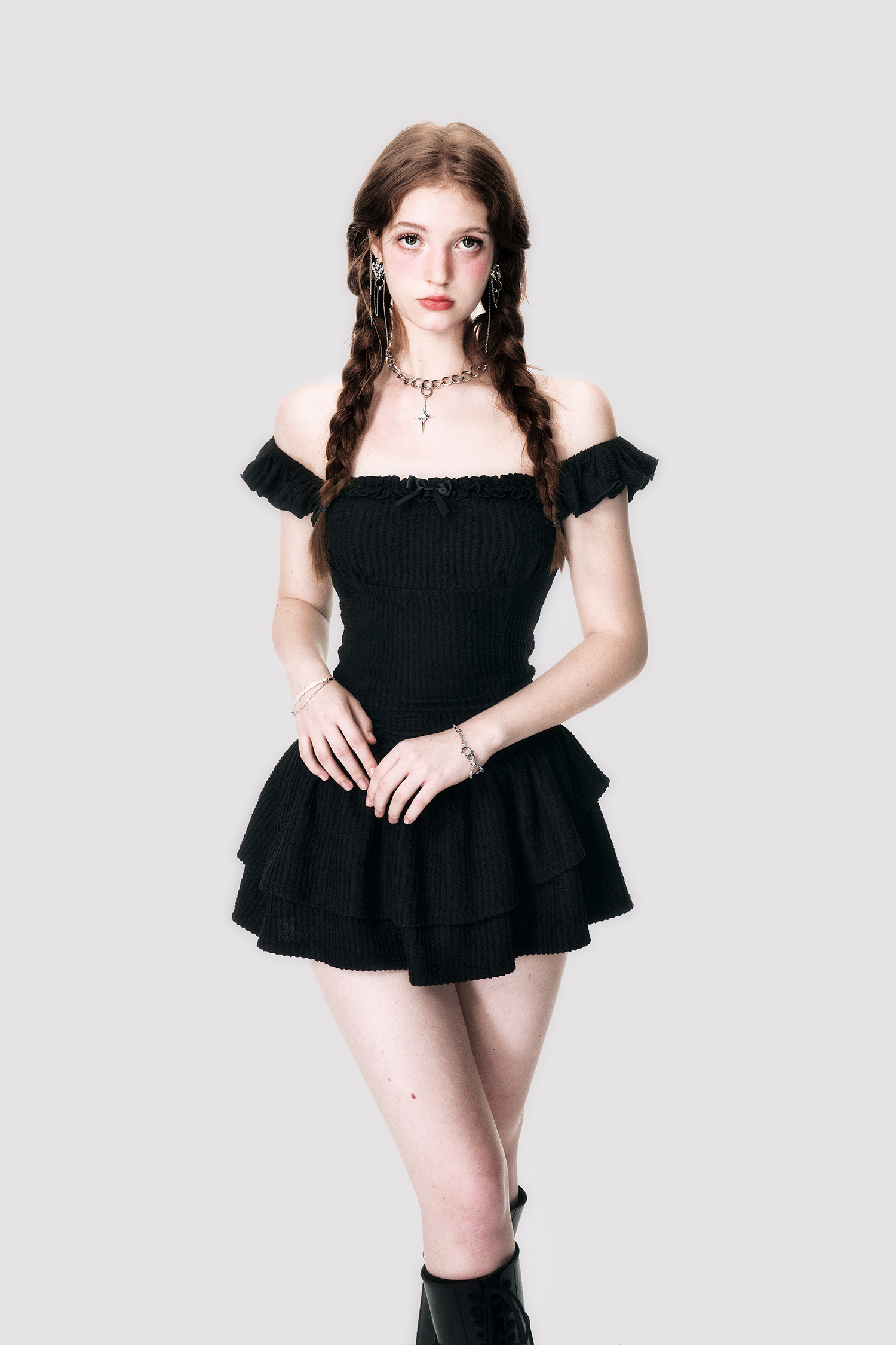 Knitted Off-Shoulder Set Skirt - Sweet and Spicy