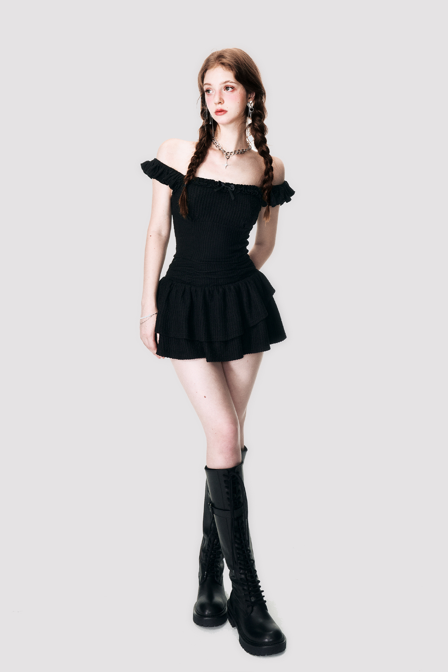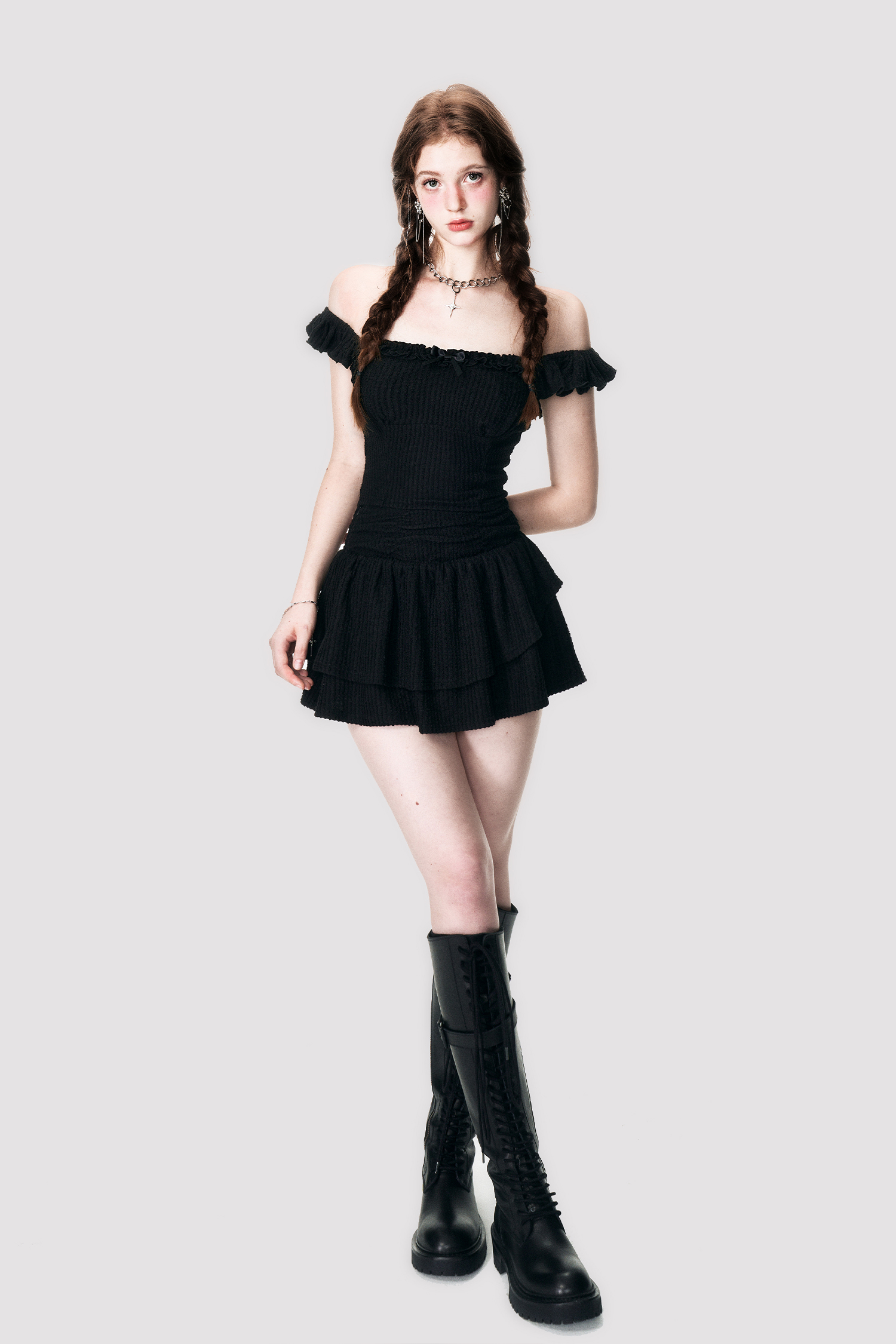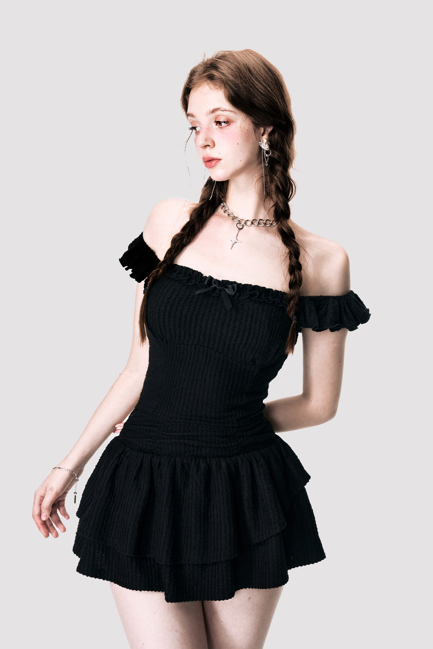 Knitted Off-Shoulder Set Skirt - Sweet and Spicy