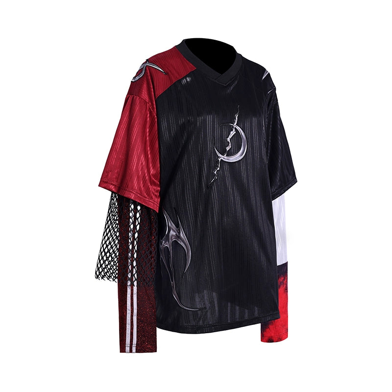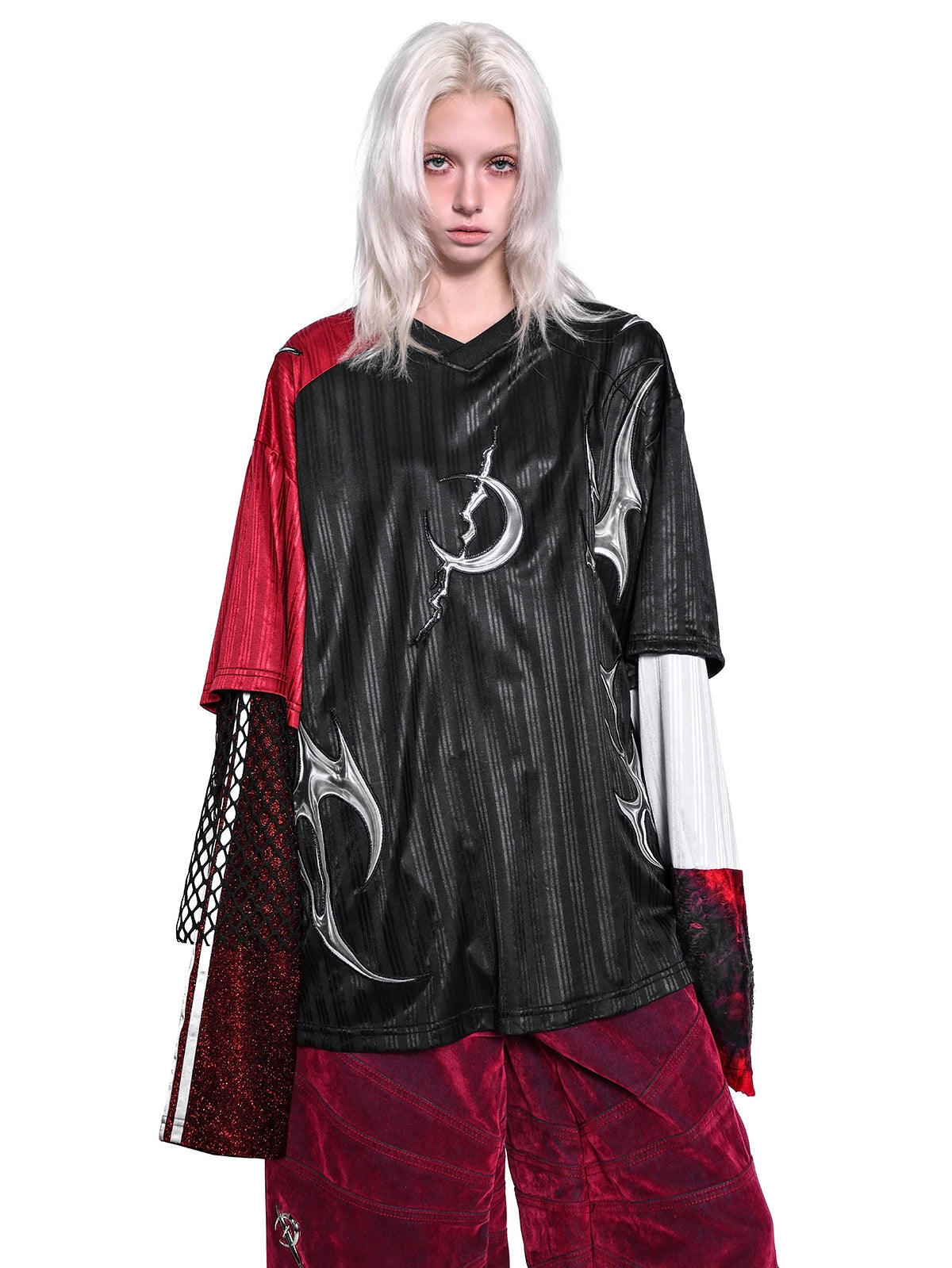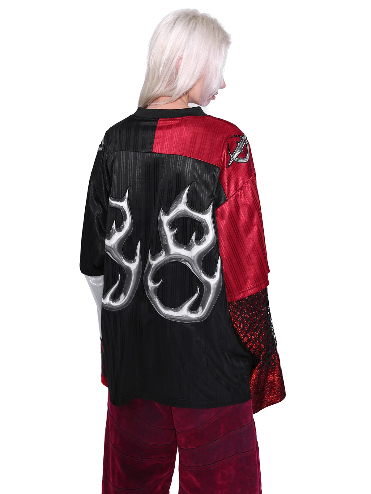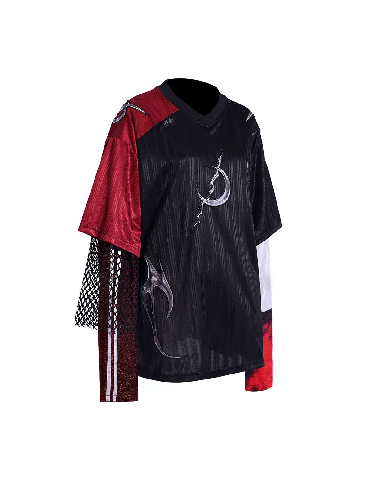 Electric Moon Flame Y3K Mesh Jersey Loose Fit Sweatshirt Tee