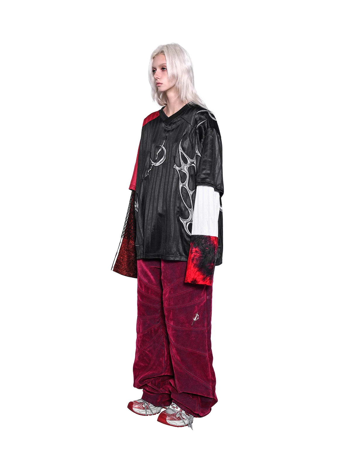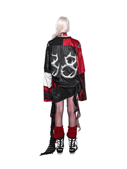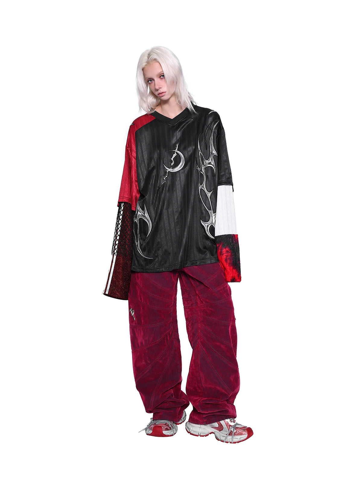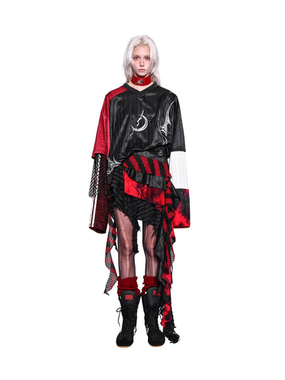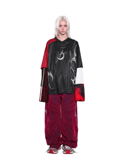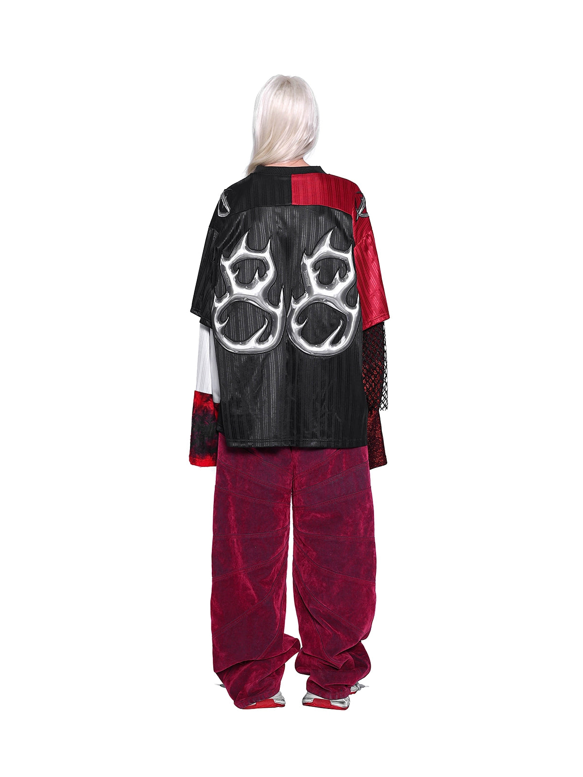 Electric Moon Flame Y3K Mesh Jersey Loose Fit Sweatshirt Tee
