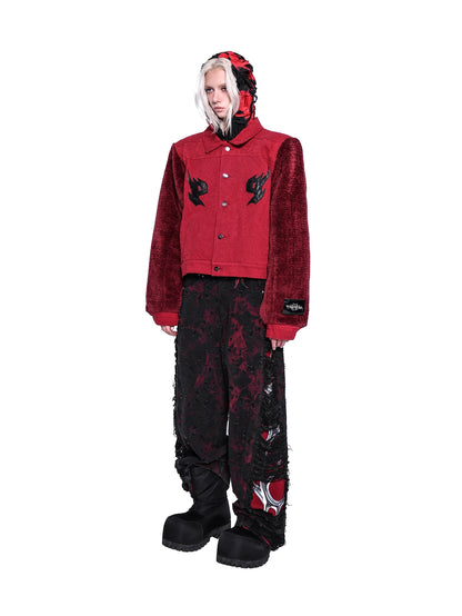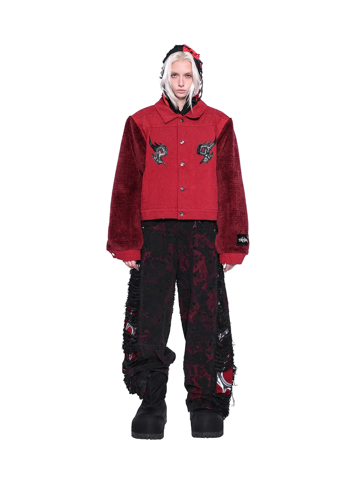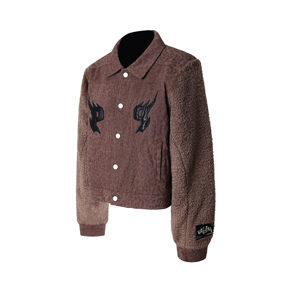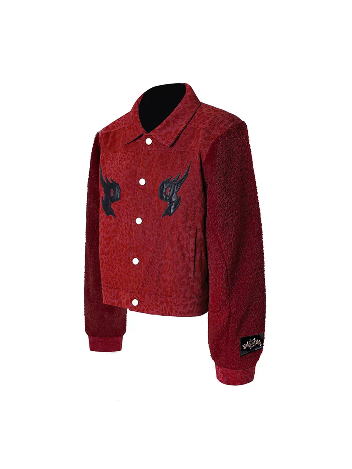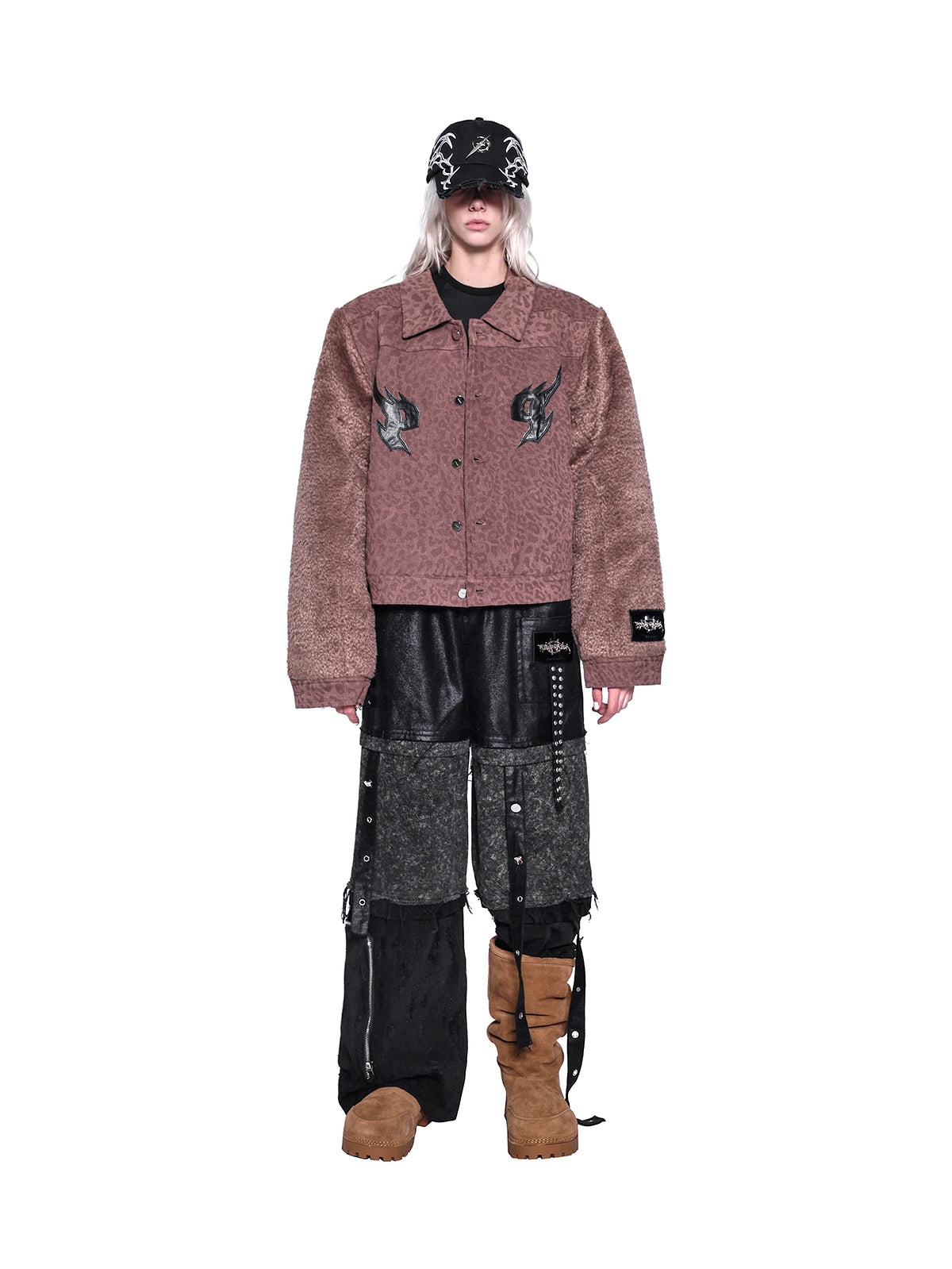 Leopard Panel Cropped Denim Jacket – Flame Leather Embroidered Statement Piece