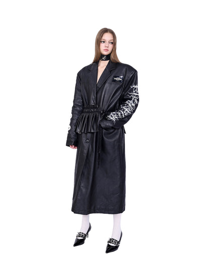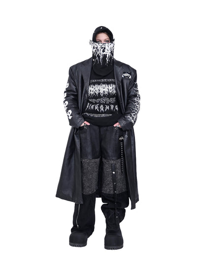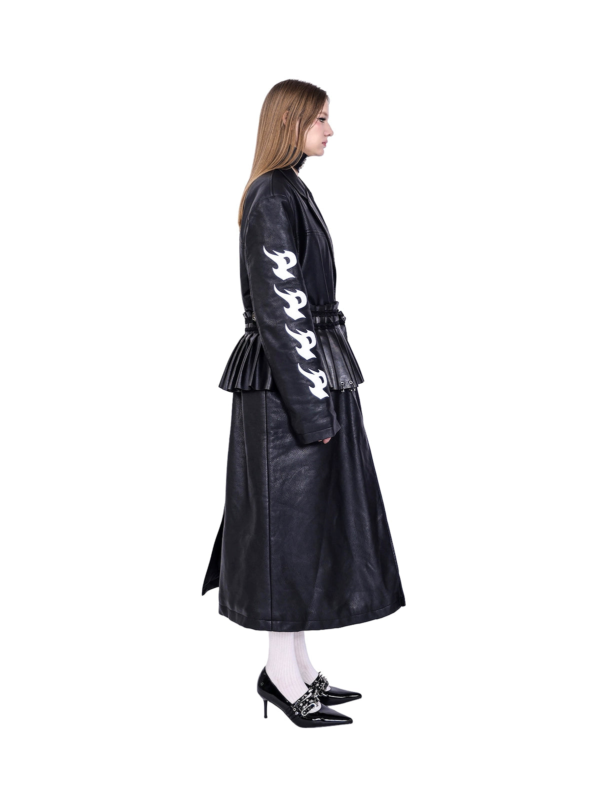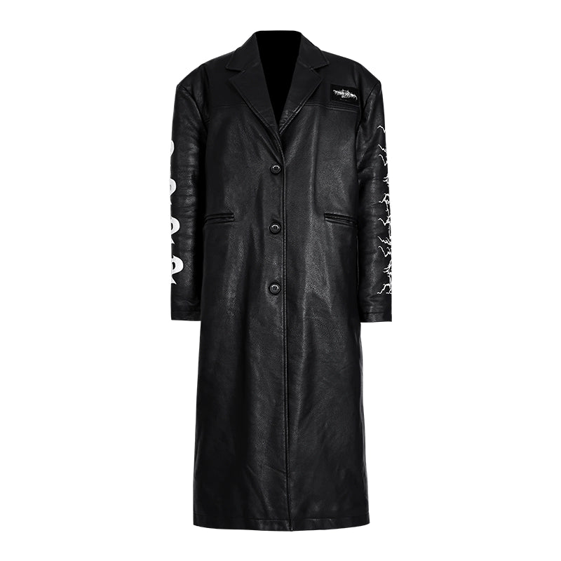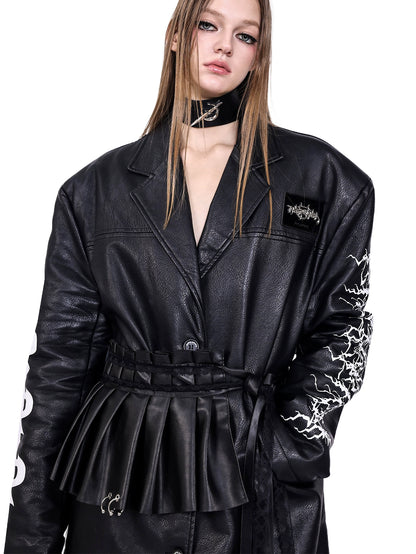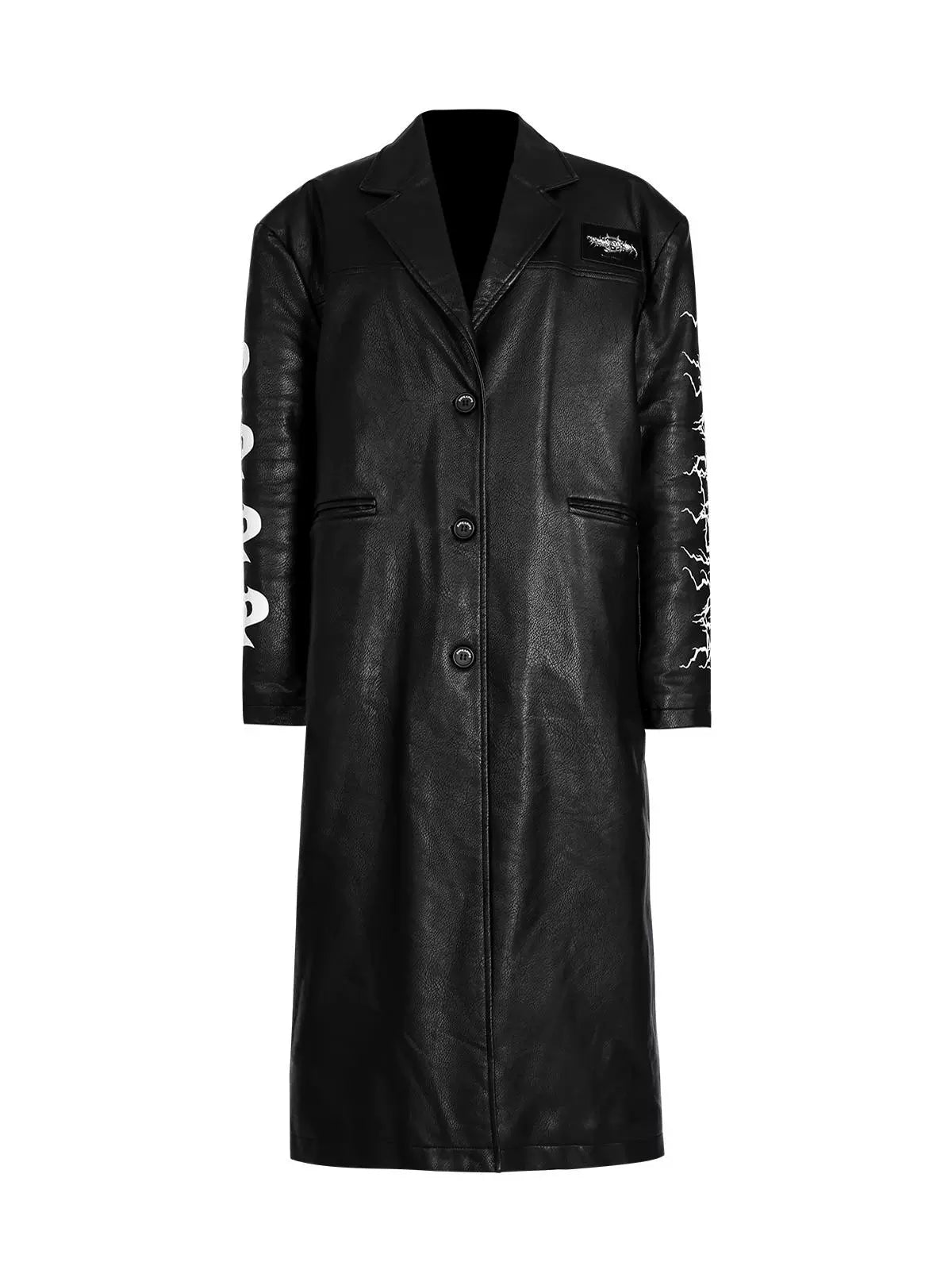 Flame Letter Silhouette Leather Jacket with Warm Lining (Unisex)