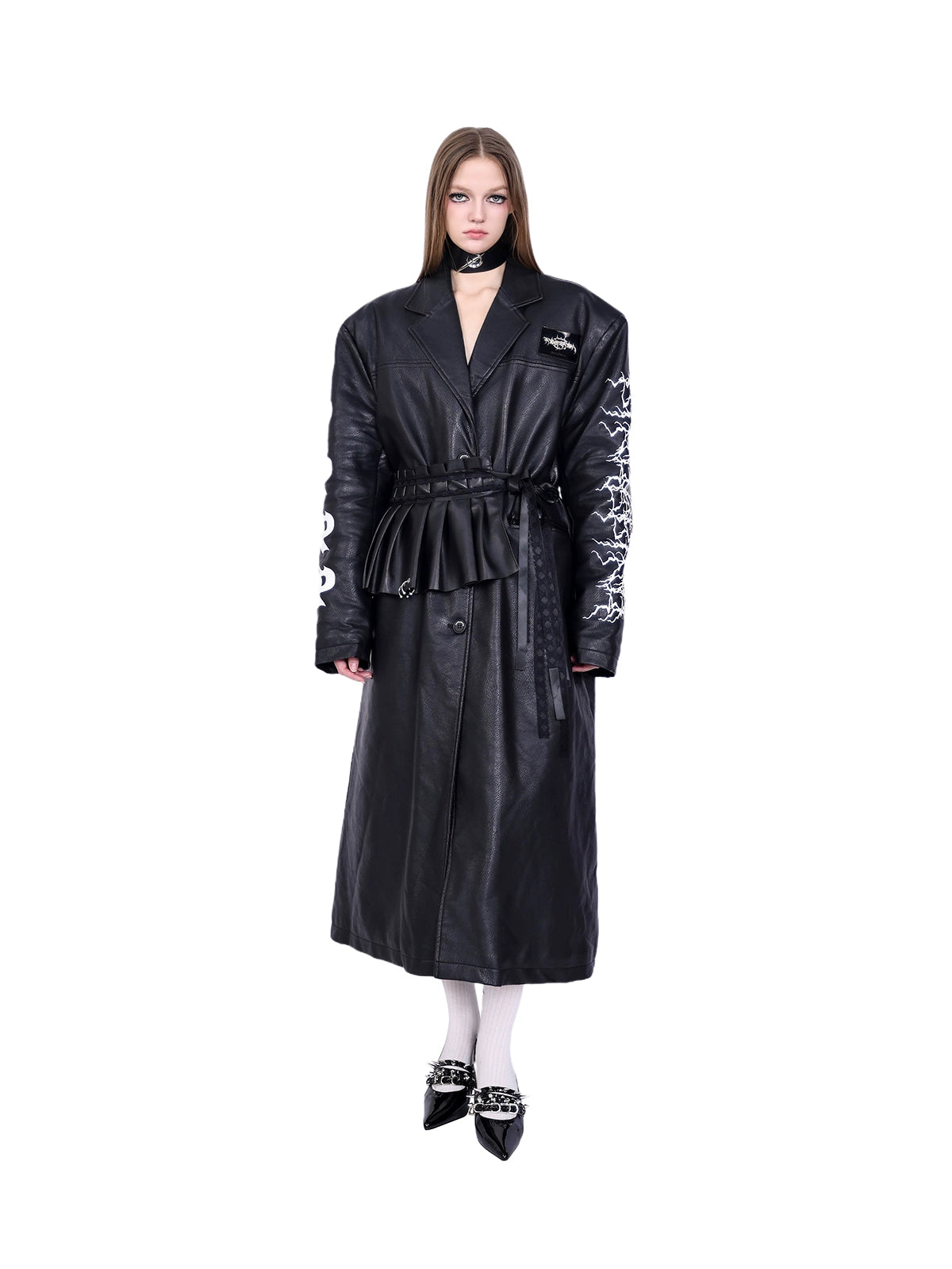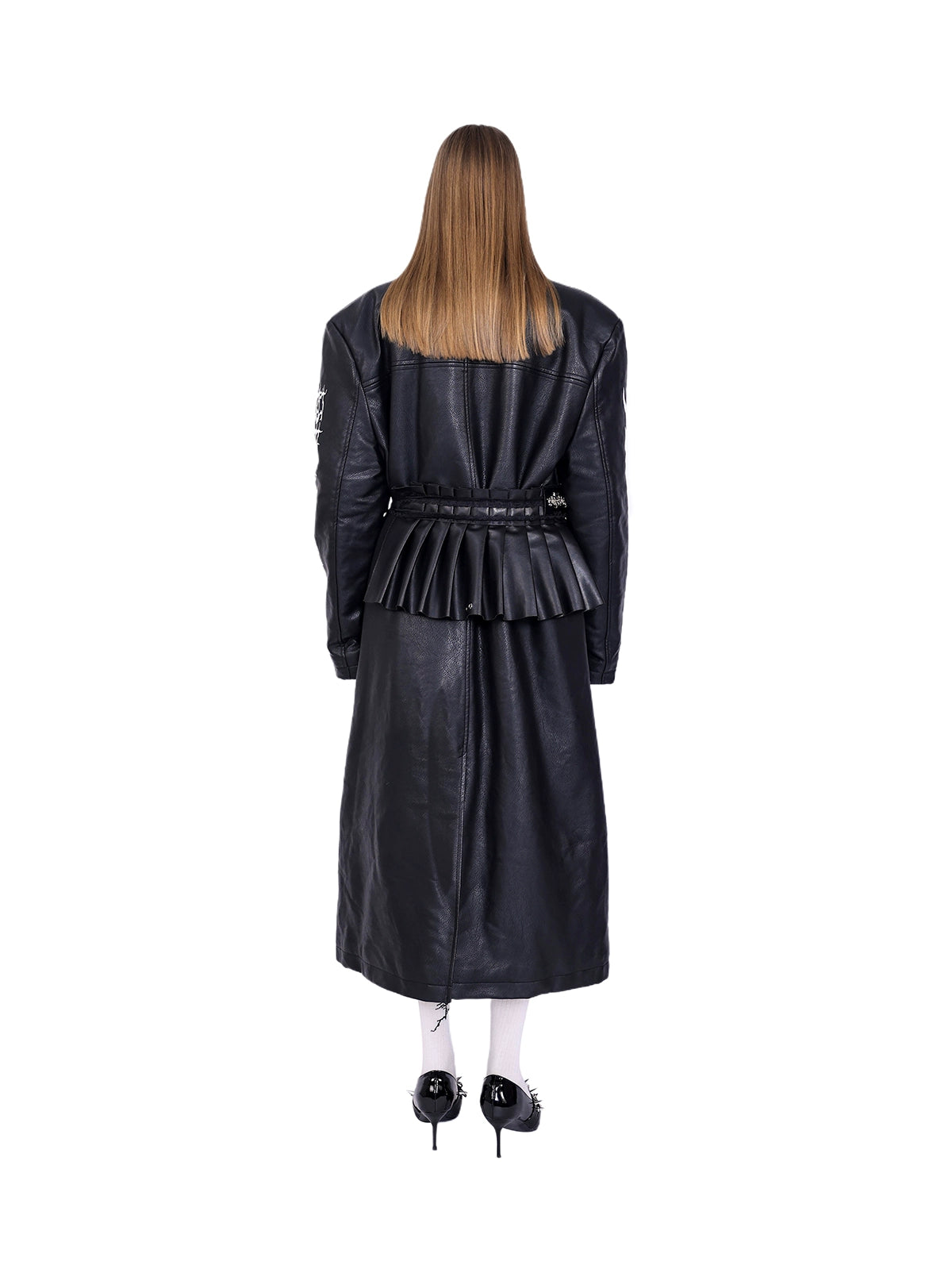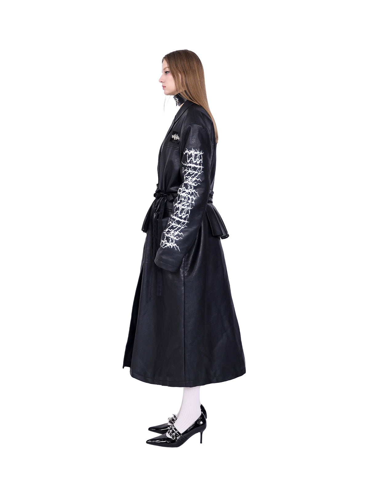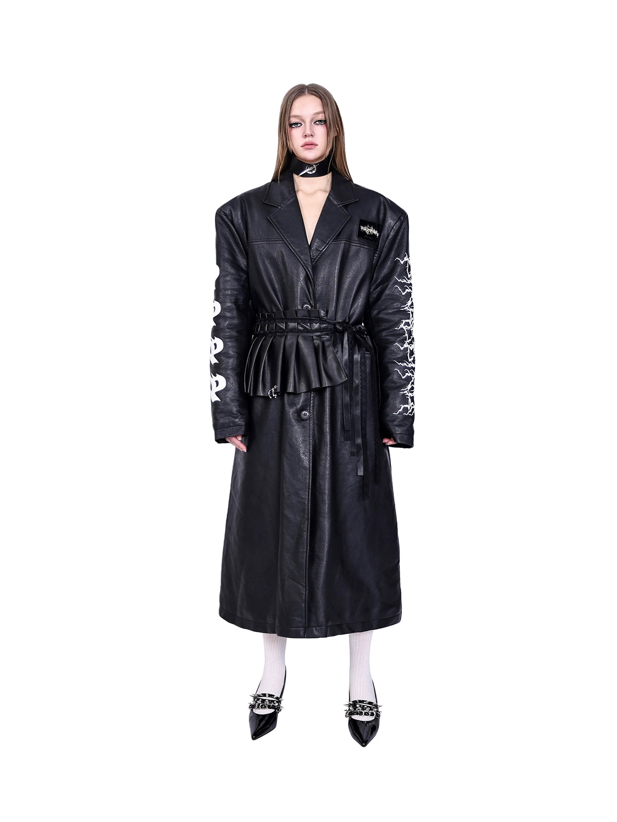 Flame Letter Silhouette Leather Jacket with Warm Lining (Unisex)