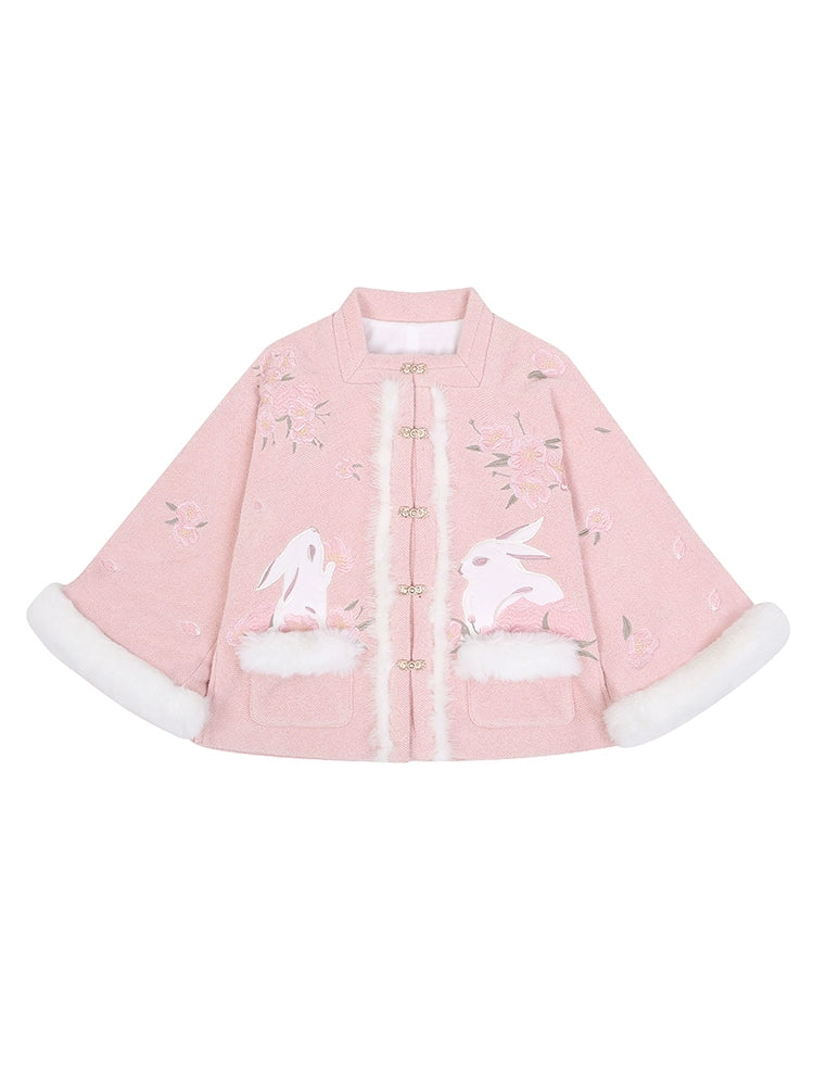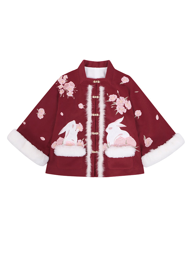 Peach Blossom Rabbit Woolen Children's Jacket + Skirt Set