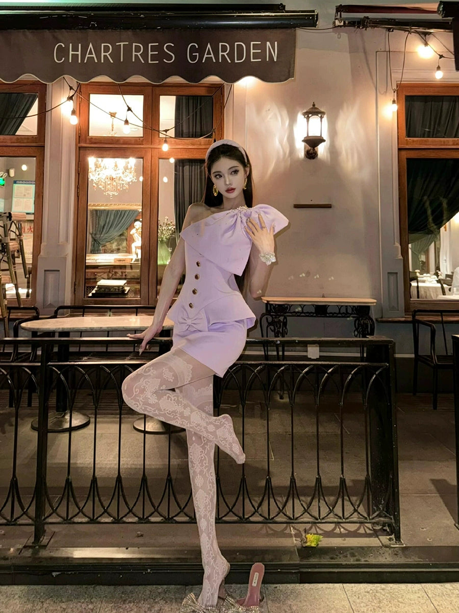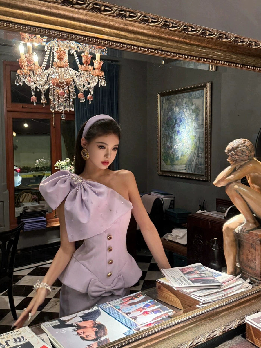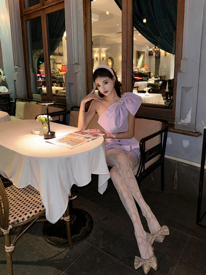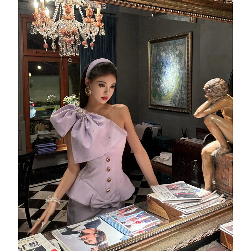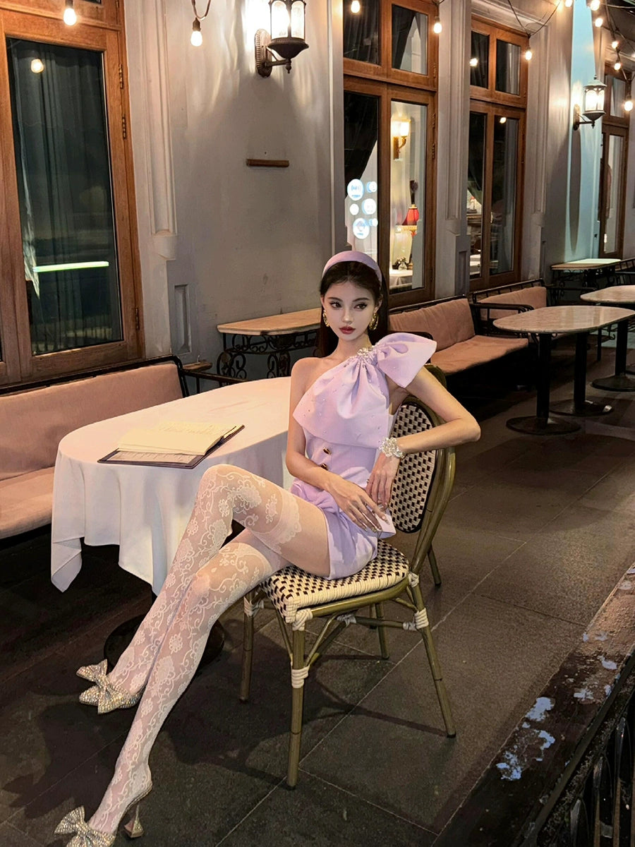 Purple Luxe Dresses – Rich Women's Niche Heavy Industry Bow-Accent Birthday Gowns
