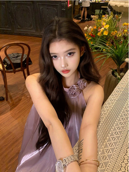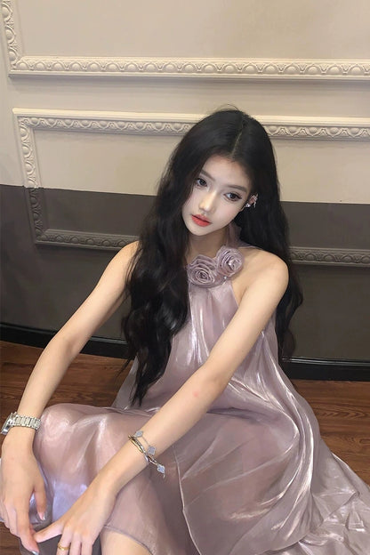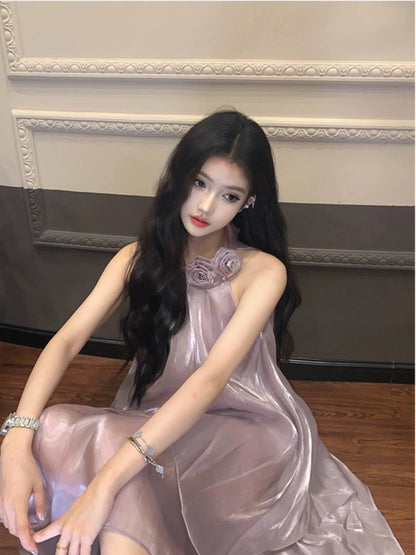 Purple Halterneck Mesh Dress – Celebrity-Inspired Irregular Tulle Skirt