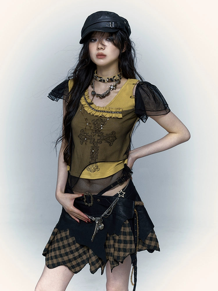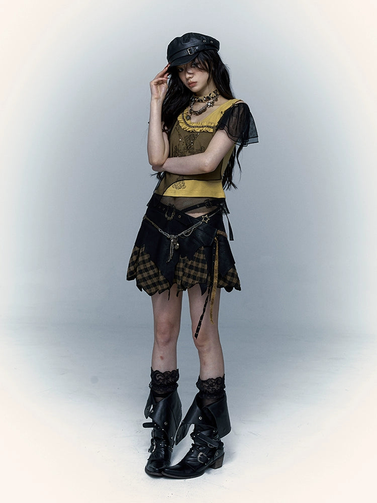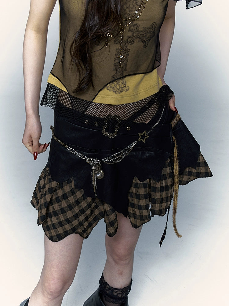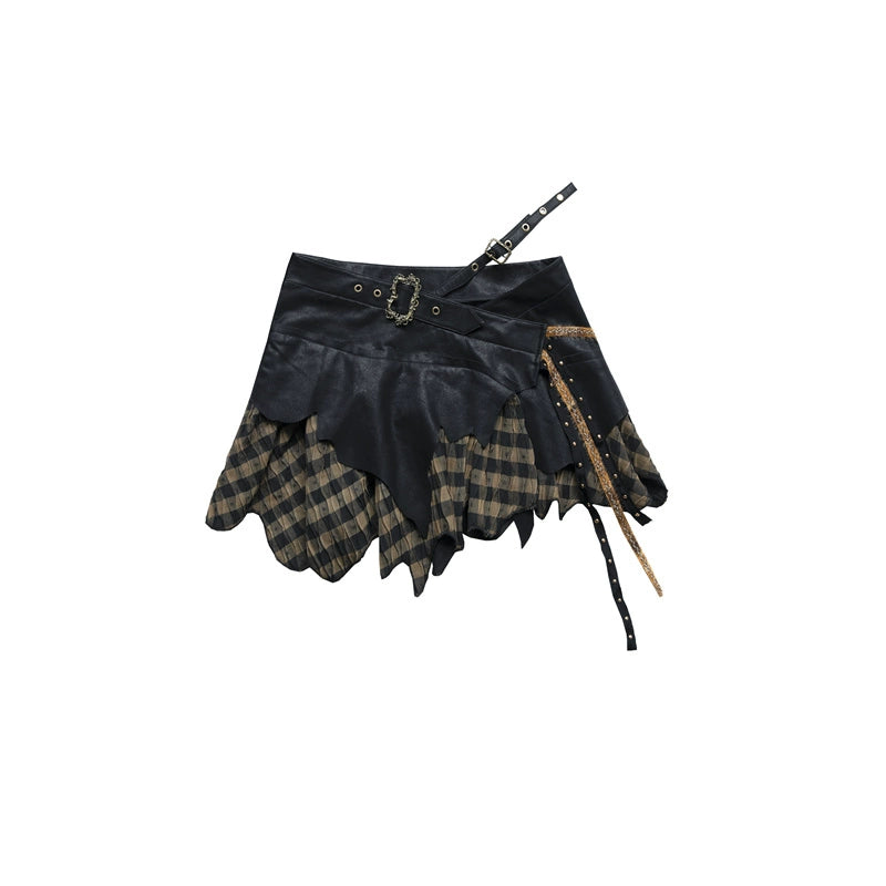 Black Rock Irregular Splicing Skirt | Retro Punk Short Skirt