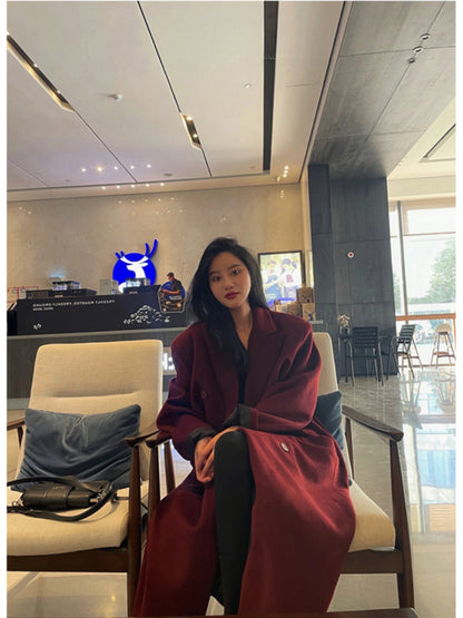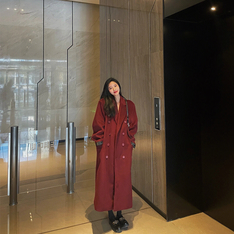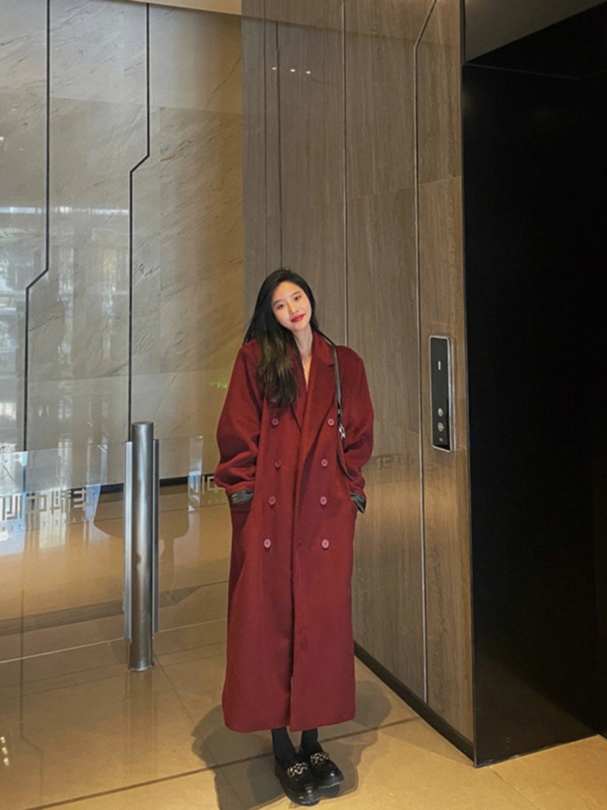 Reversible Cashmere Coat – Red Mid-Length Woolen New Year’s Jacket