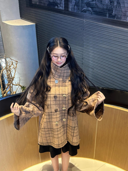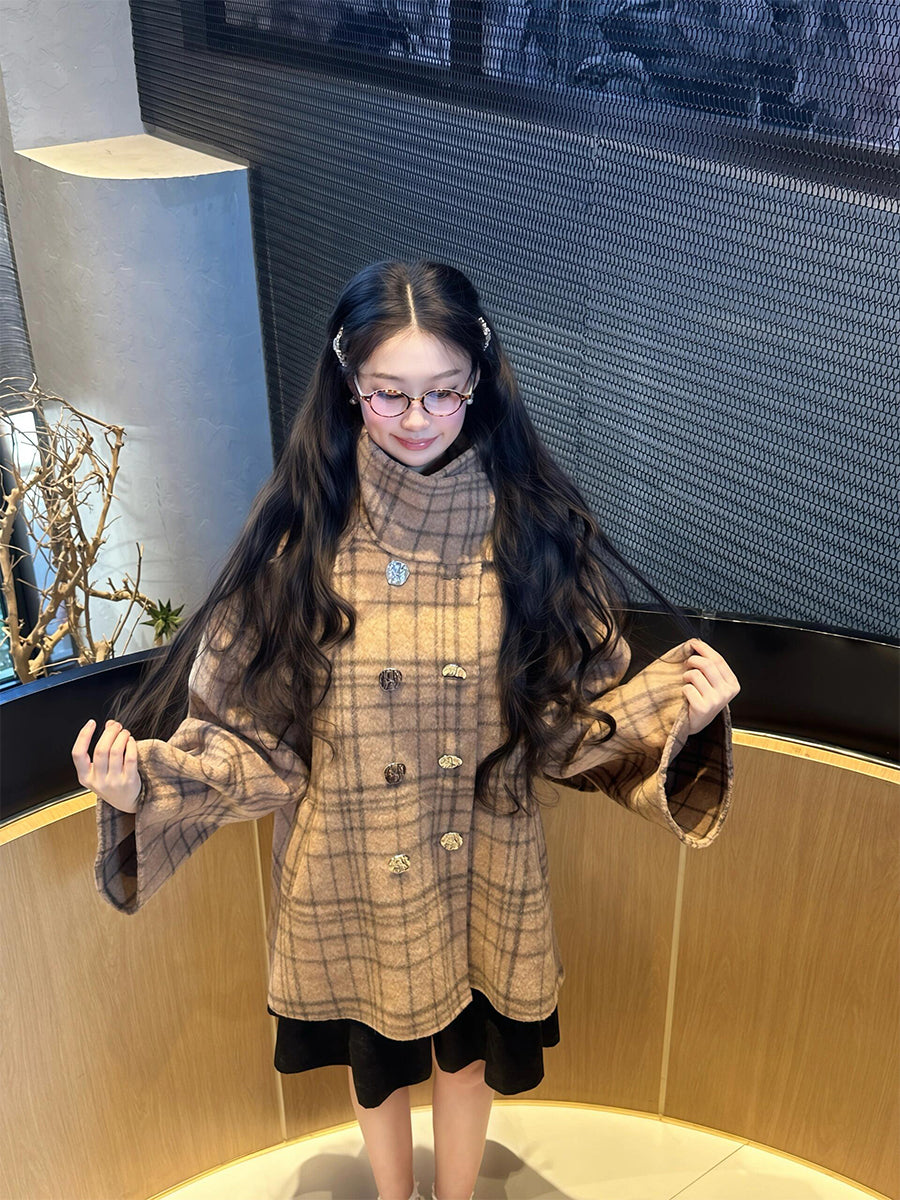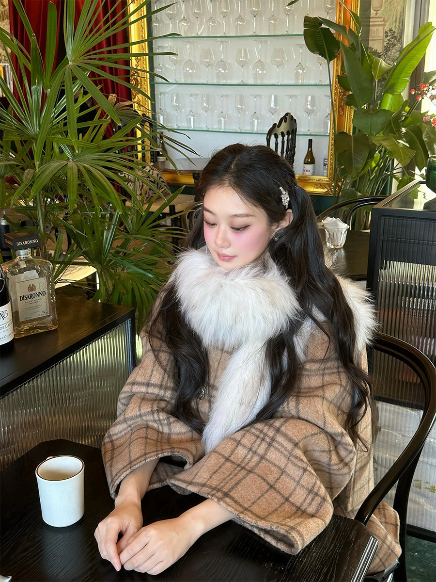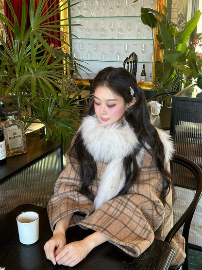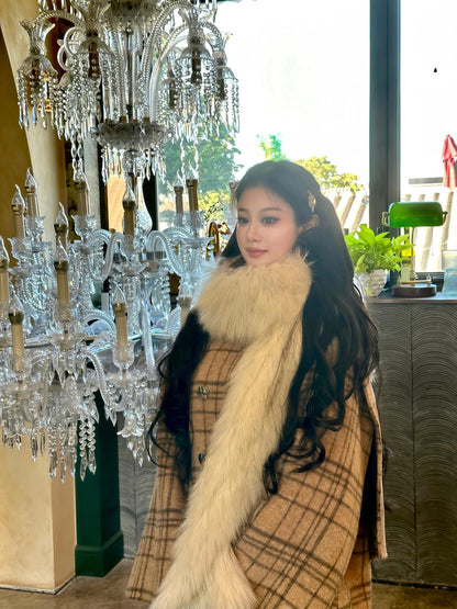 Reversible Cashmere Coat – Gold-Tone Fox Fur Cape with Checkered Wool