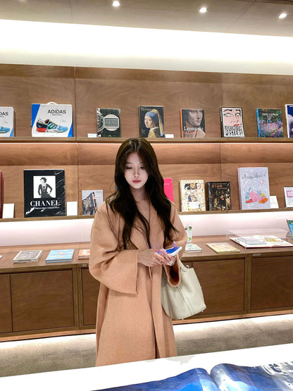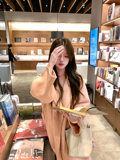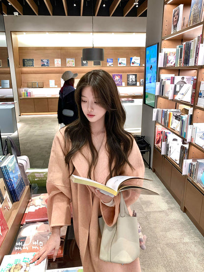 Reversible Pink Cashmere Coat – Celebrity Lapel Wool Jacket
