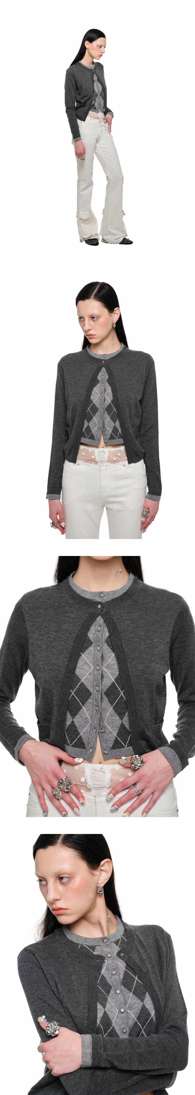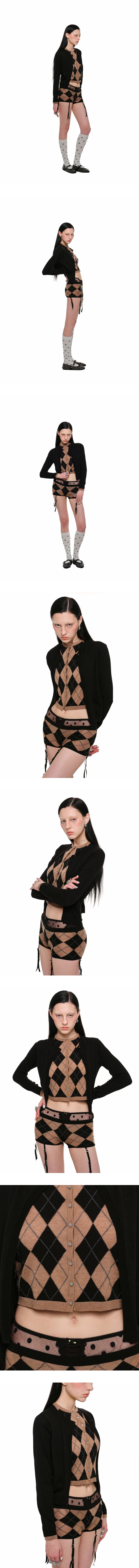 Quilted Knit Cardigan & Shorts Set – Casual Rhombic Design