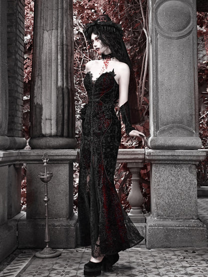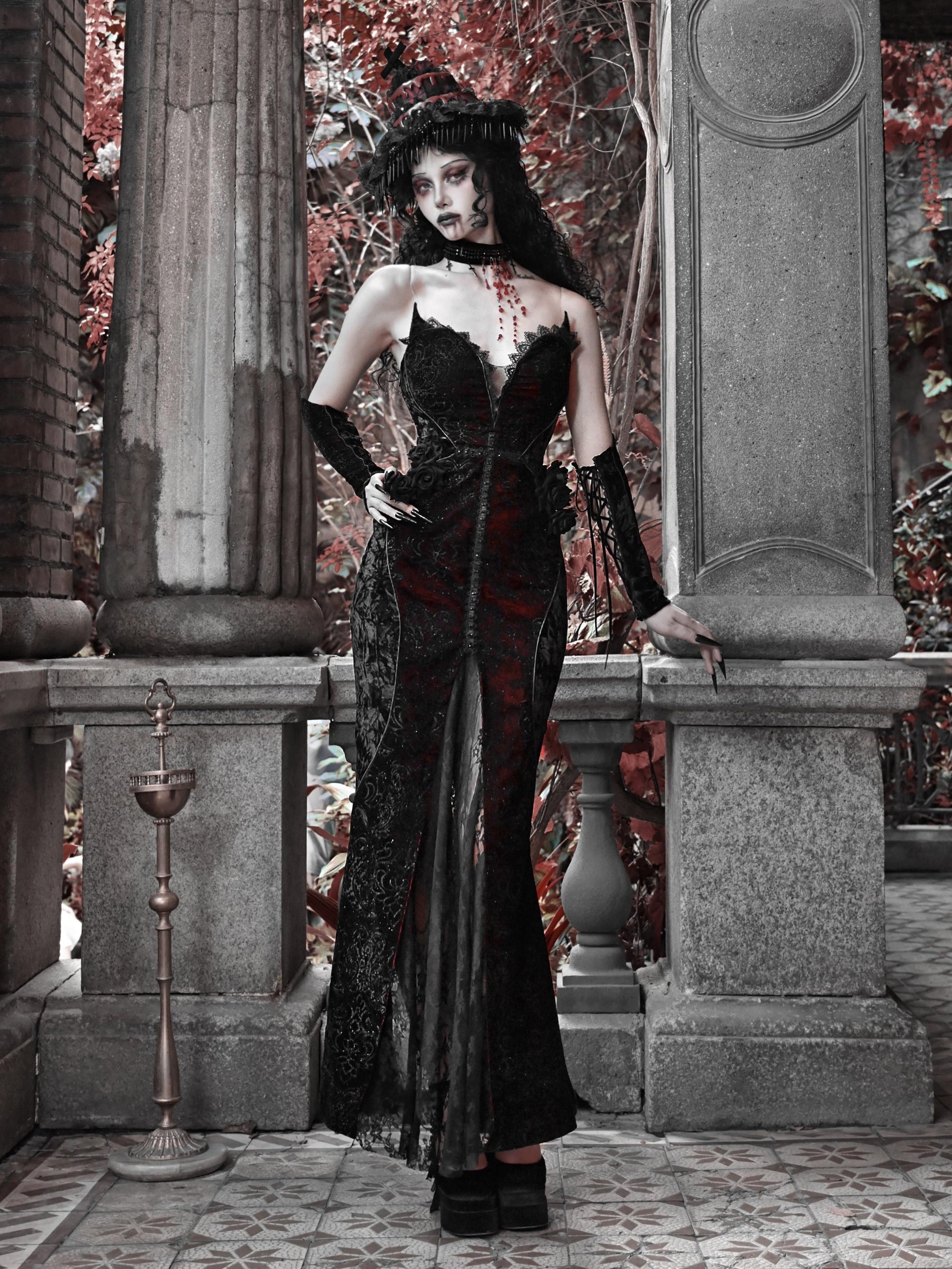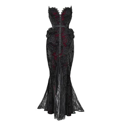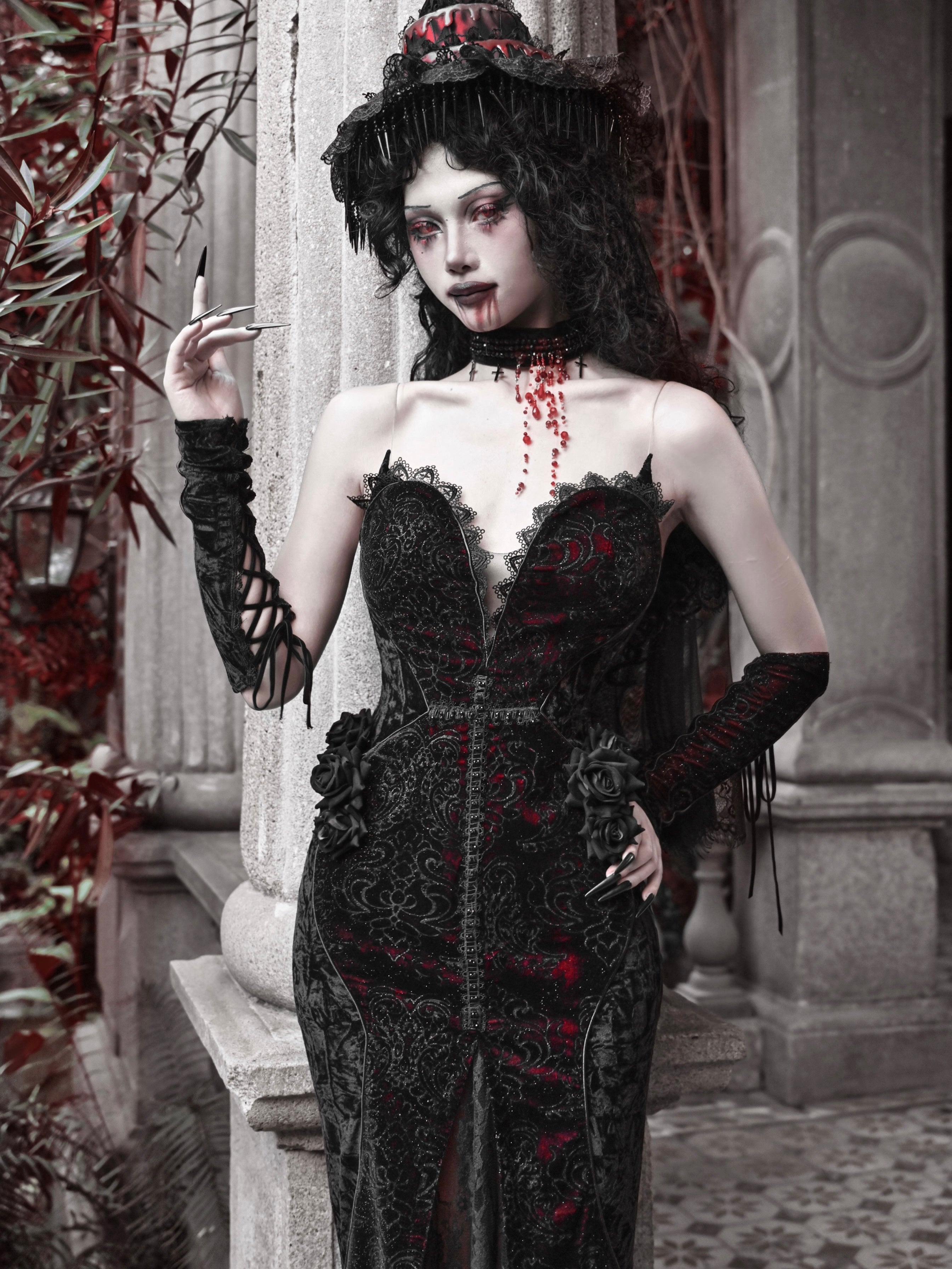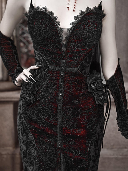 Scarlet Gothic Mermaid Dress – Glitter Velvet Dark Romance