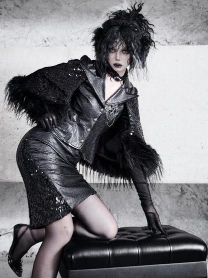 Gothic Fur Suit Cloak – Chic Cape Jacket for Winter