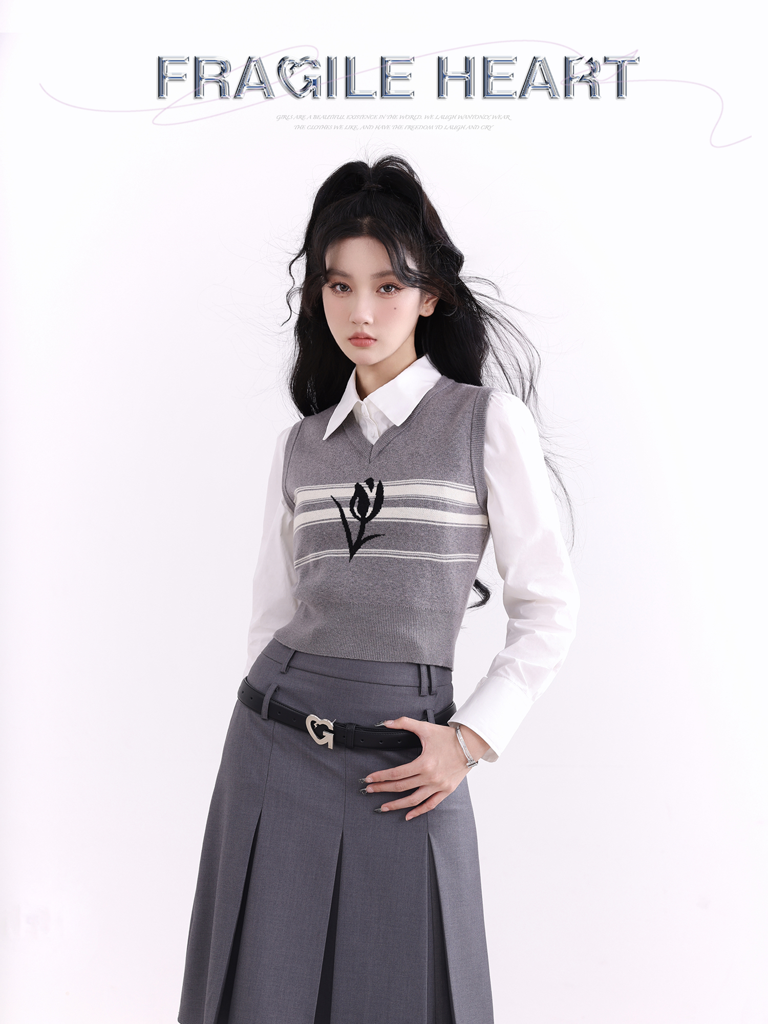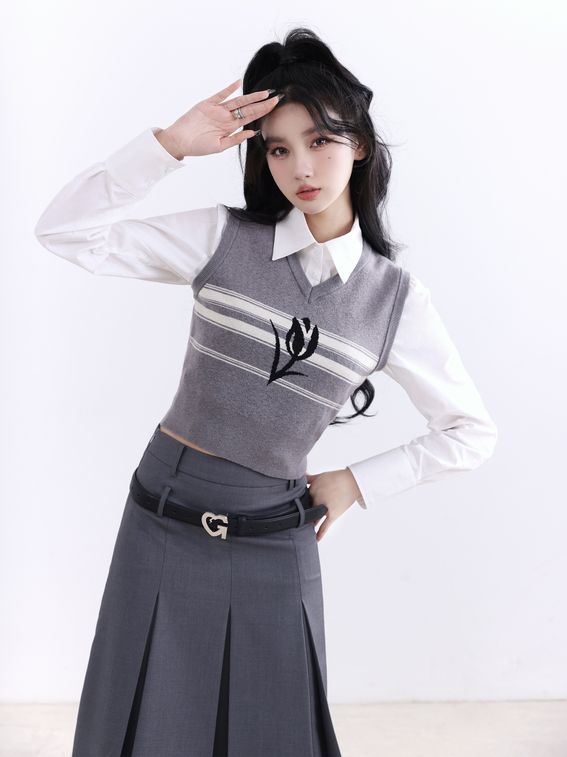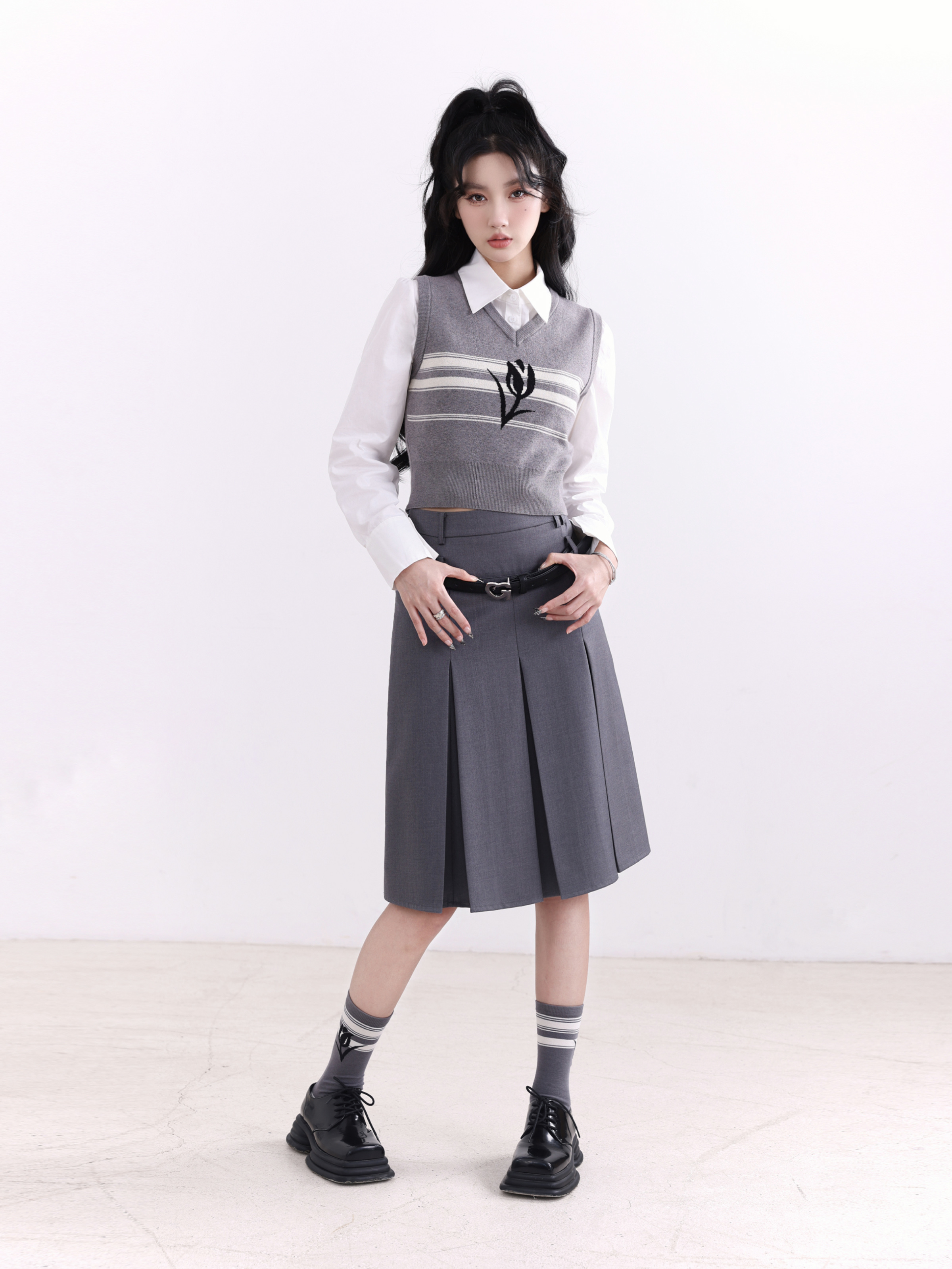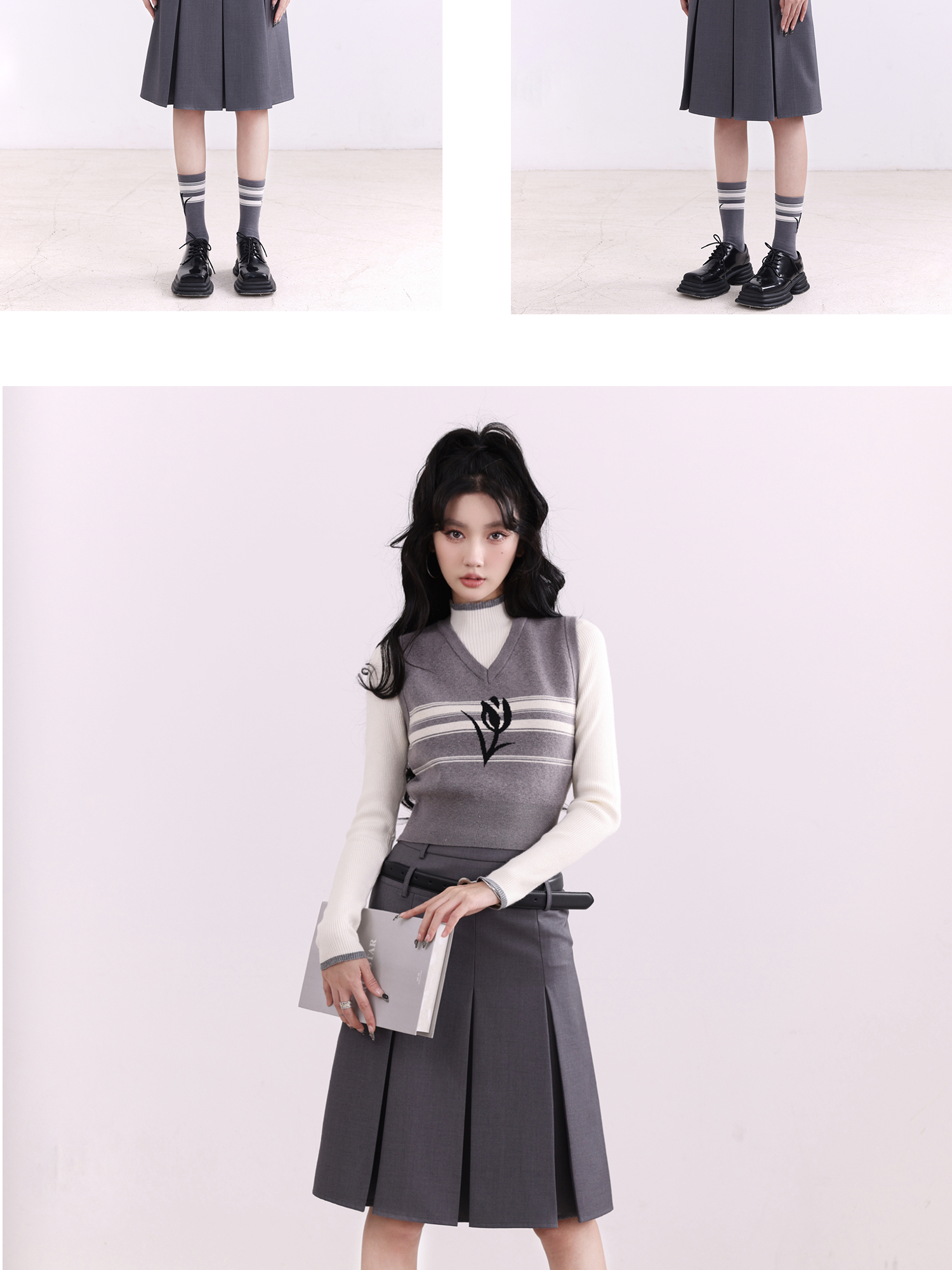 Grey Knitted Vest & Skirt Set - American Retro Academy