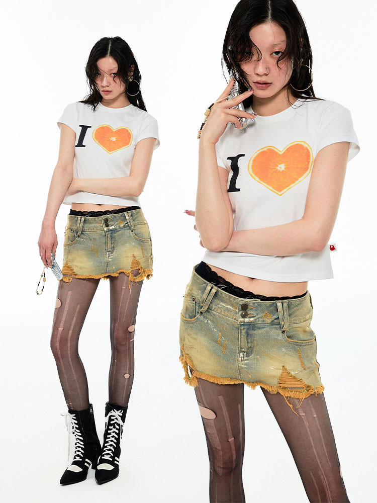 Low-Rise Distressed Denim Mini Skirt – Hot Girl Slim Hip Hugger