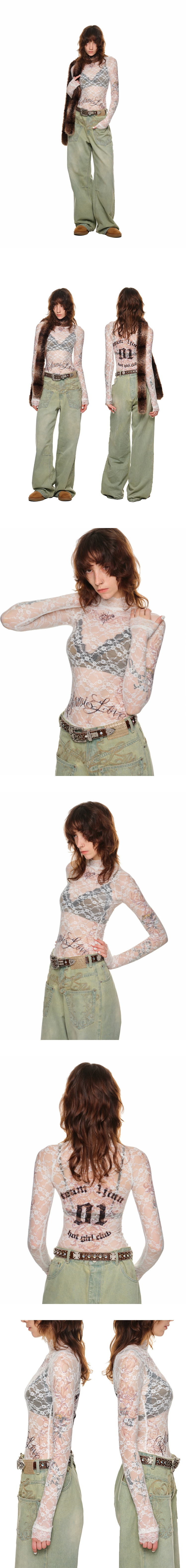 Small Stand-Neck Printed Lace Long Sleeve T-Shirt – Slim Fit Sheer Base Layer