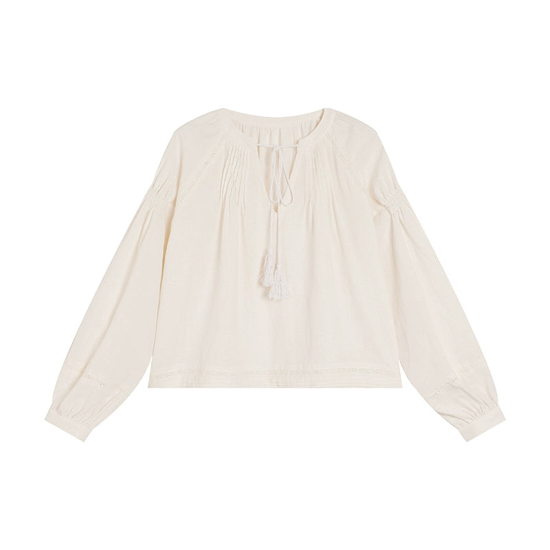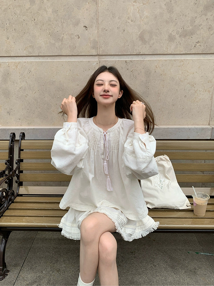 South French Holiday Cotton & Hemp Shirt & Skirt Set - A-Line Design