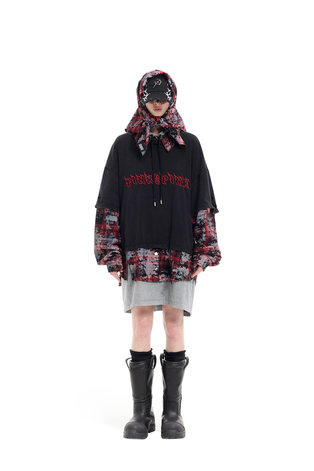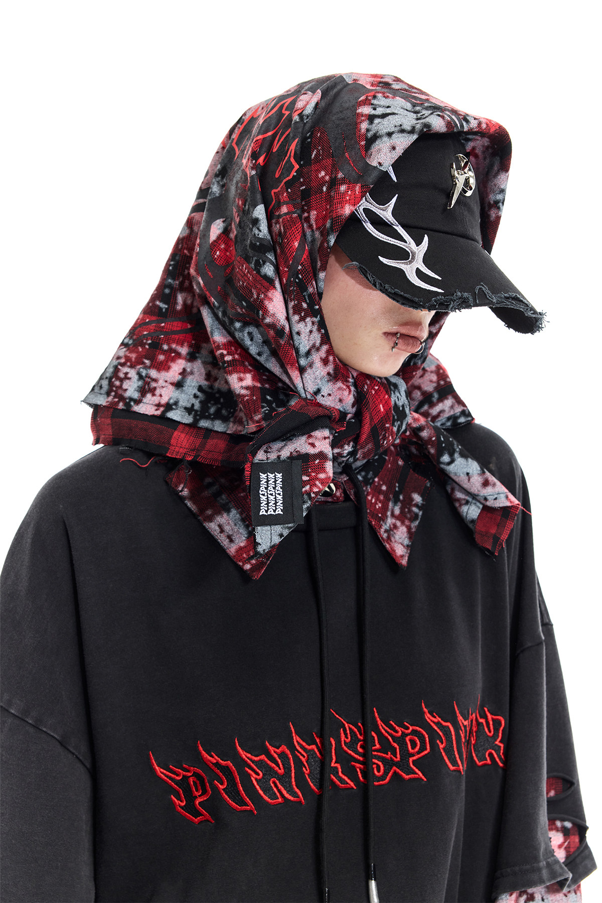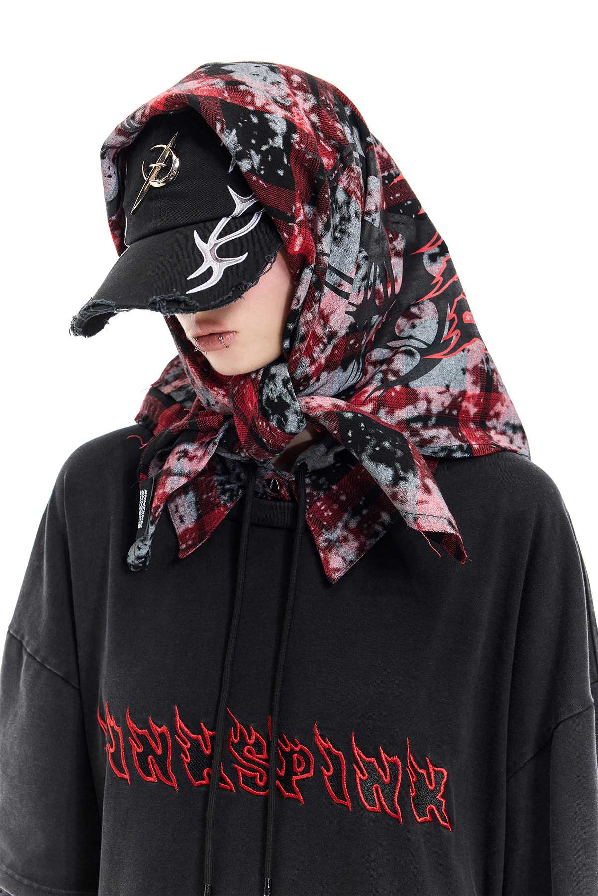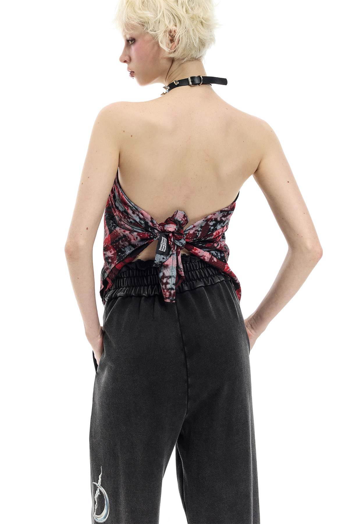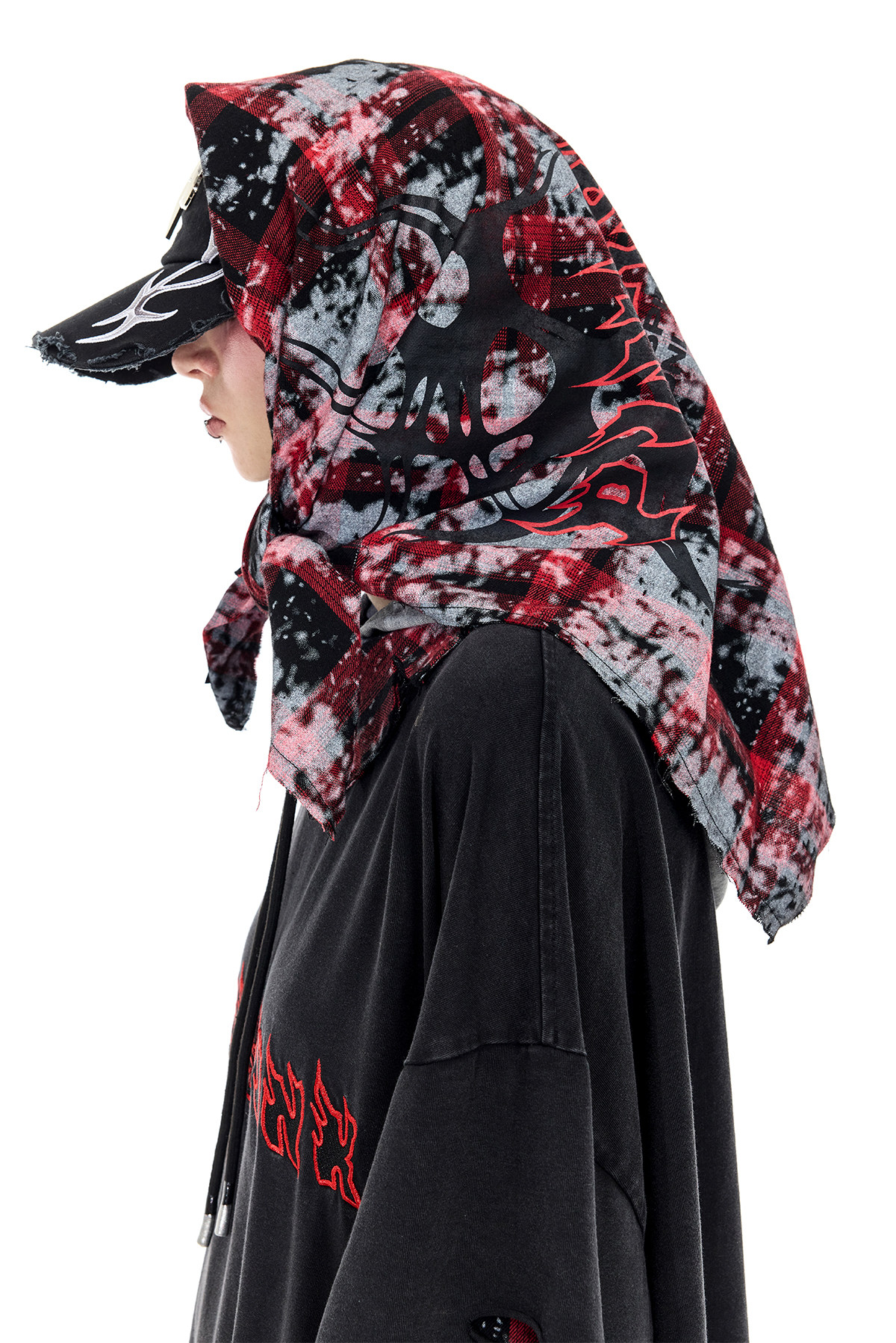 Spray-Painted Red Plaid Strapless Scarf – Unisex Y3K Statement Accessory