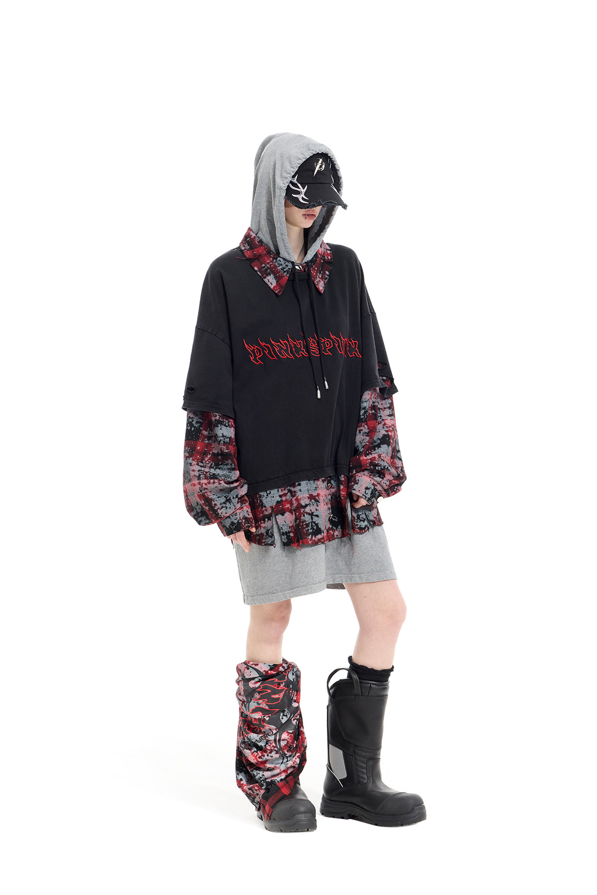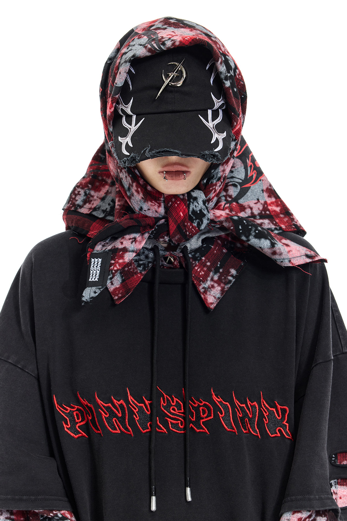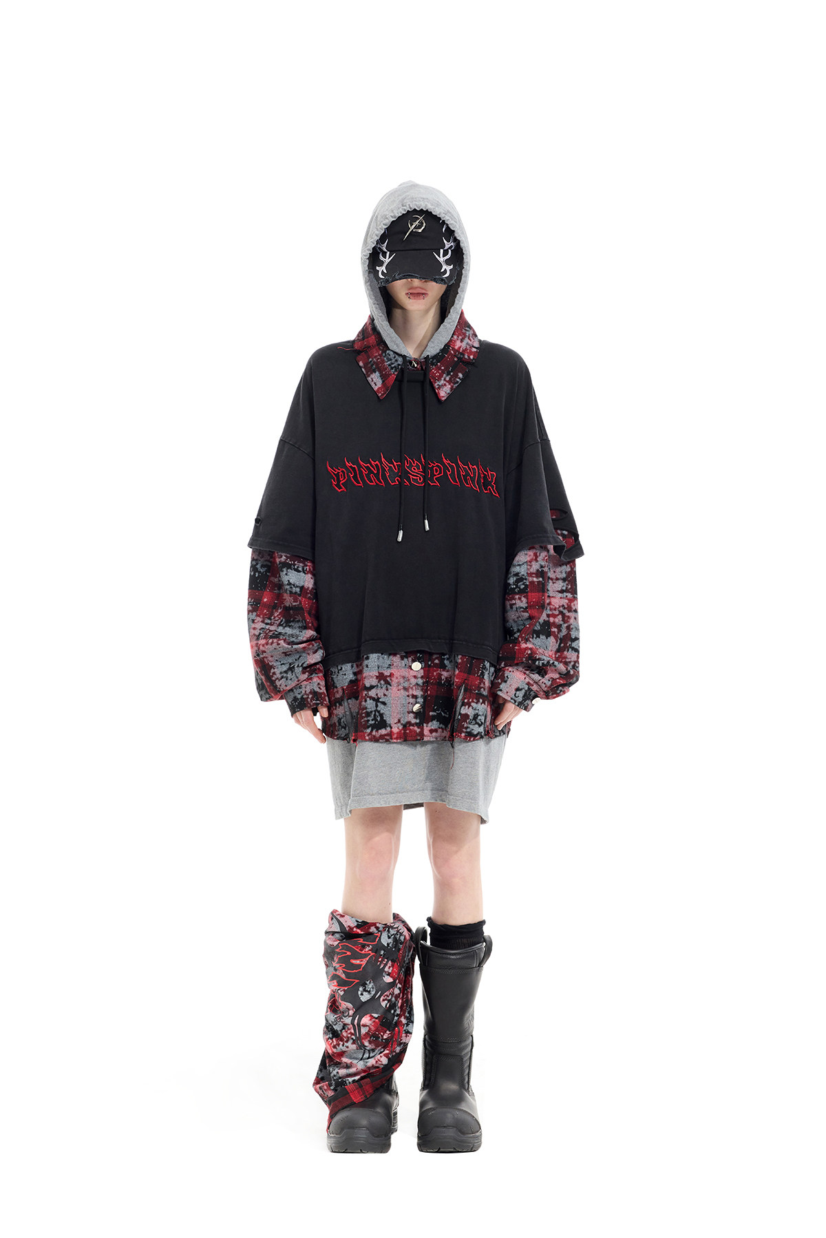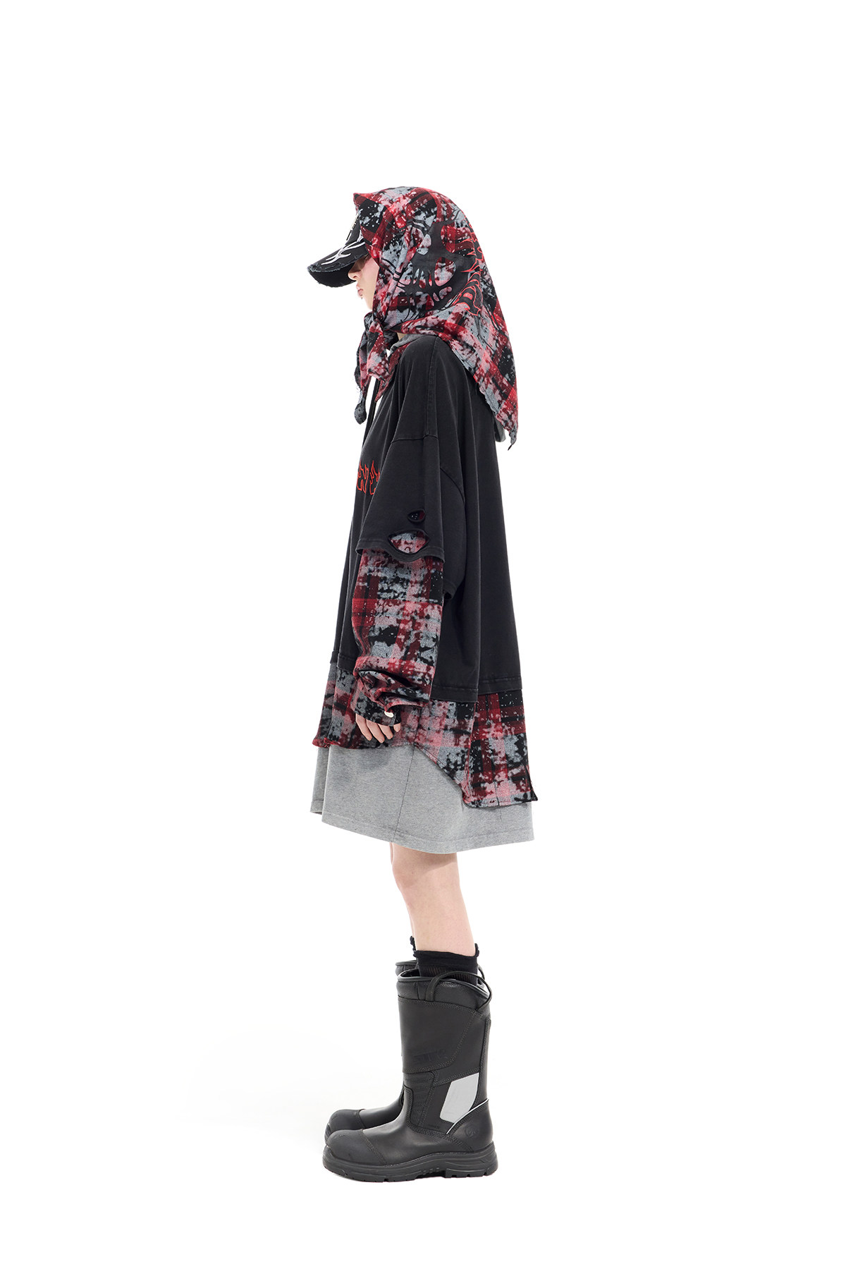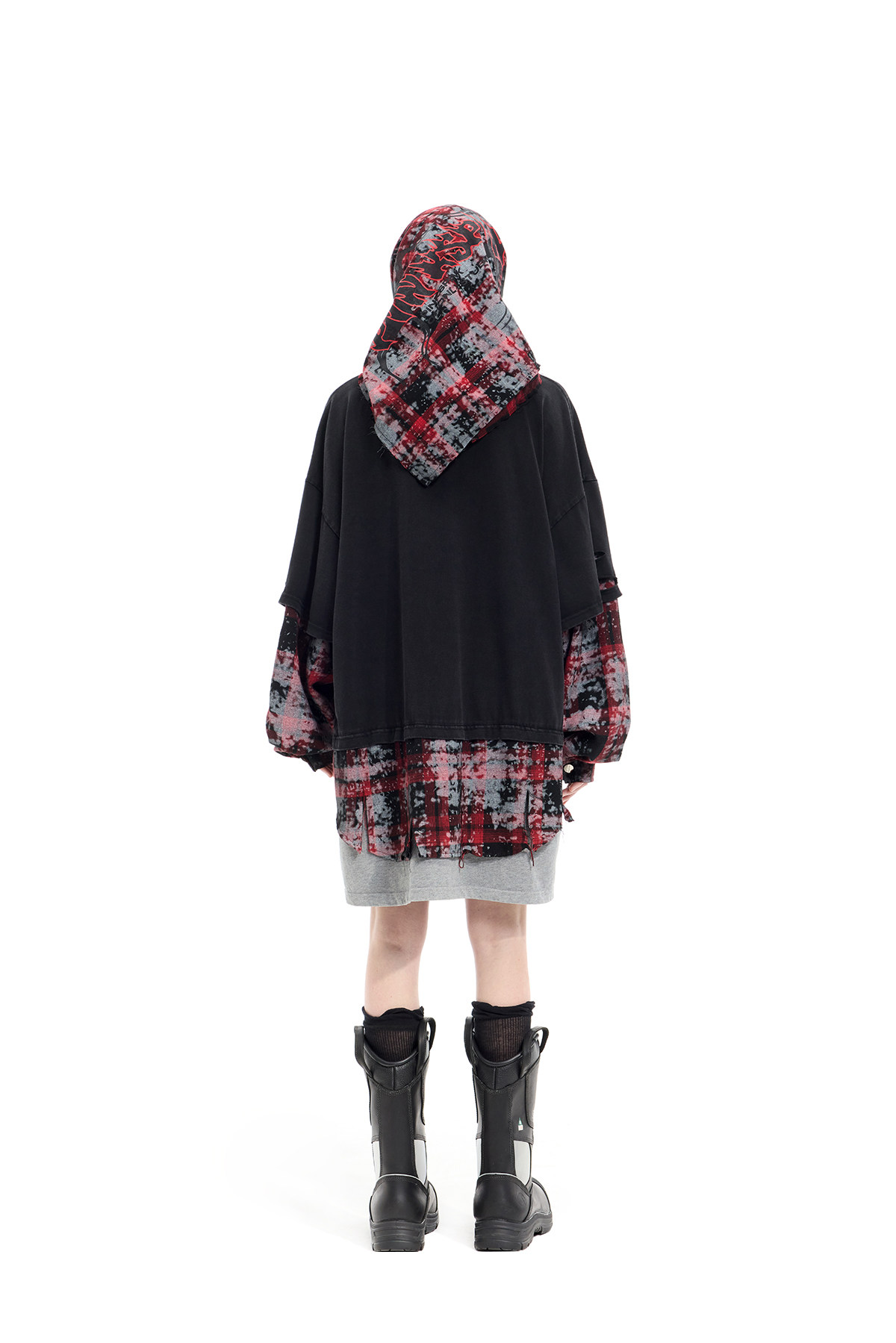 Spray-Painted Red Plaid Strapless Scarf – Unisex Y3K Statement Accessory